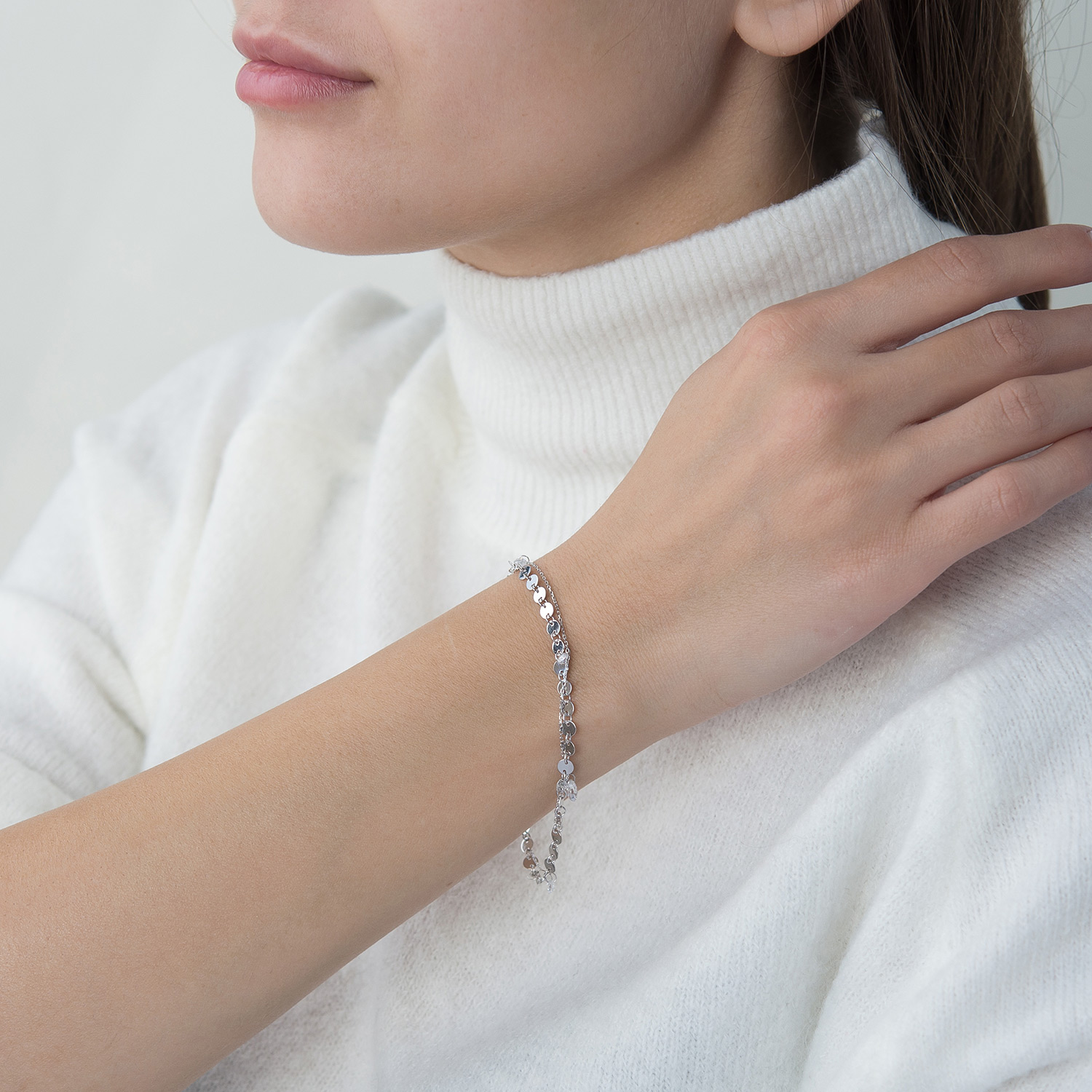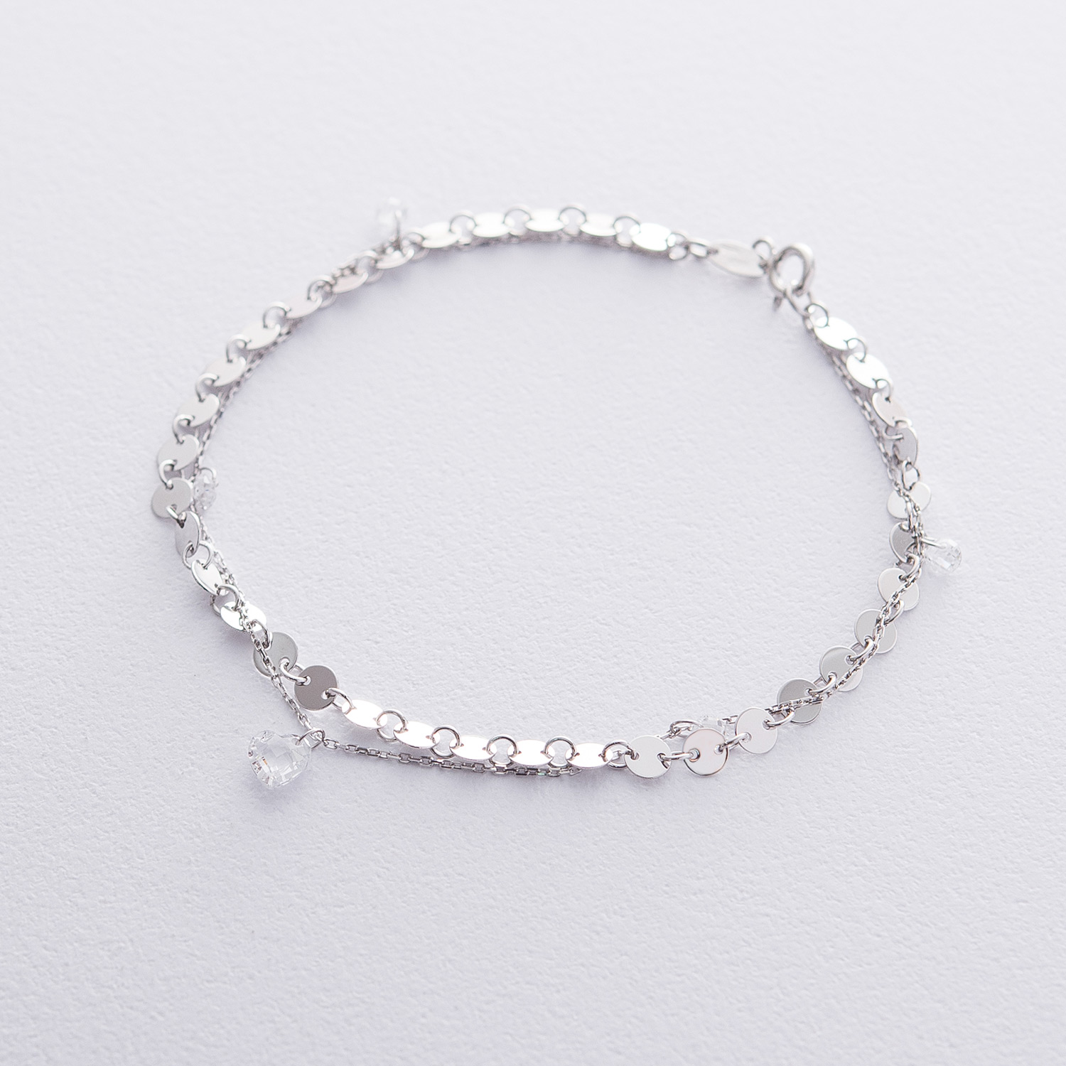 Двойной браслет Монетки с фианитами в белом золоте б04290
