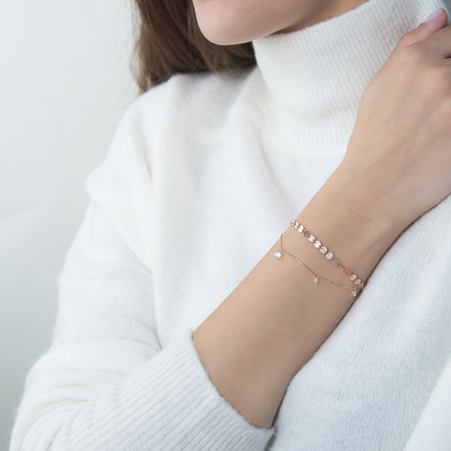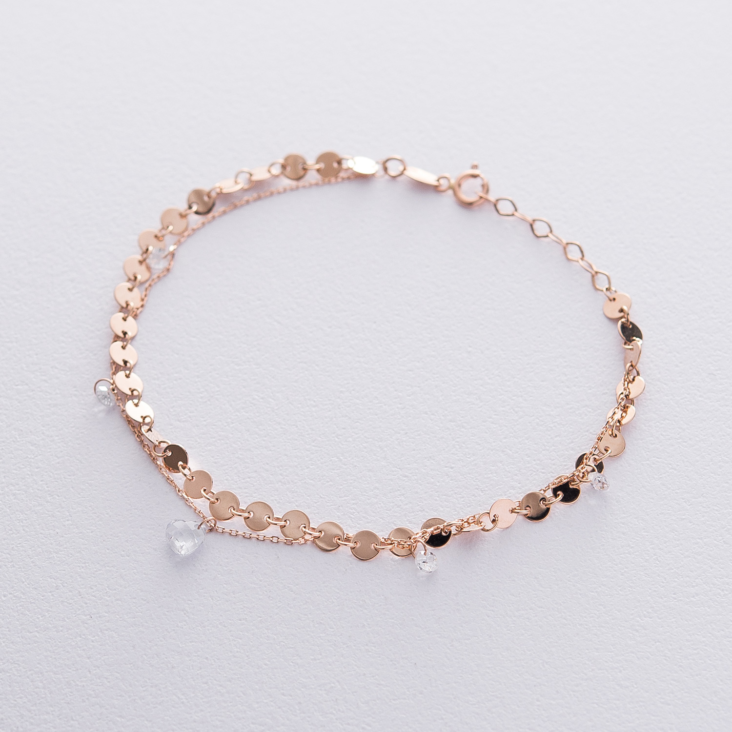 Двойной браслет Монетки с фианитами в красном золоте б04288
