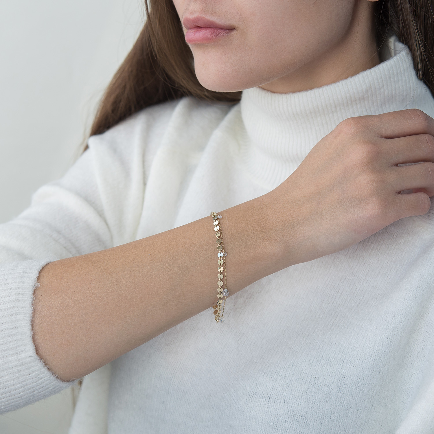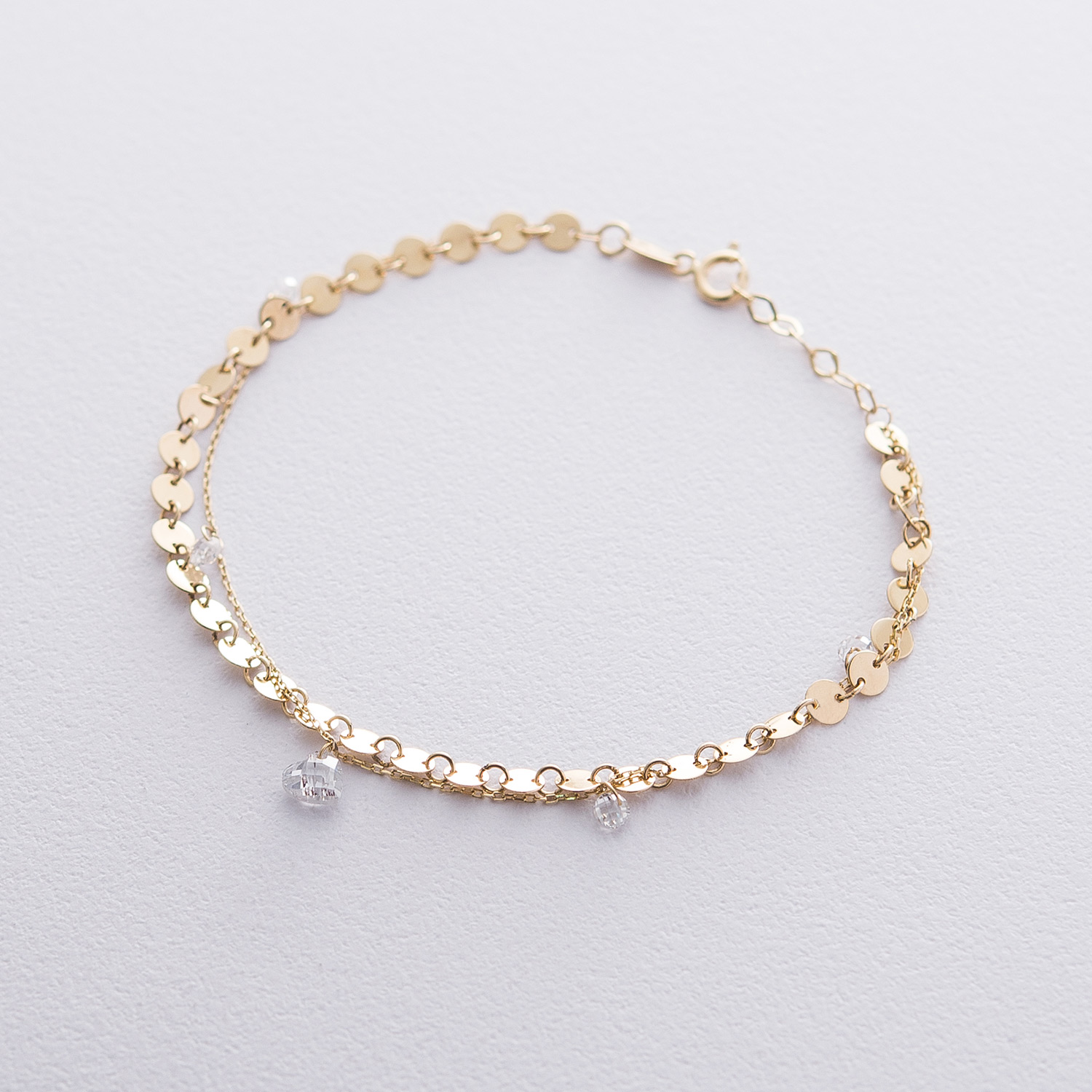 Двойной браслет Монетки с фианитами в желтом золоте б04292