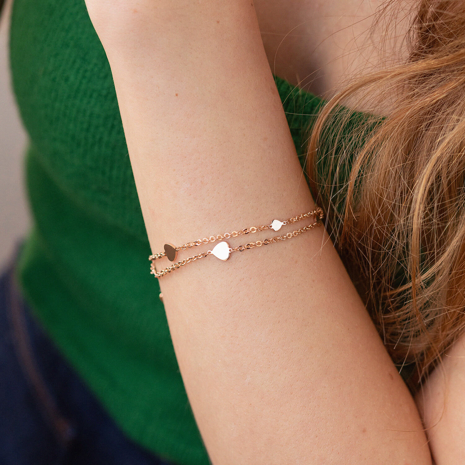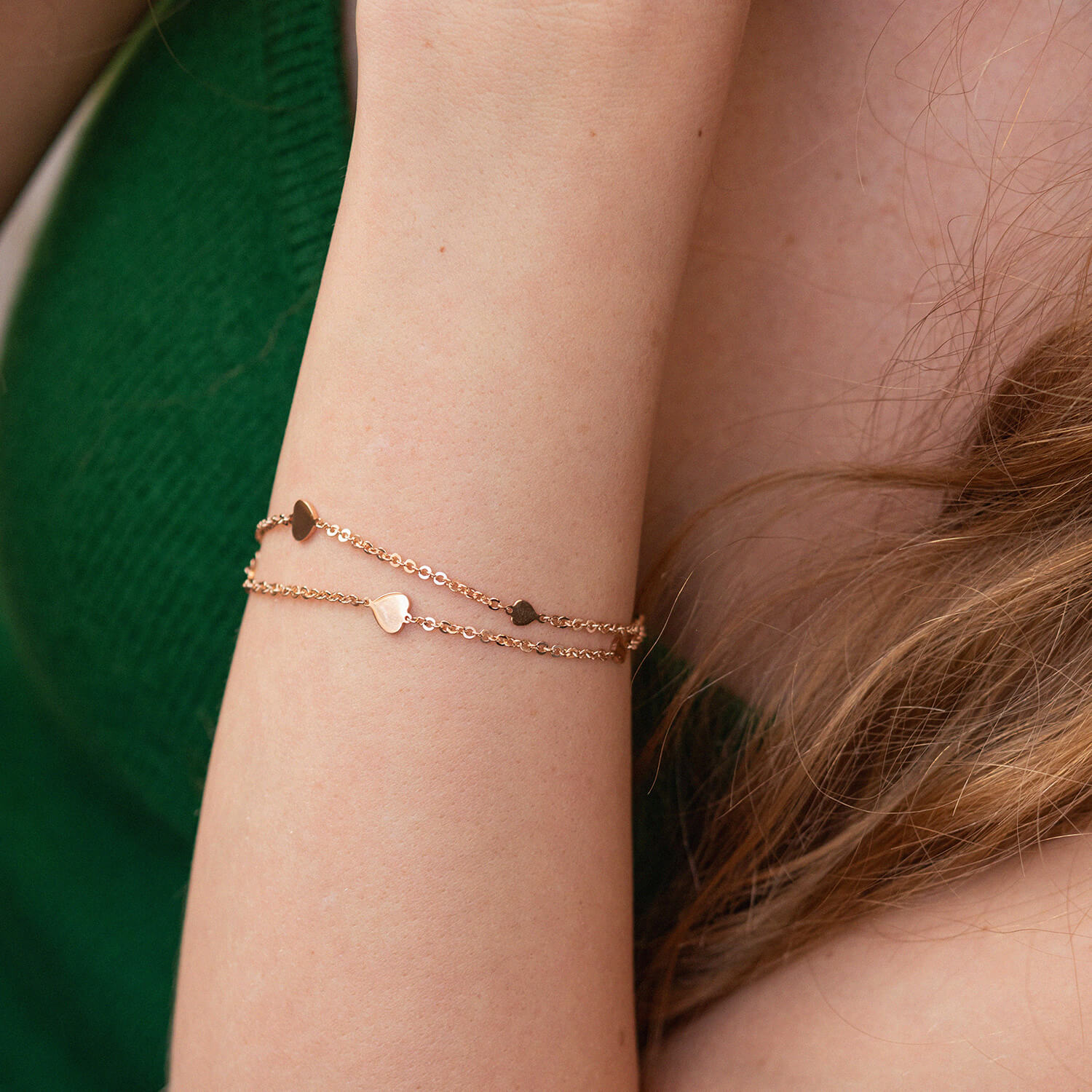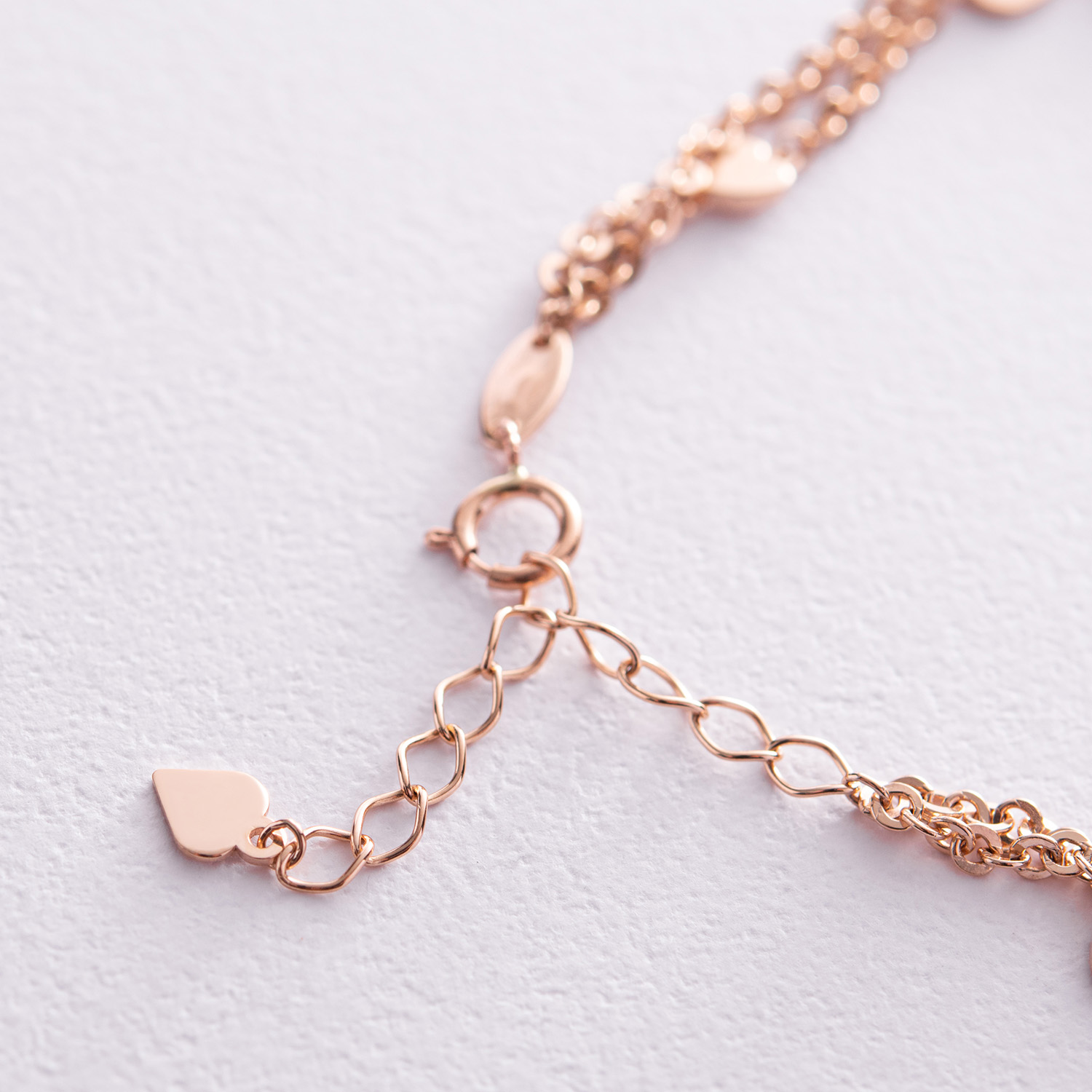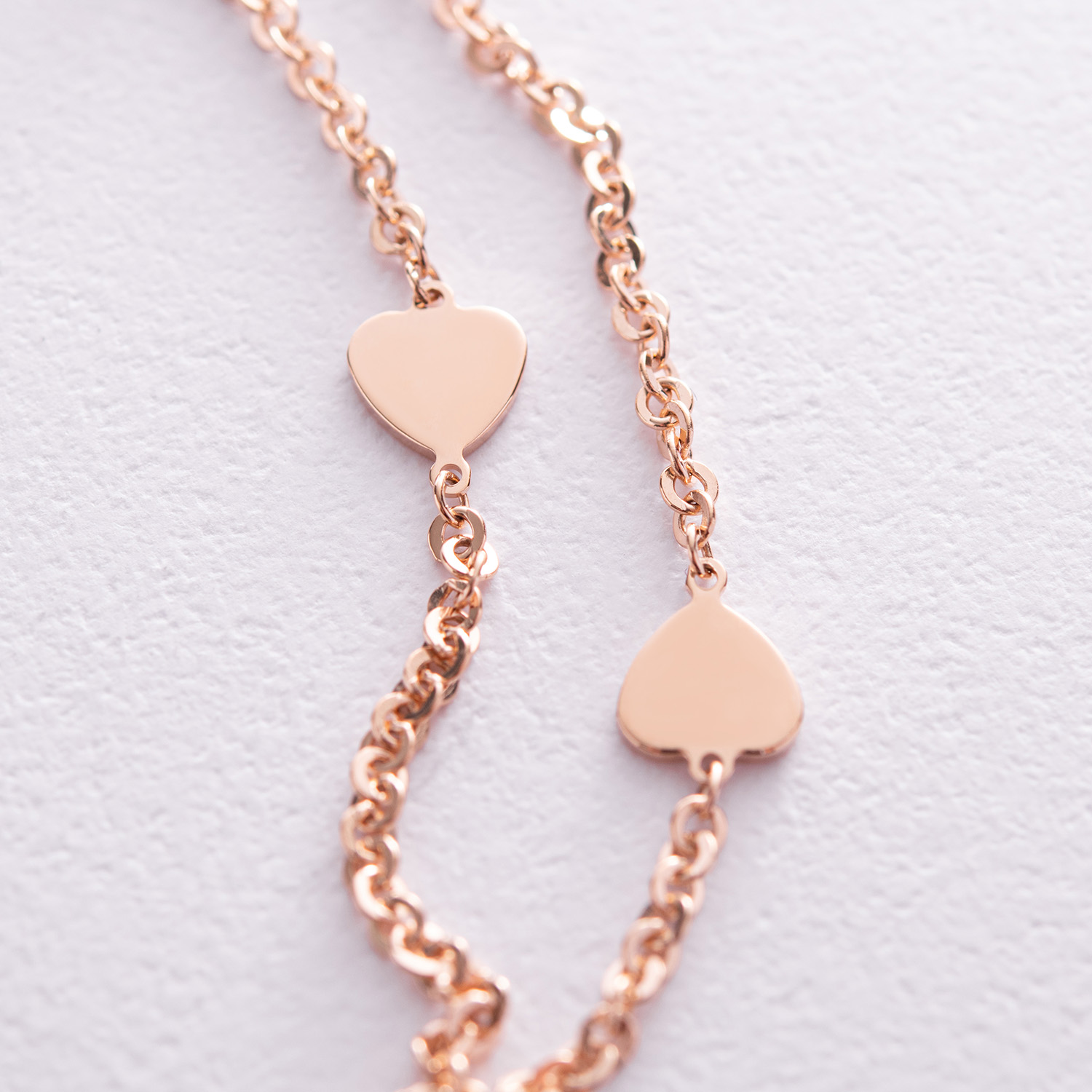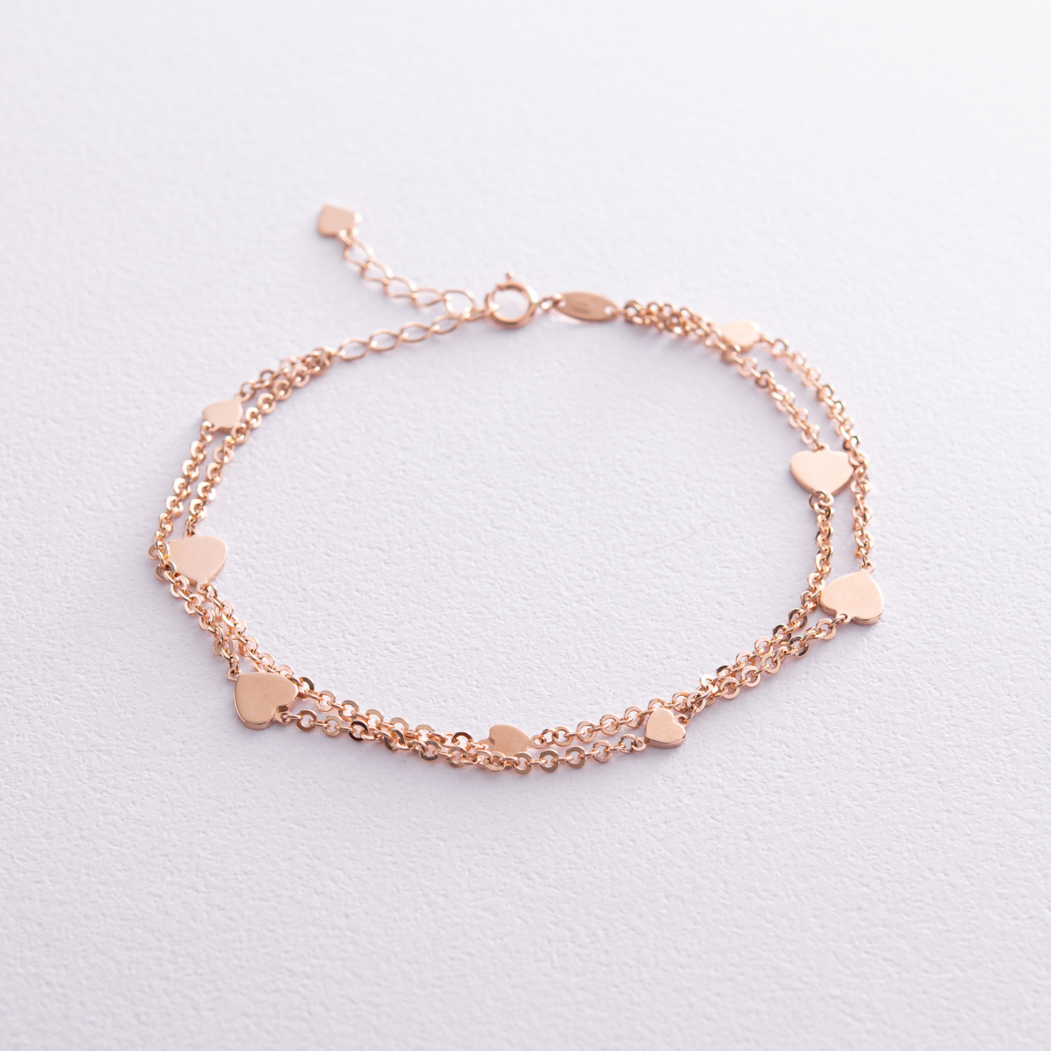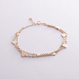 Двойной браслет "Сердечки" в красном золоте б05197