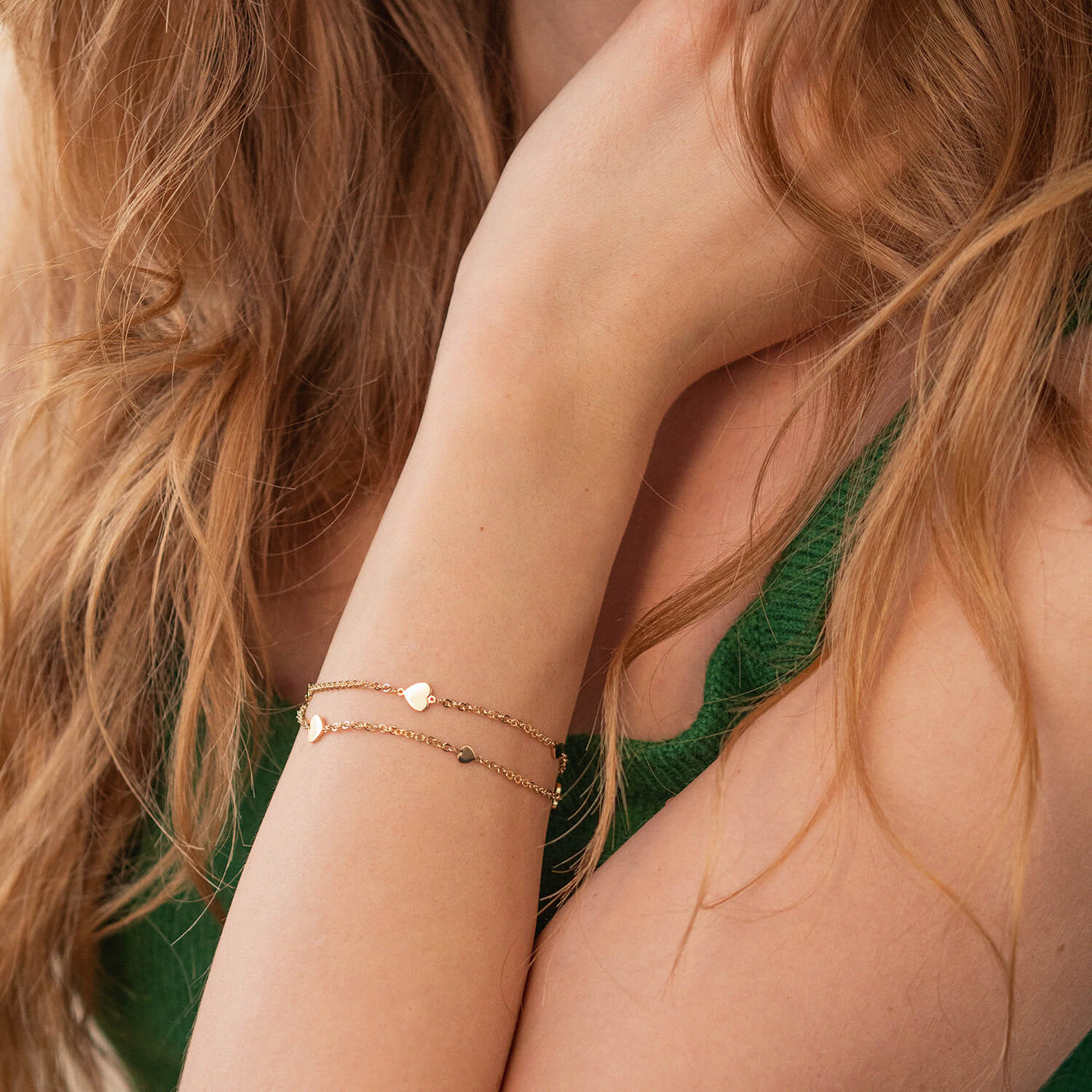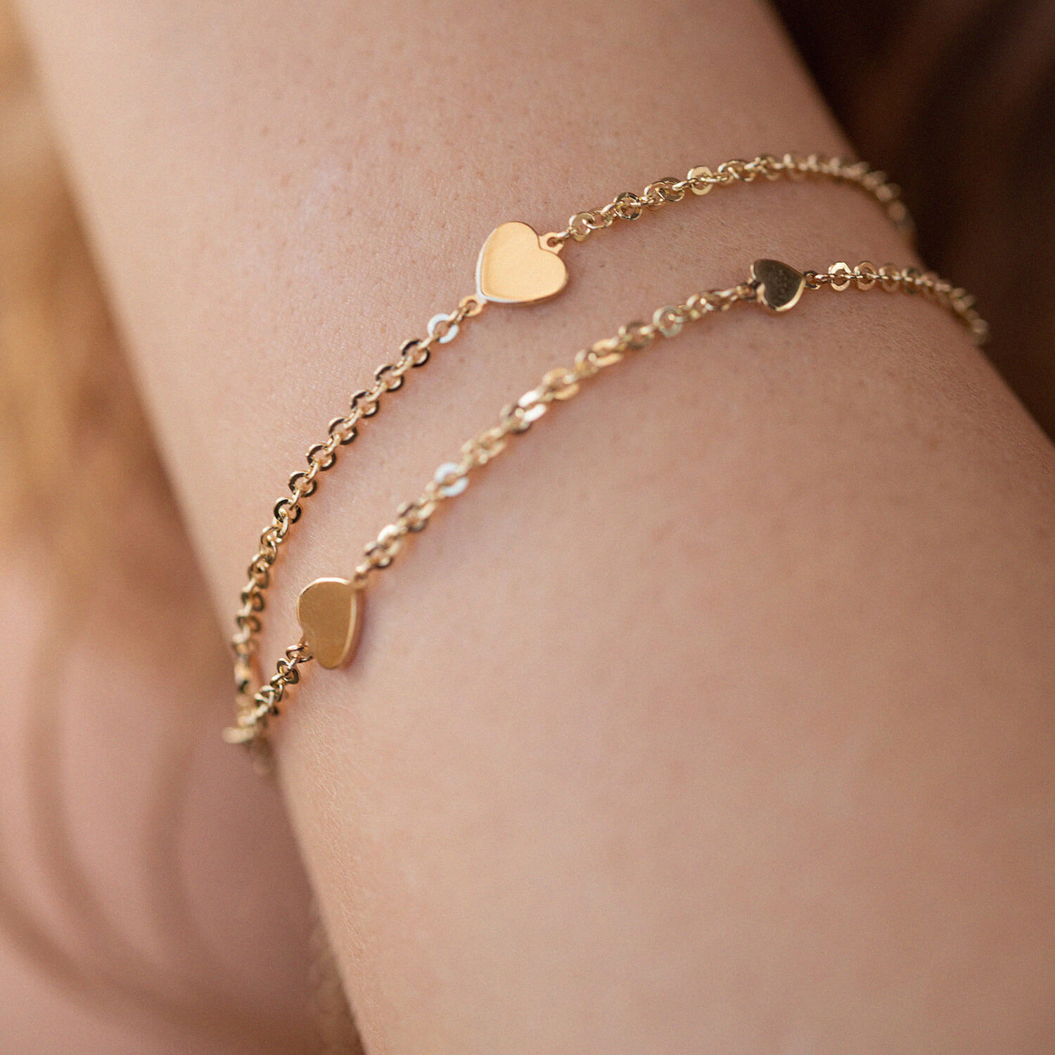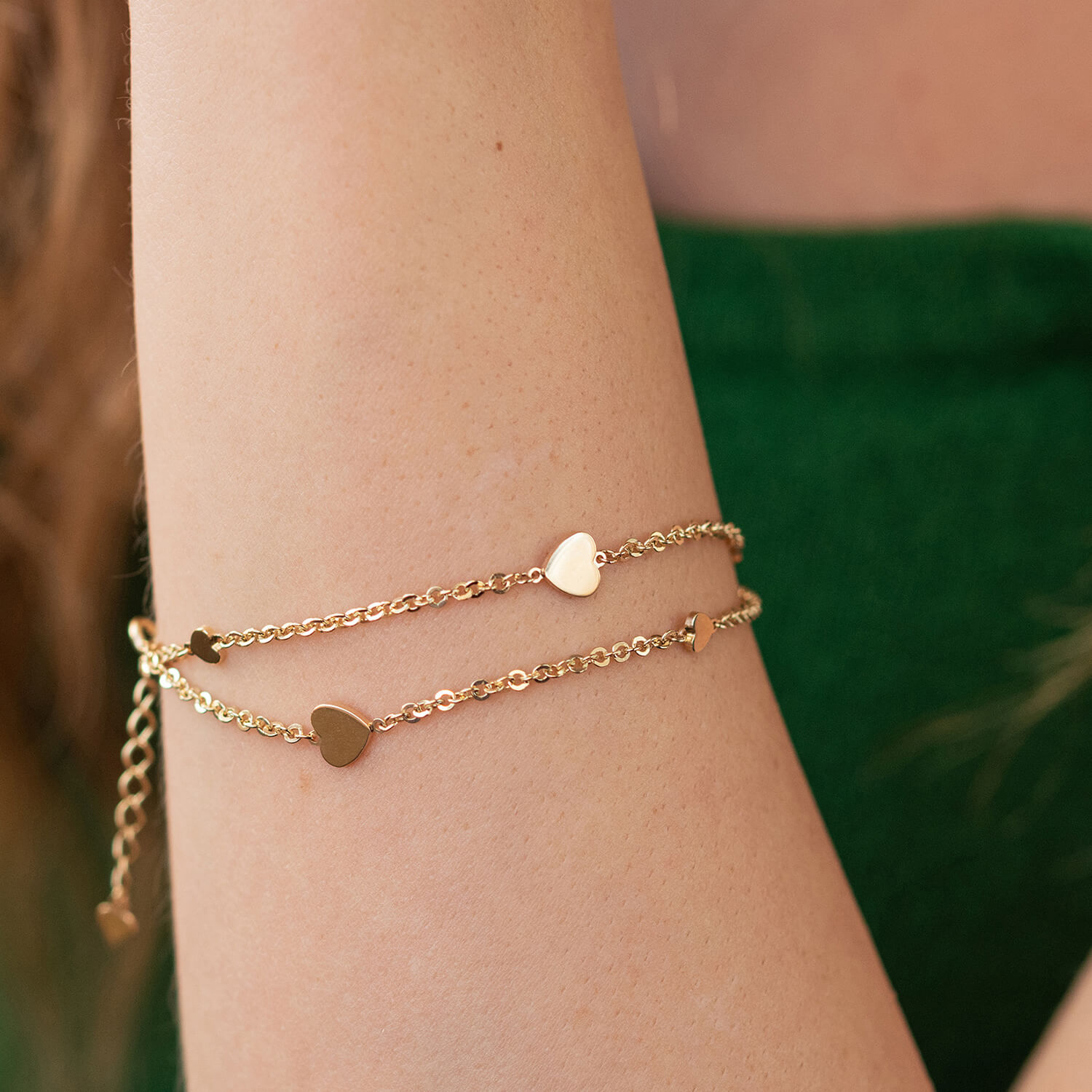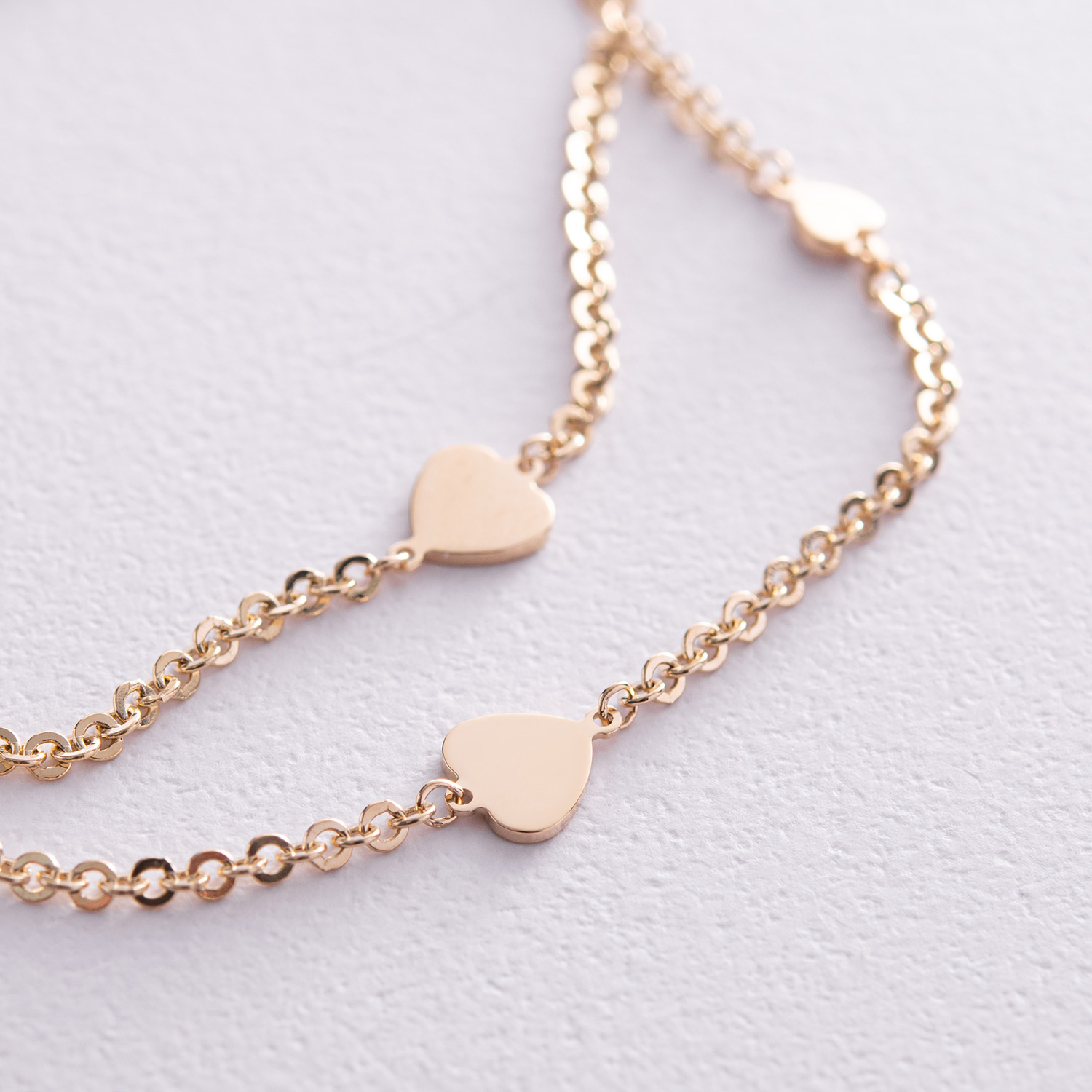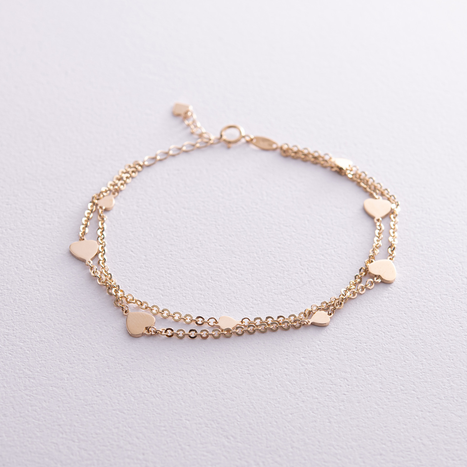Двойной браслет "Сердечки" в желтом золоте б05196