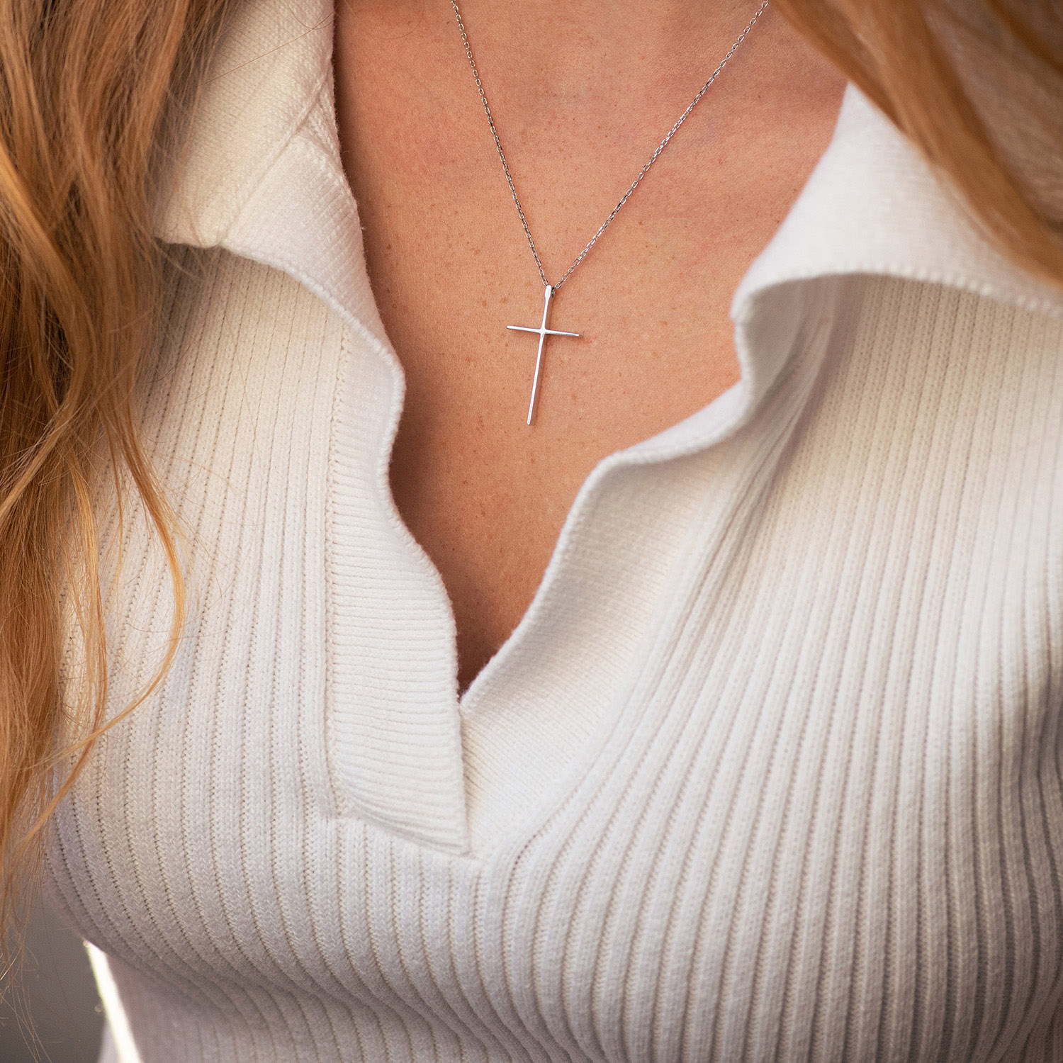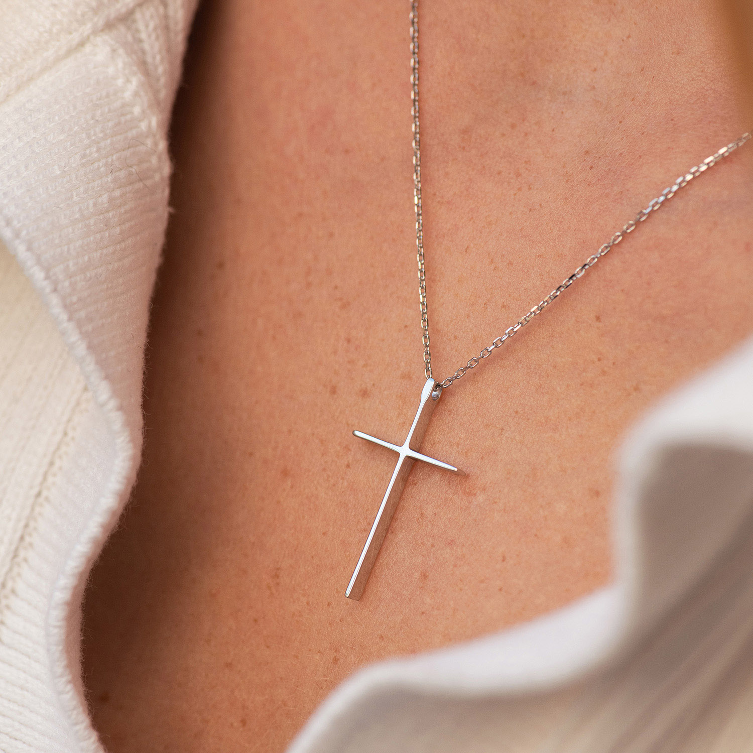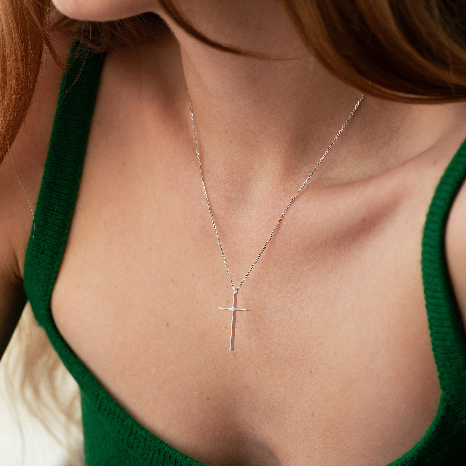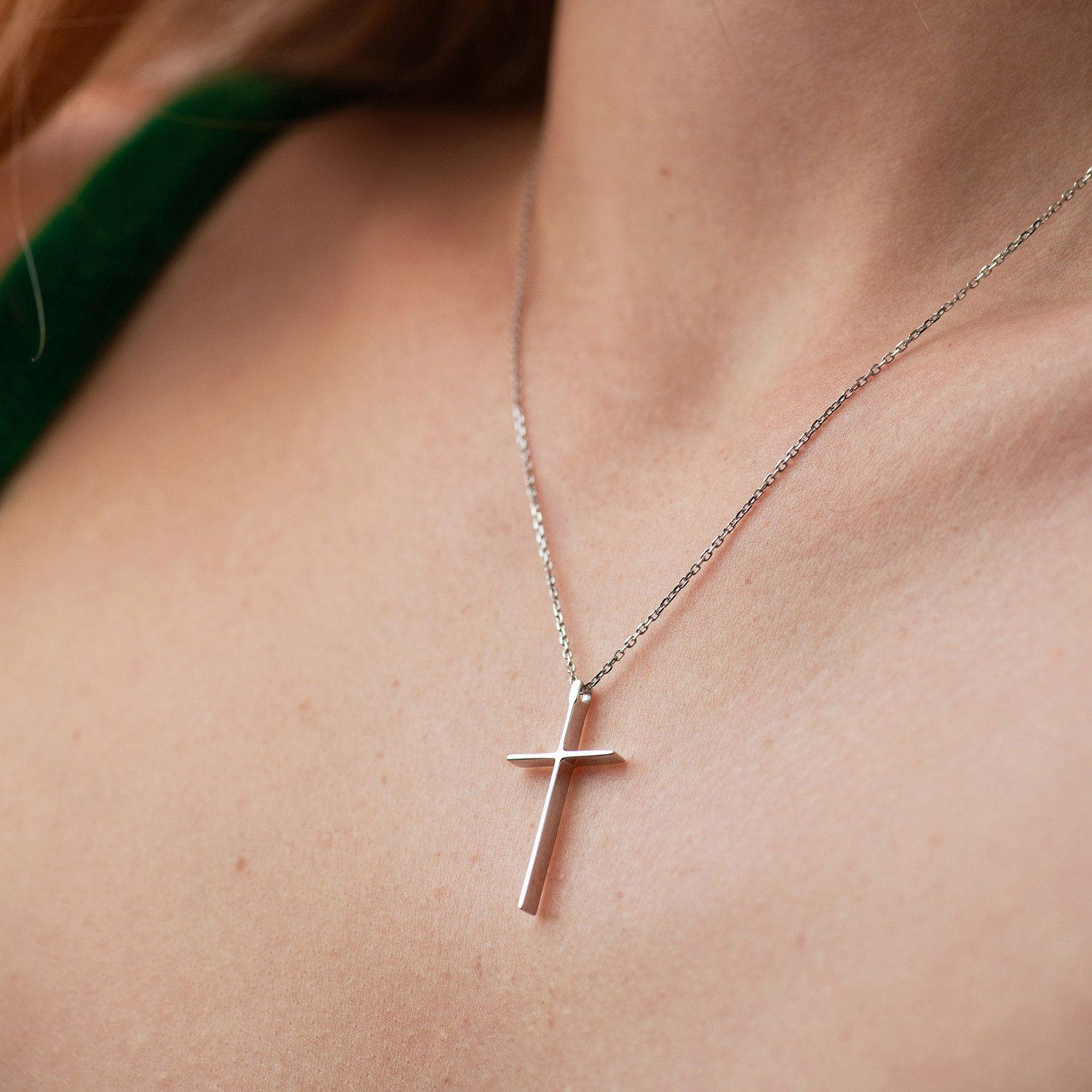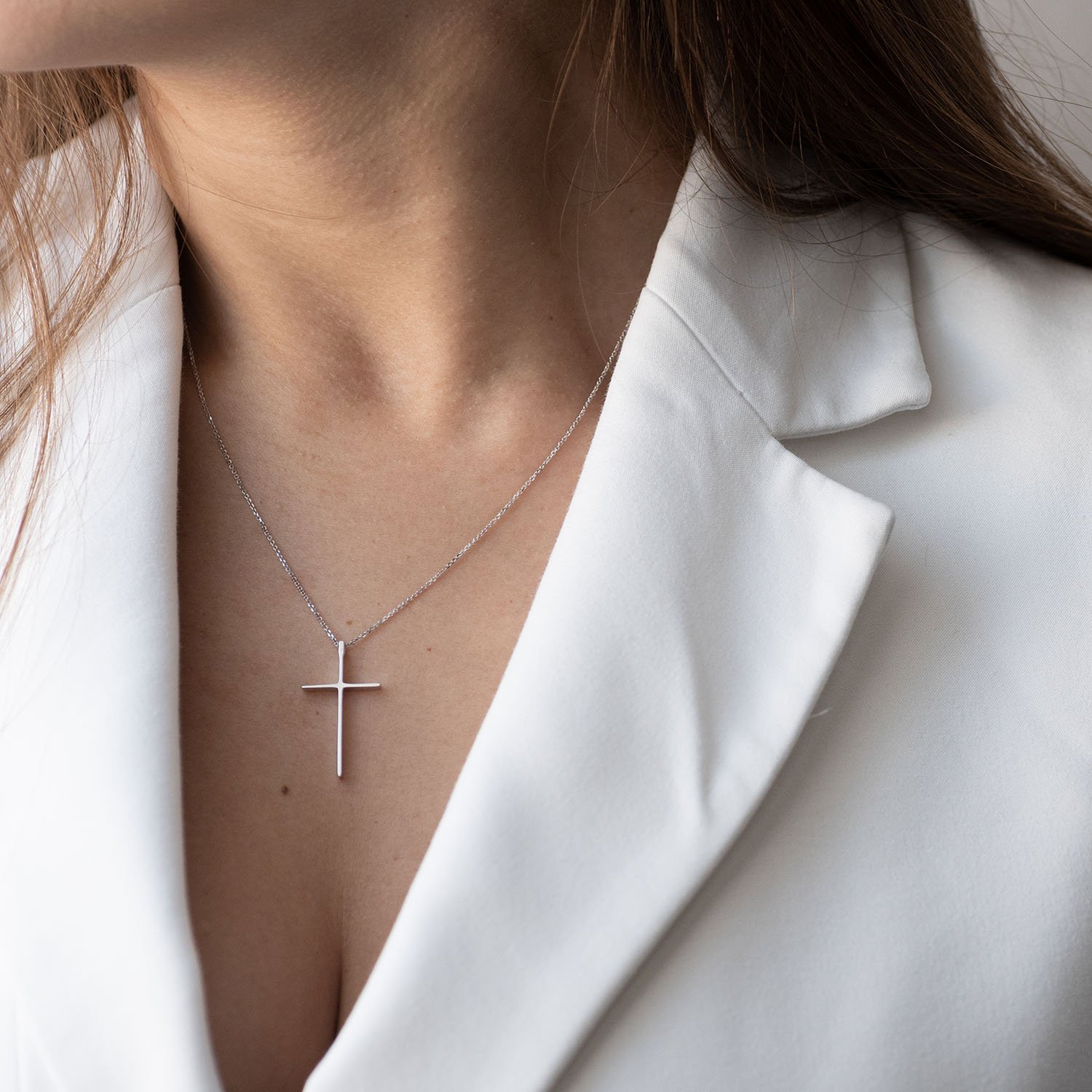 Колье "Крестик" в белом золоте кол01707