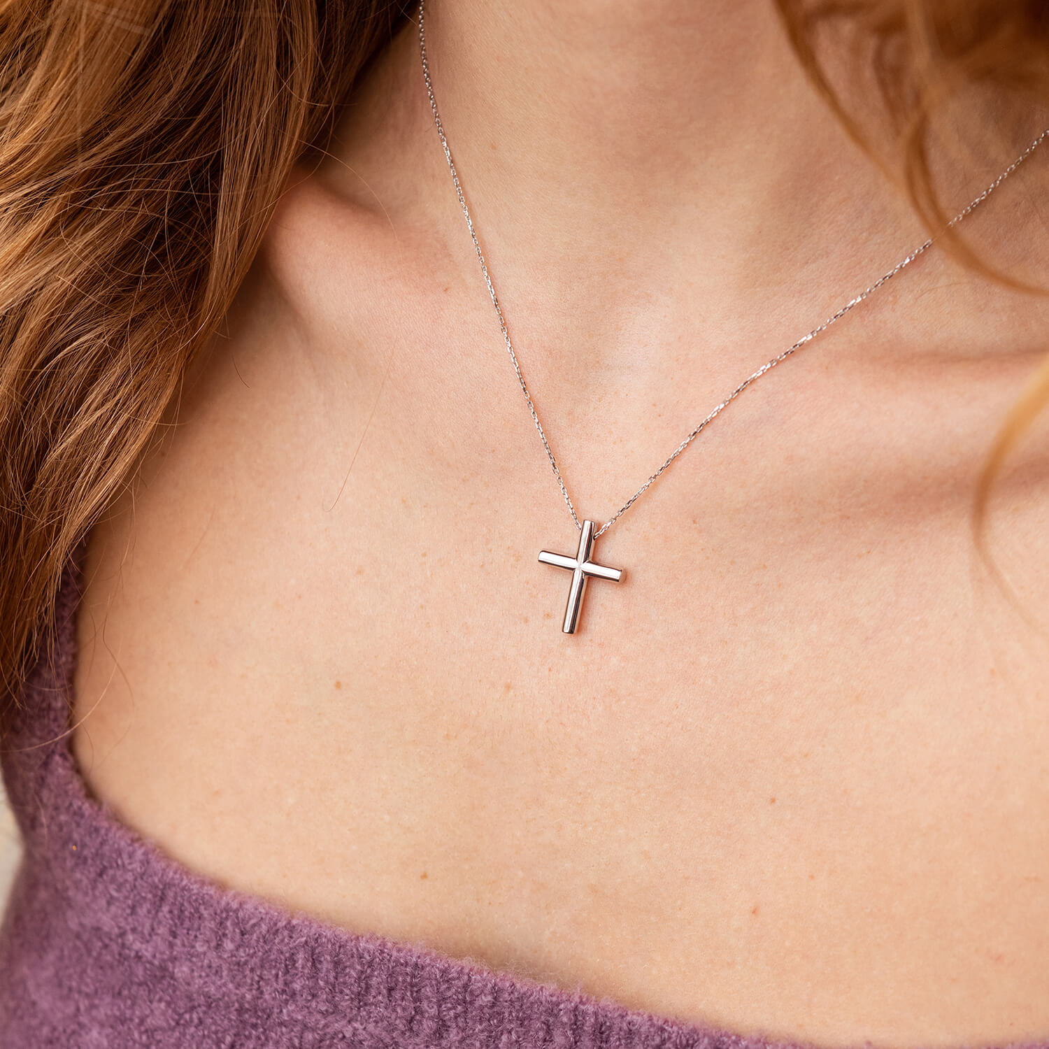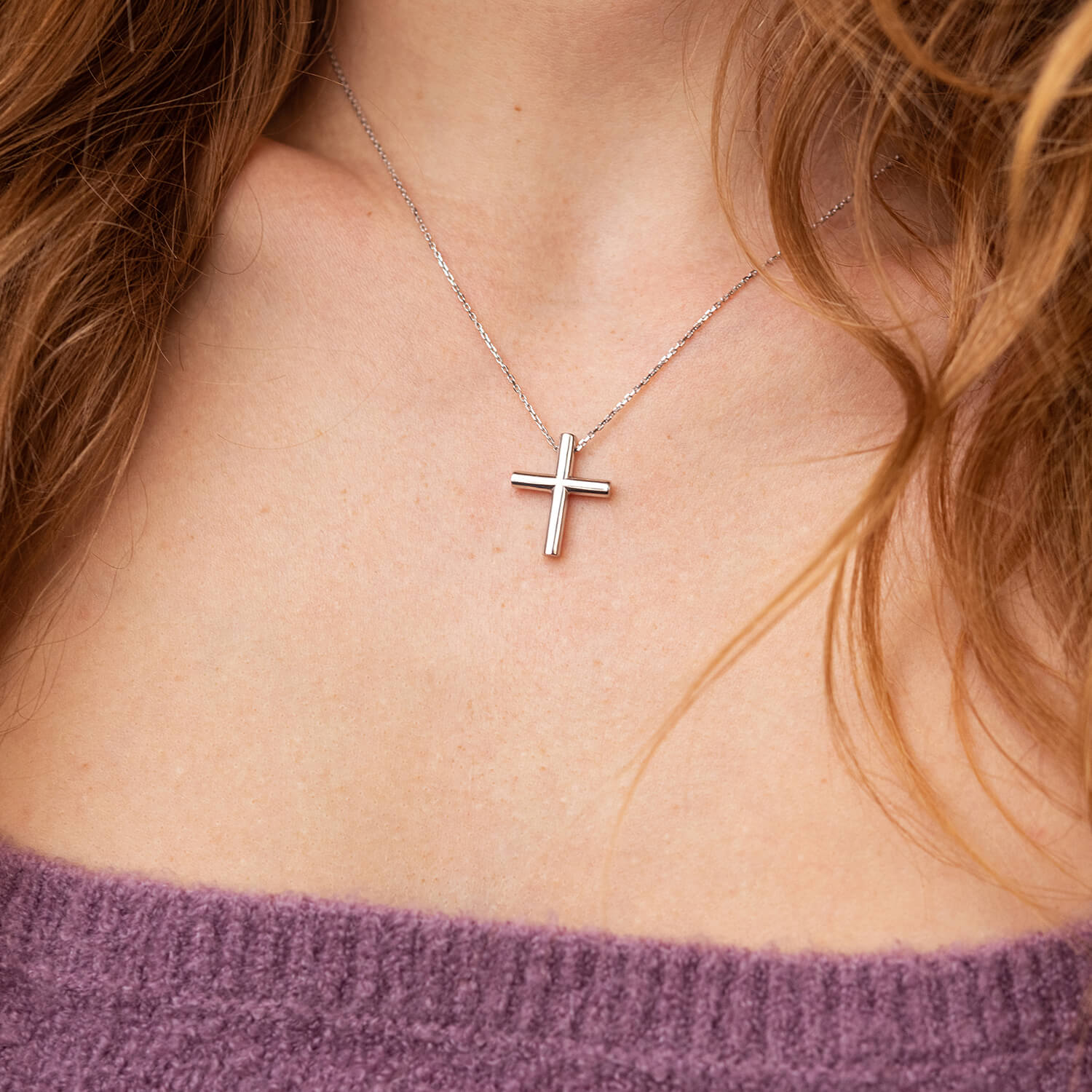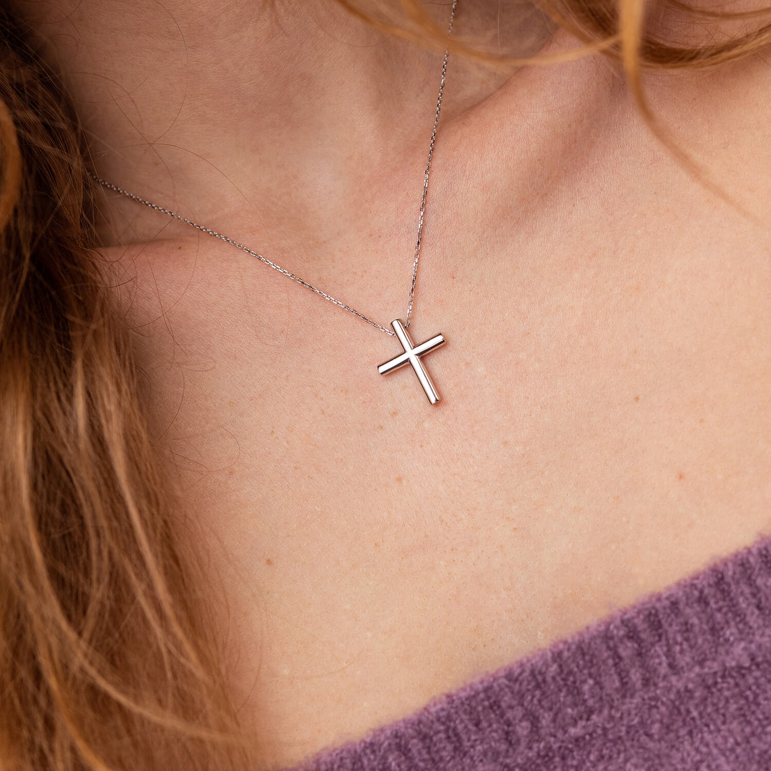 Колье с крестиком в белом золоте кол02356