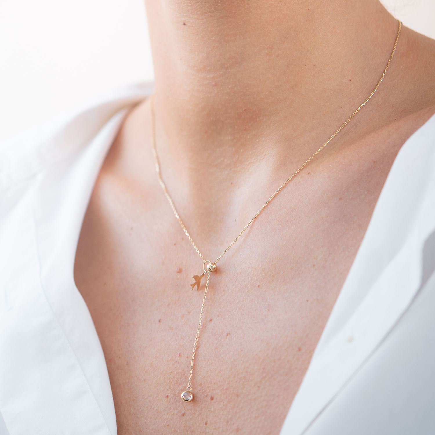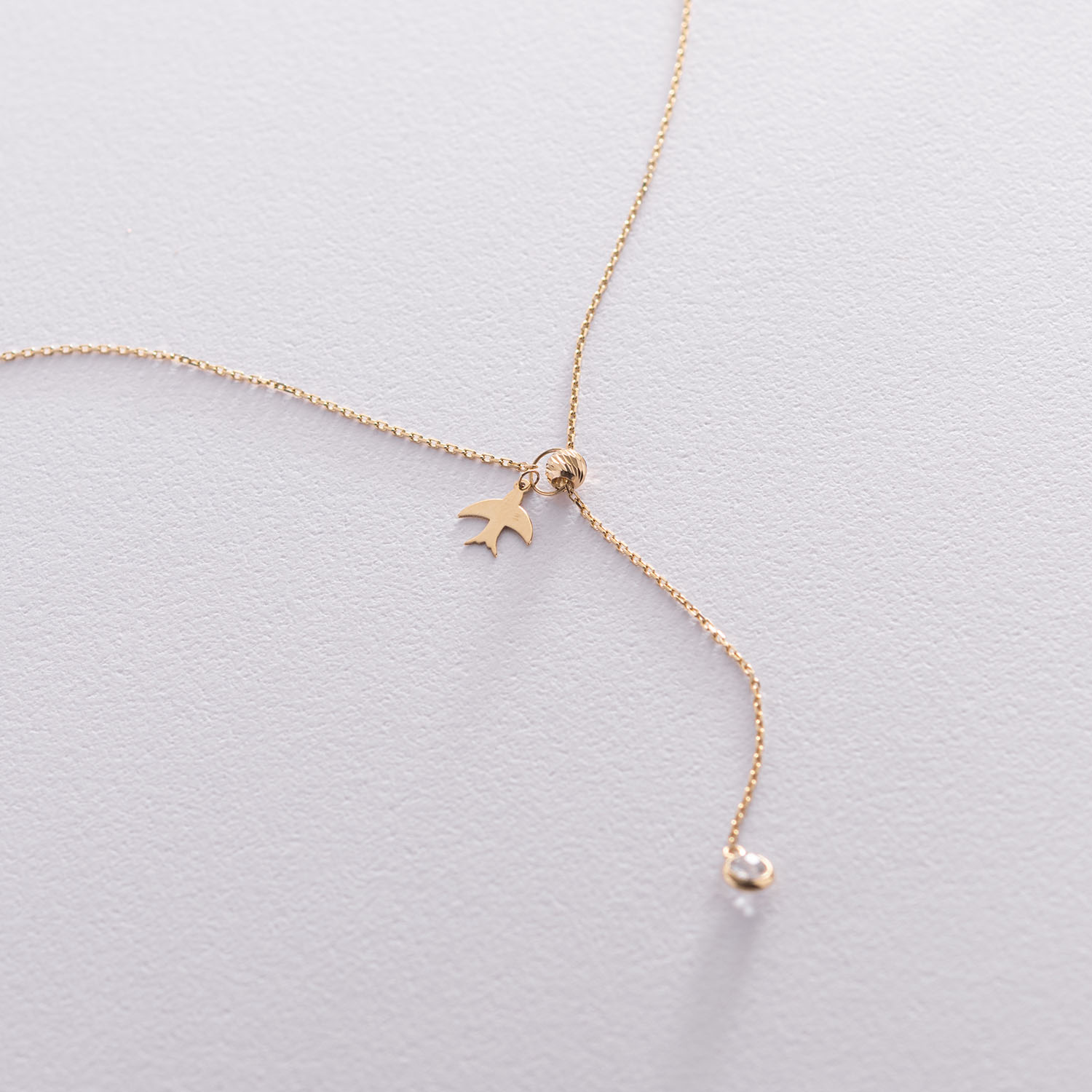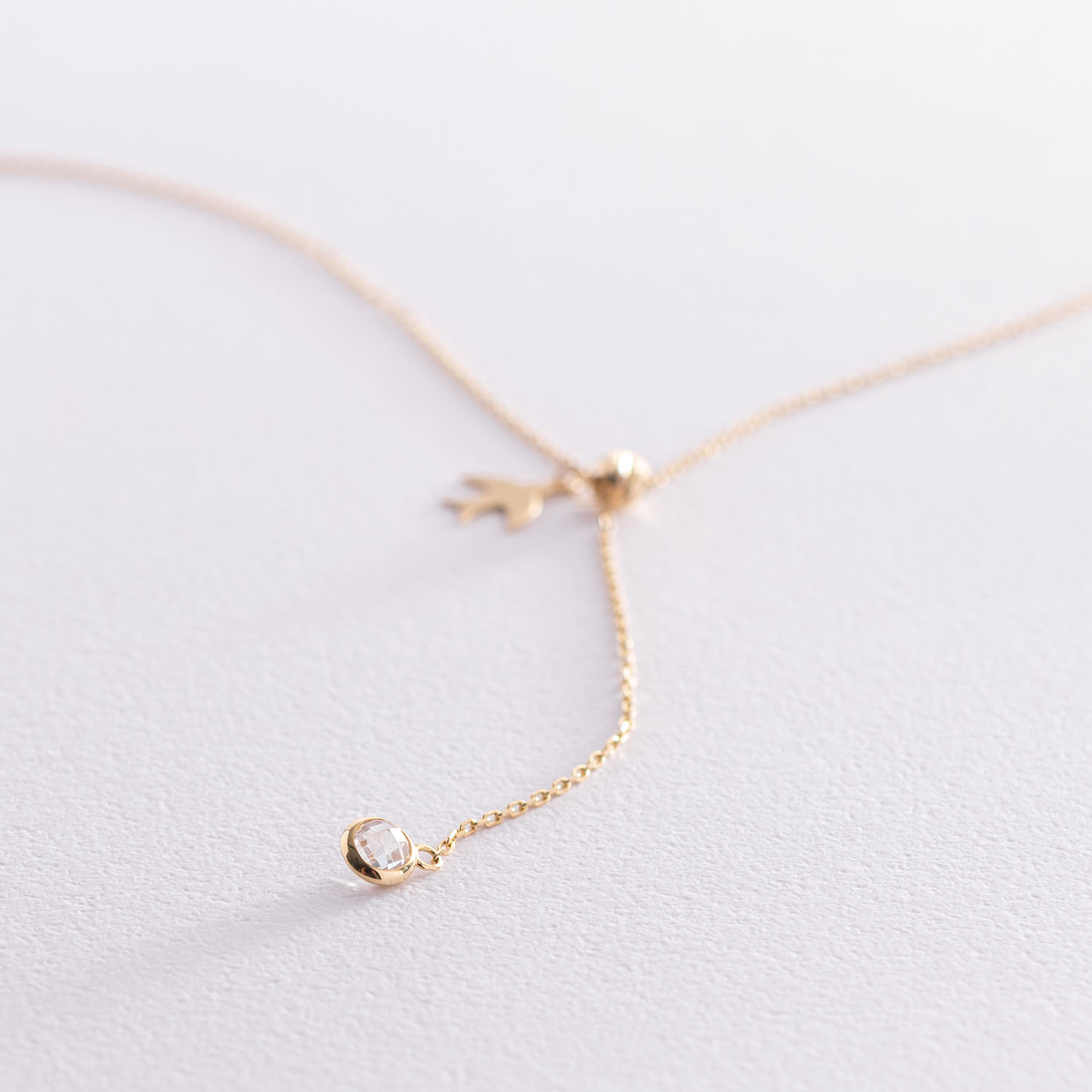 Колье "Ласточка" в желтом золоте (фианит) кол01859