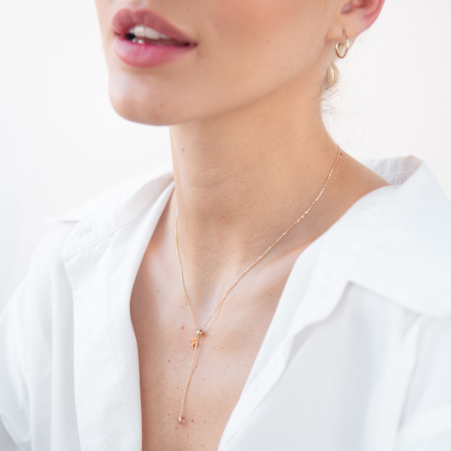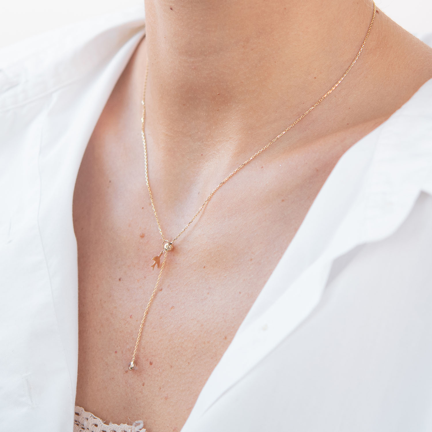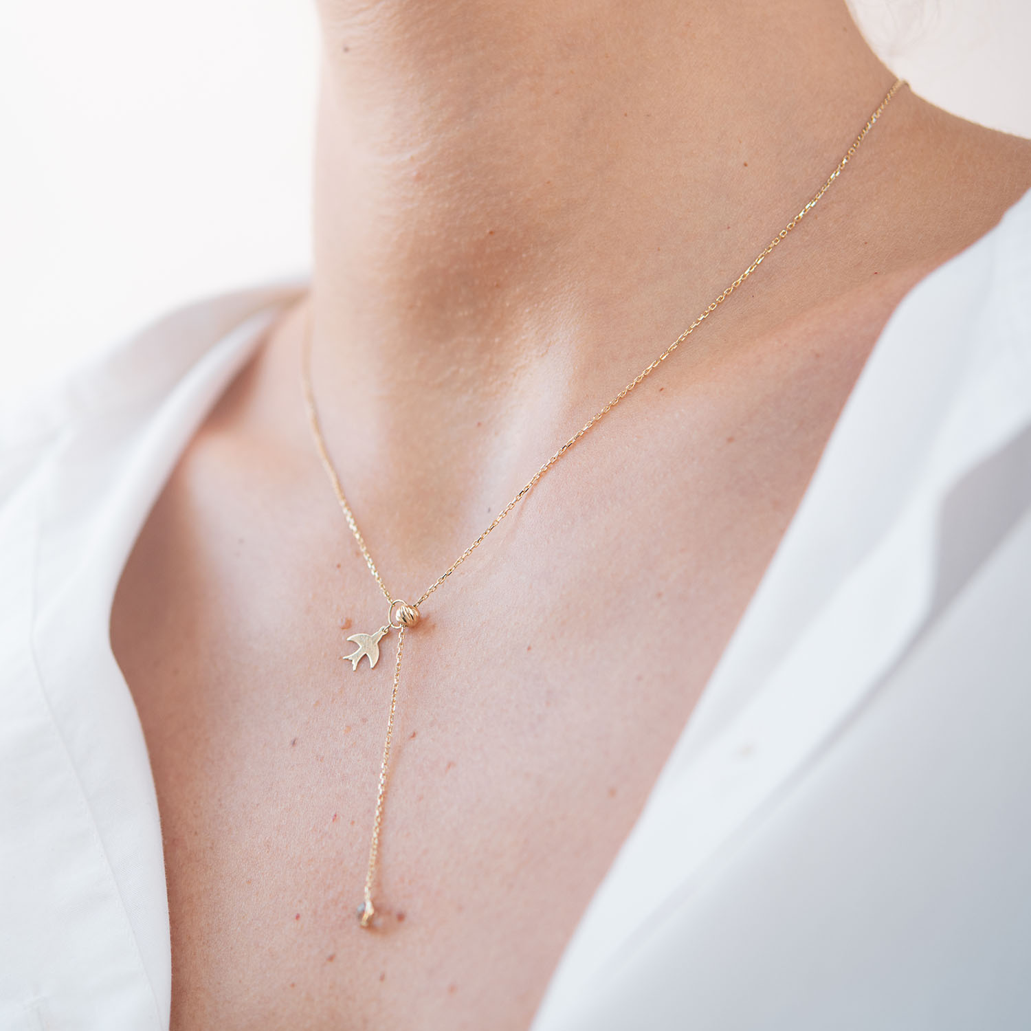 Колье "Ласточка" в желтом золоте (фианит) кол01859