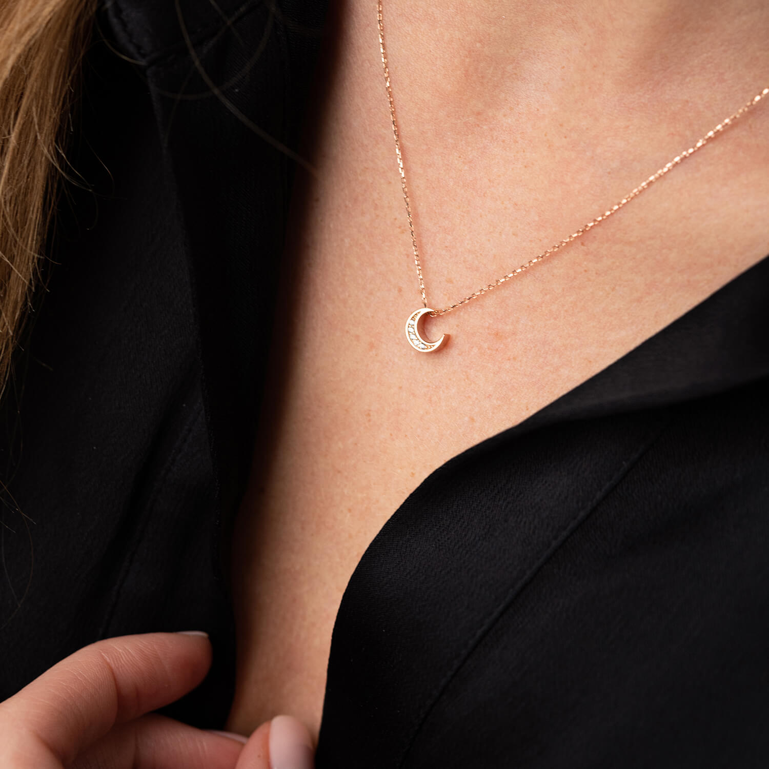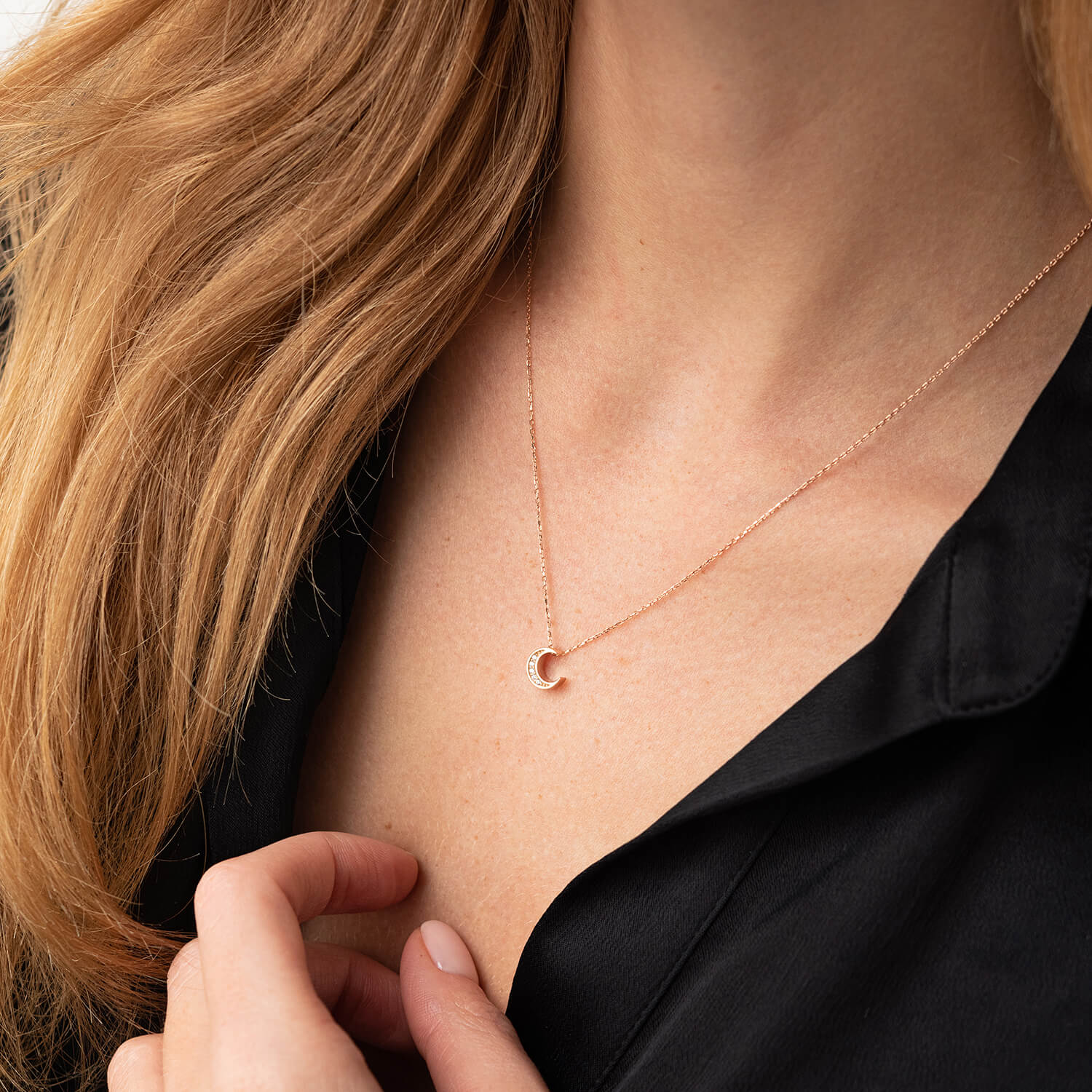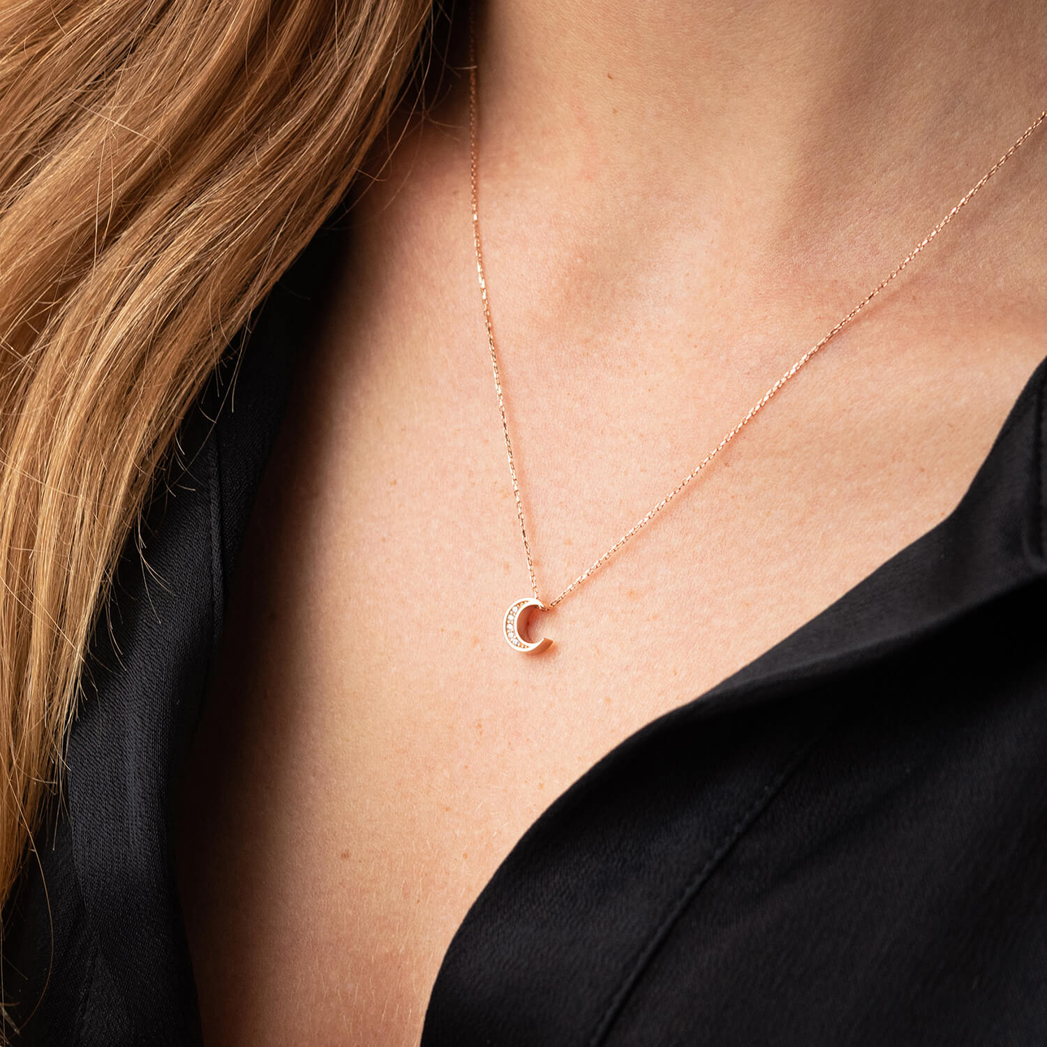 Колье "Луна" с фианитами (красное золото) кол02309