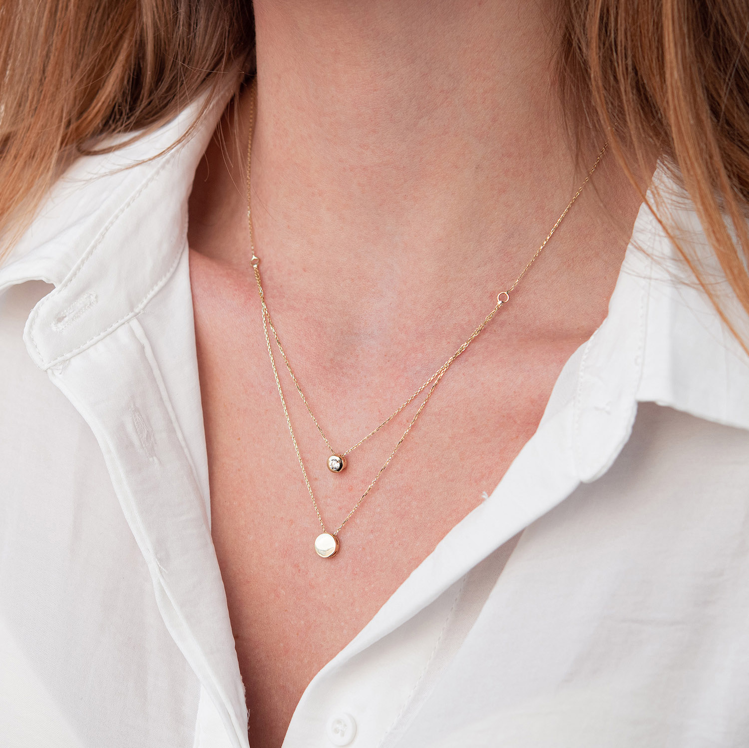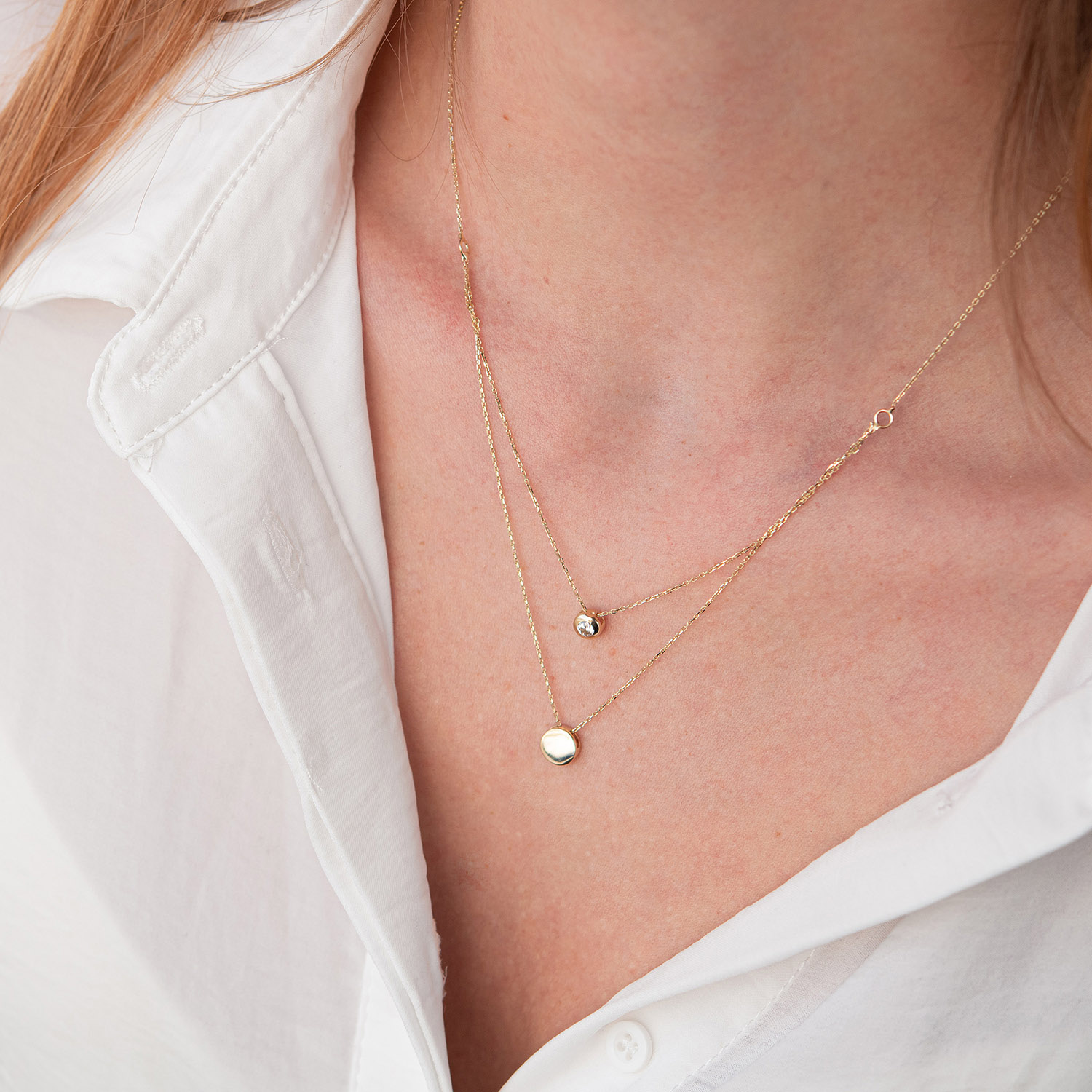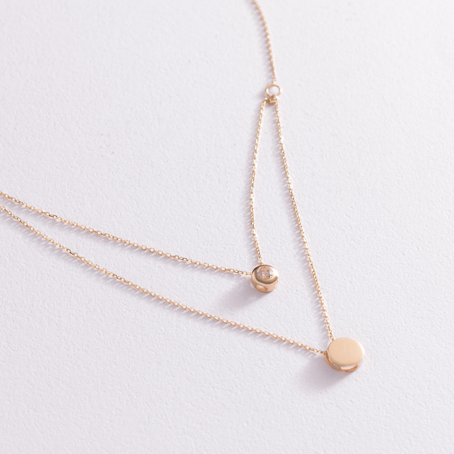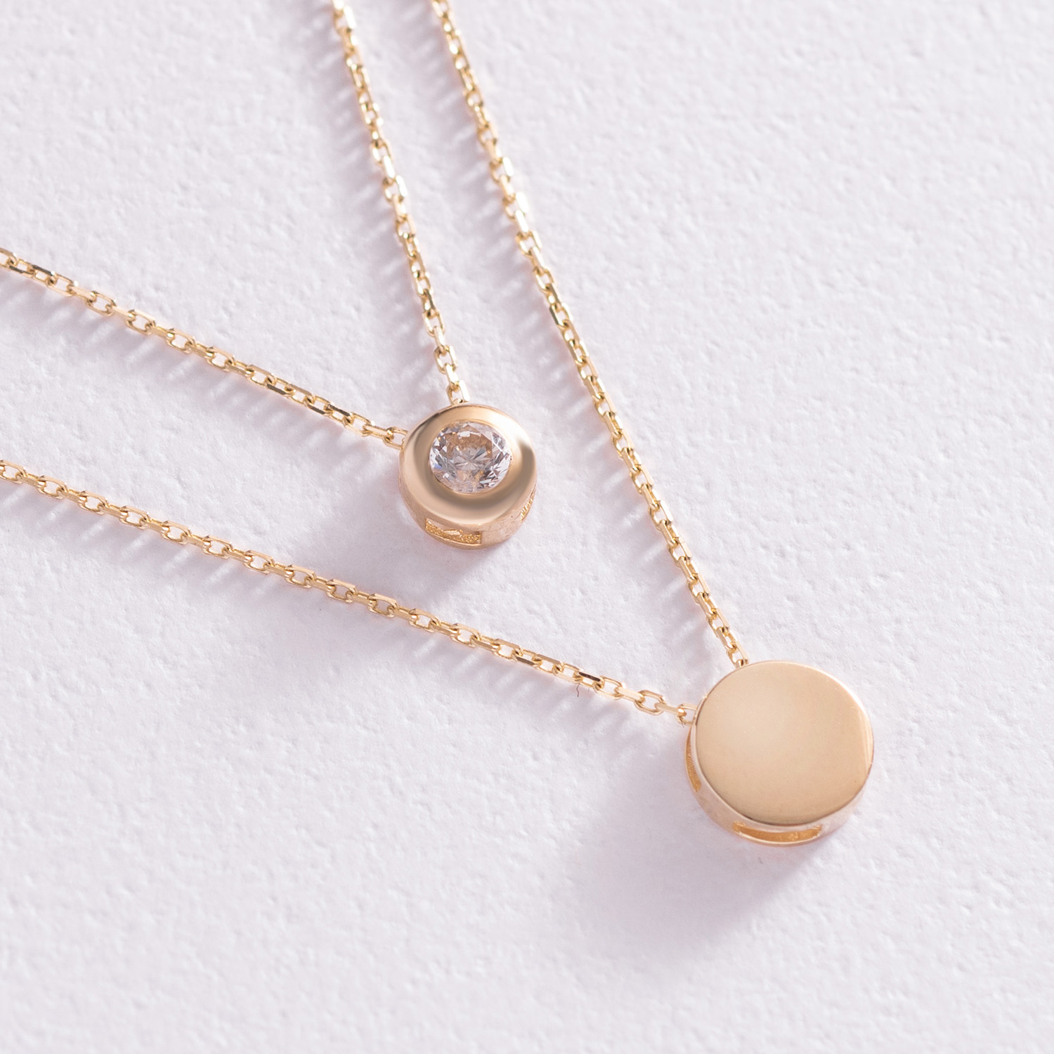 Колье "Маленький круг" с одним фианитом (желтое золото) кол01563
