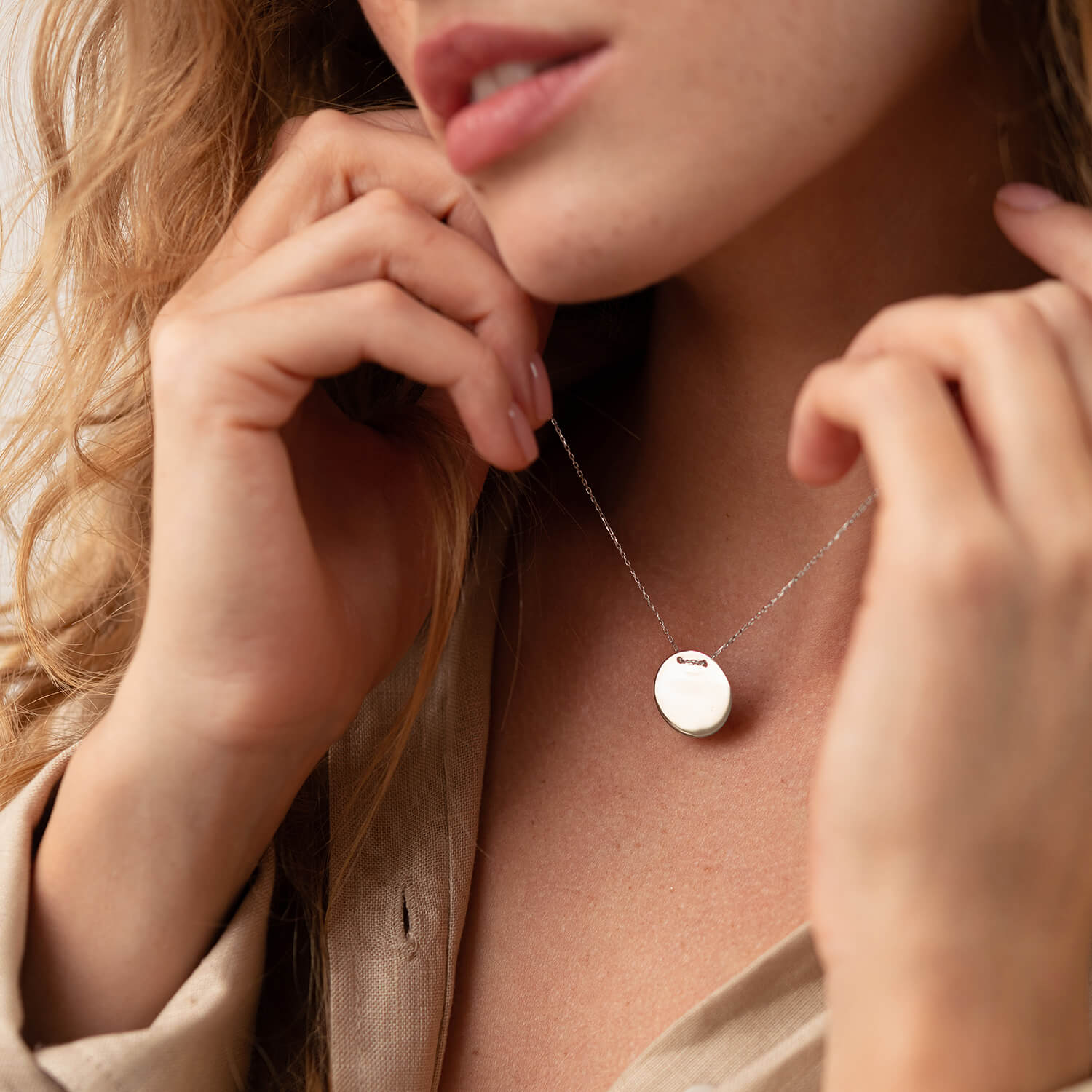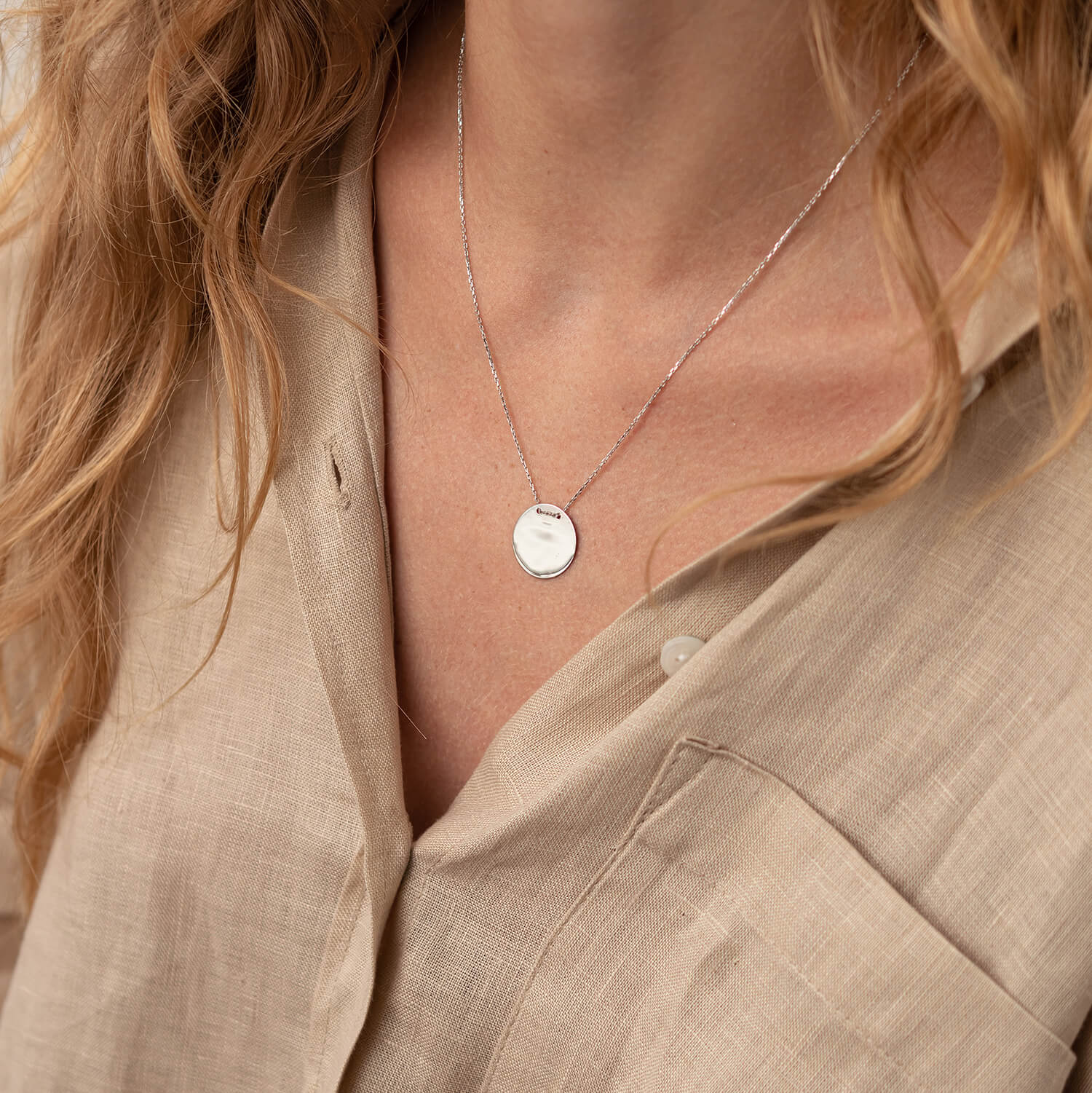 Колье "Монетка" в белом золоте (возможна гравировка) кол02277