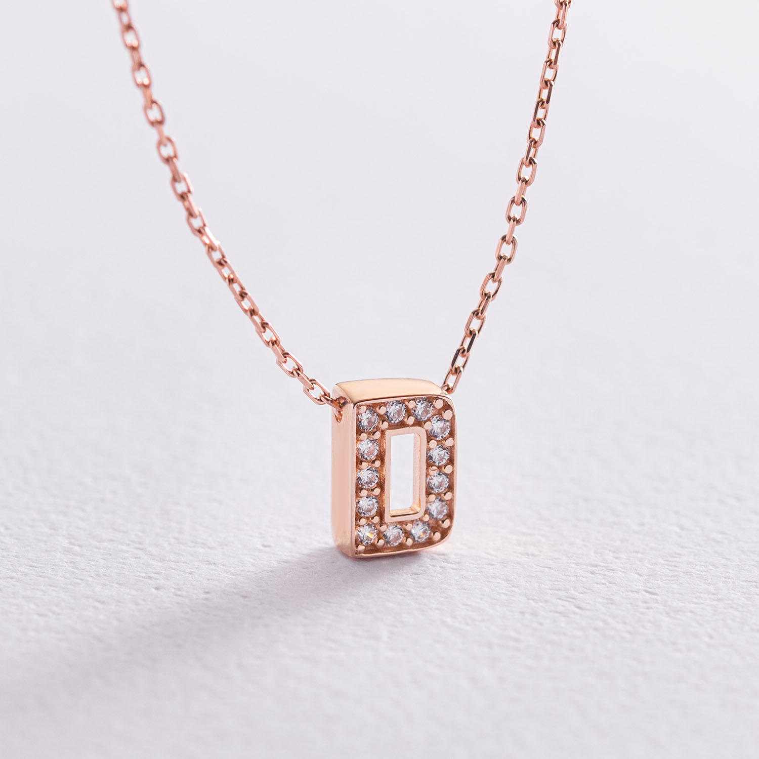 Колье с буквой "D" в красном золоте (фианиты) кол01255D