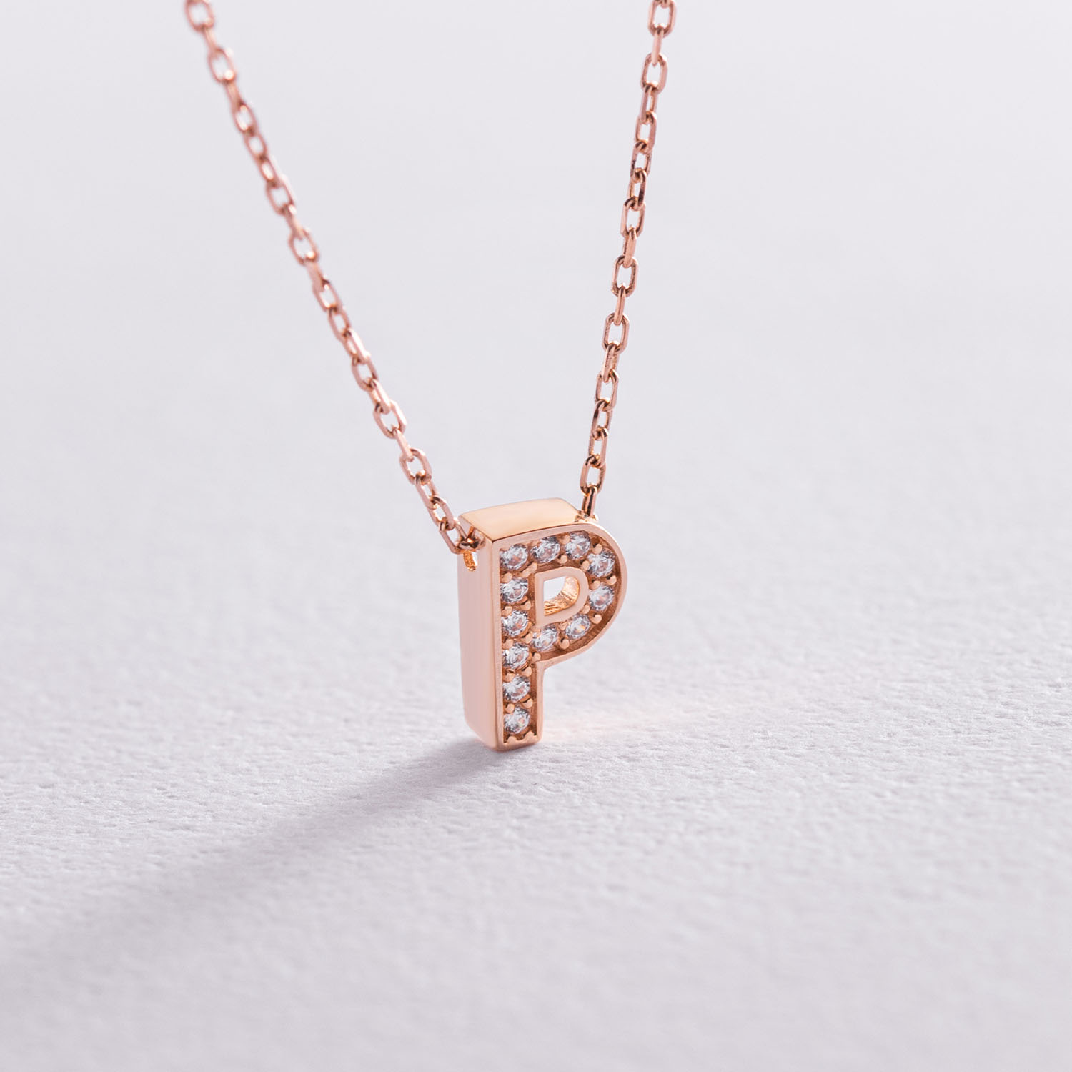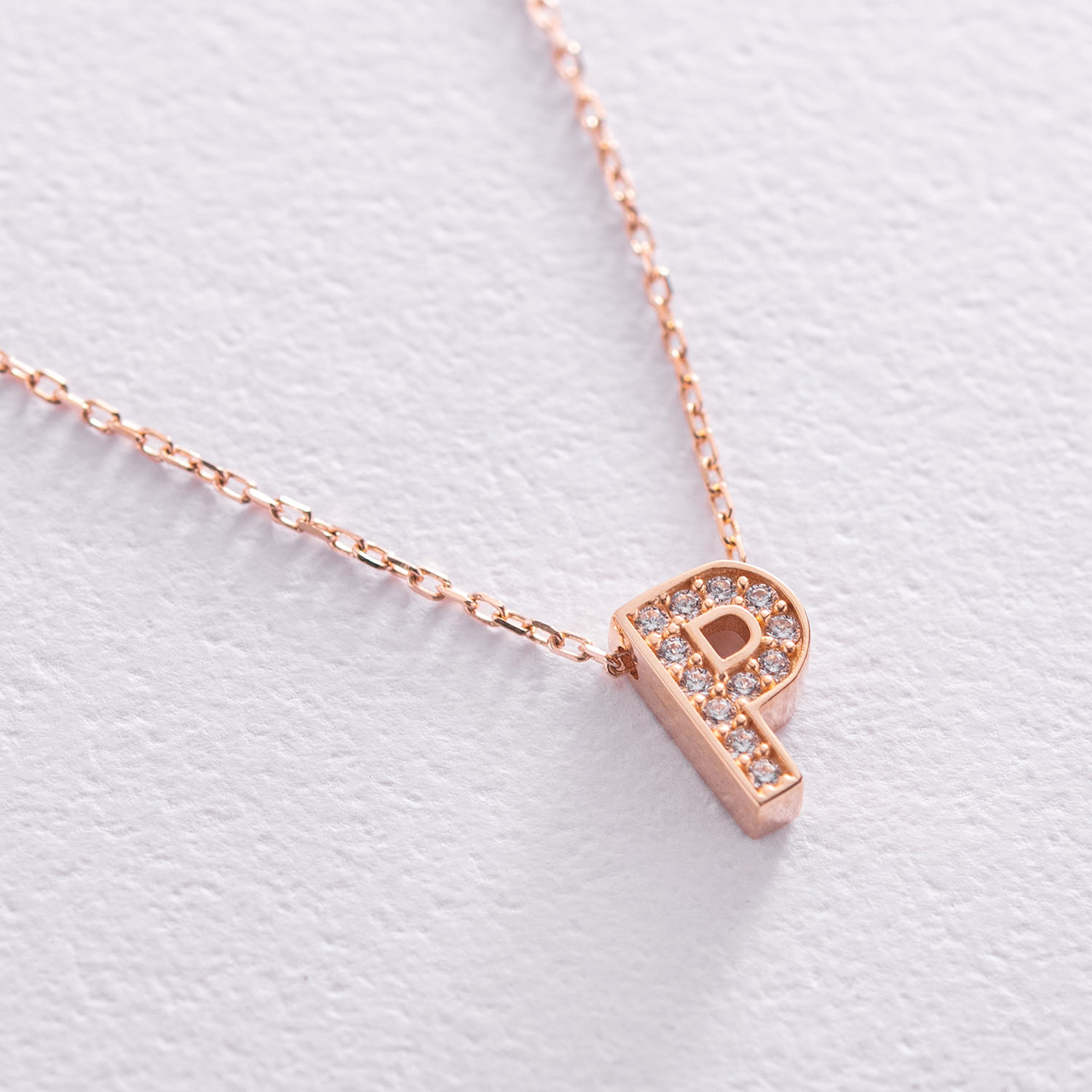 Колье с буквой "Р" в красном золоте (фианиты) кол01255Р