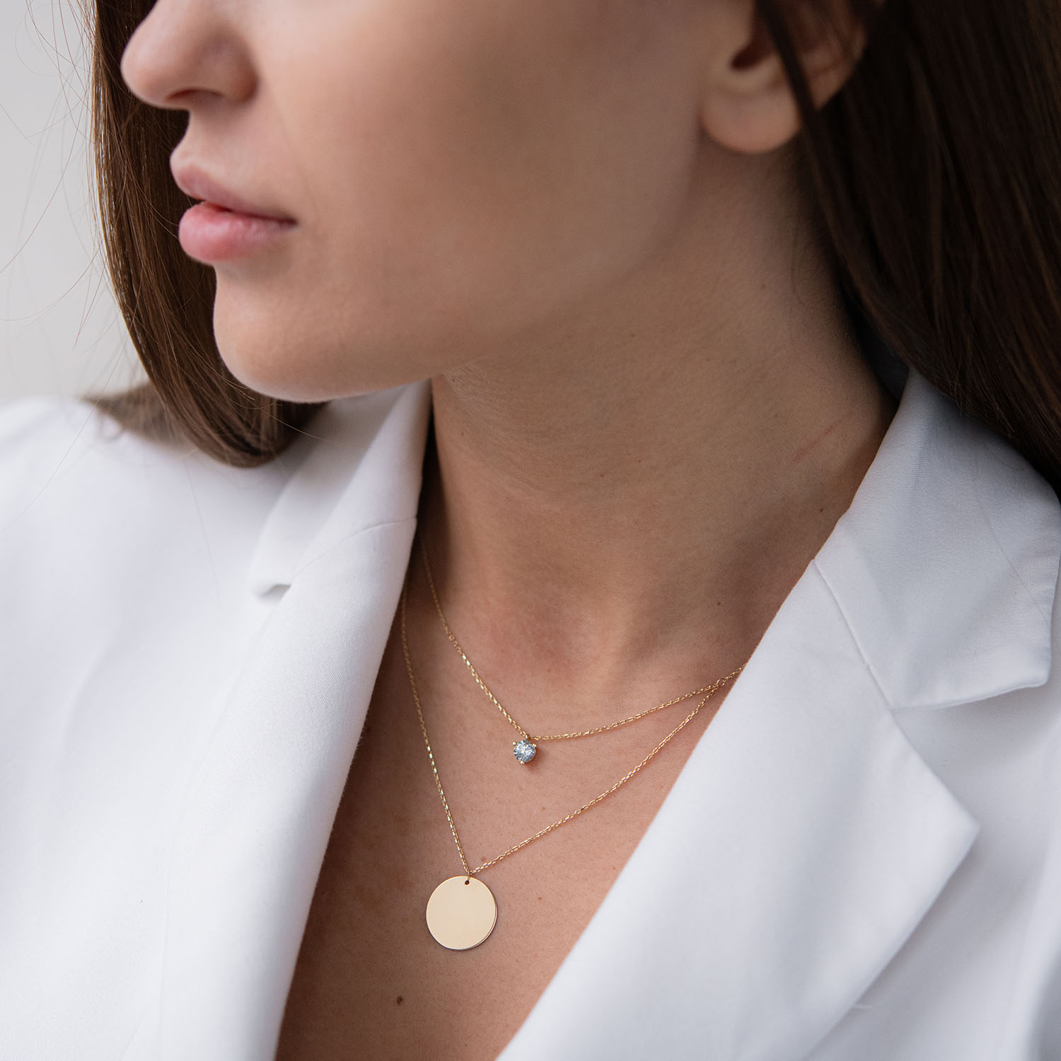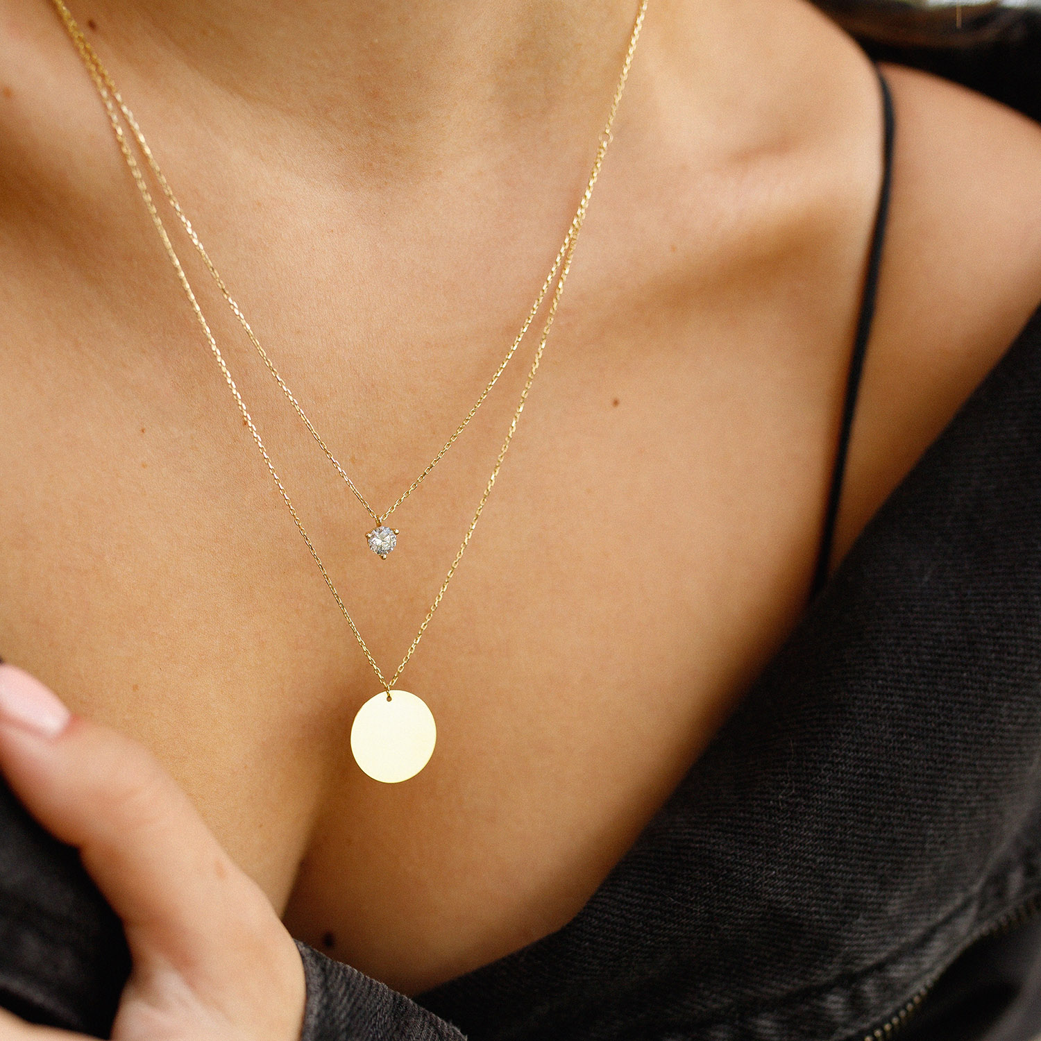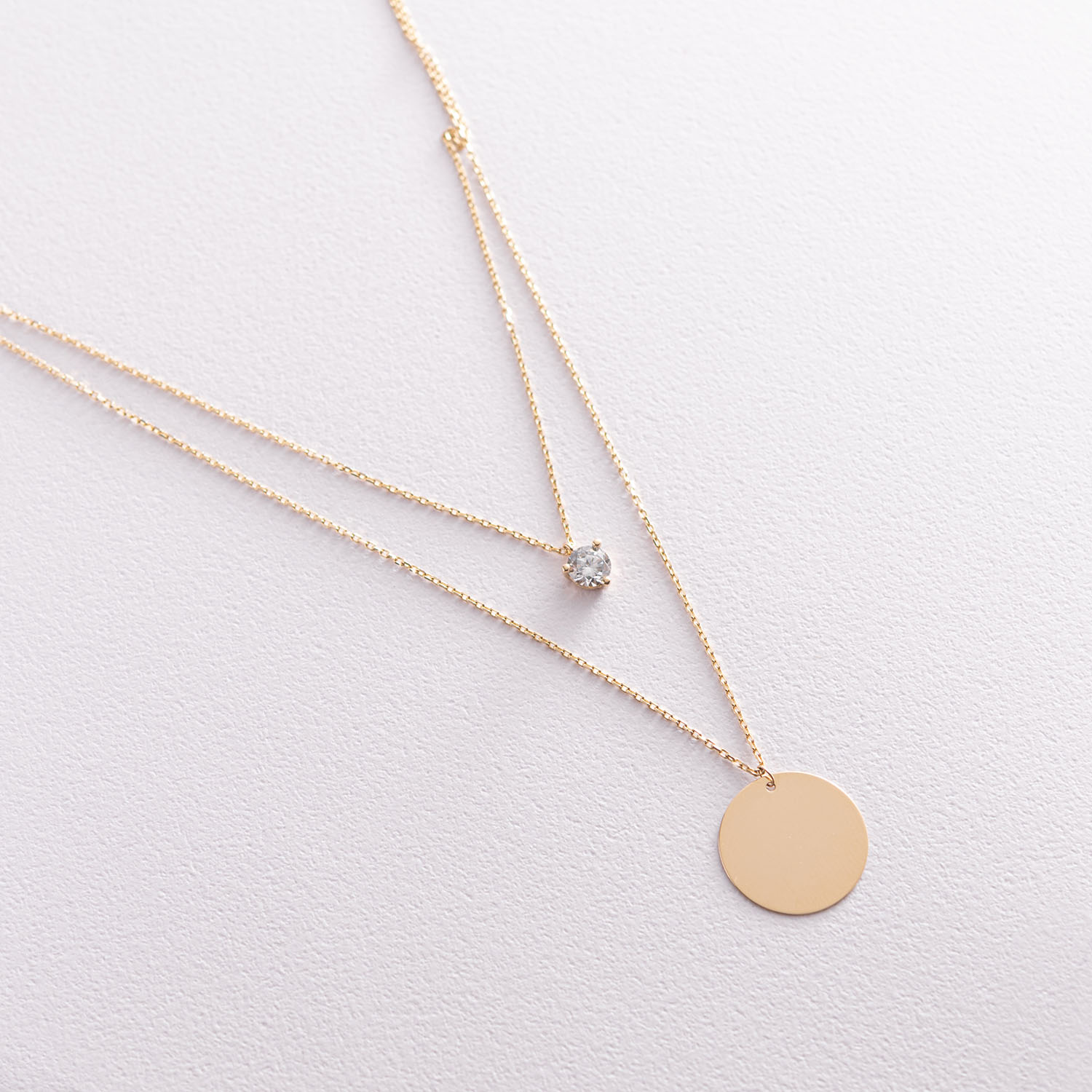 Колье с фианитом в желтом золоте (возможна гравировка) кол01785