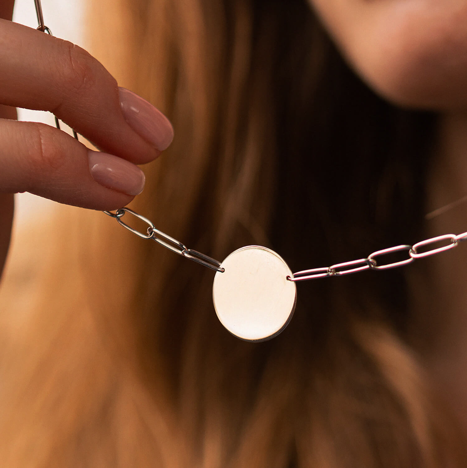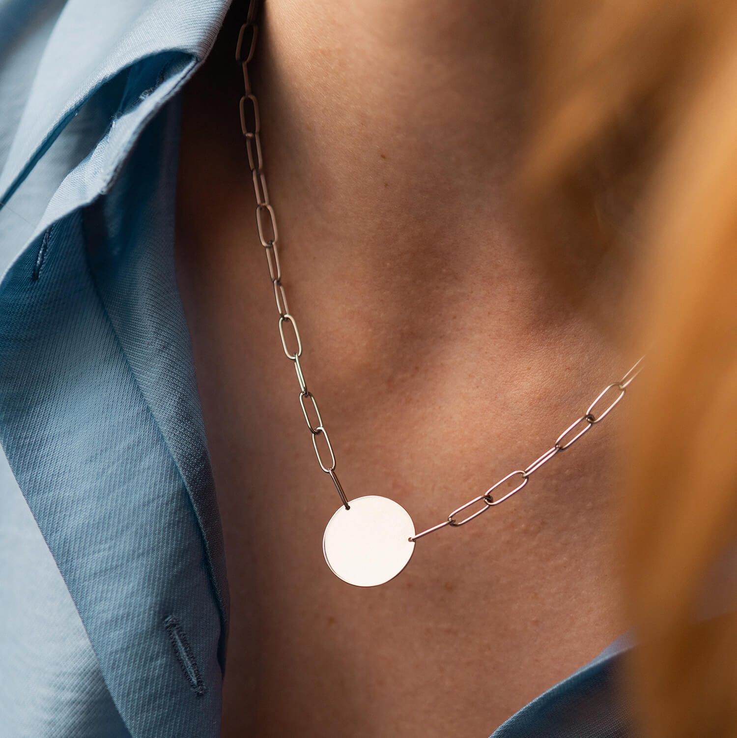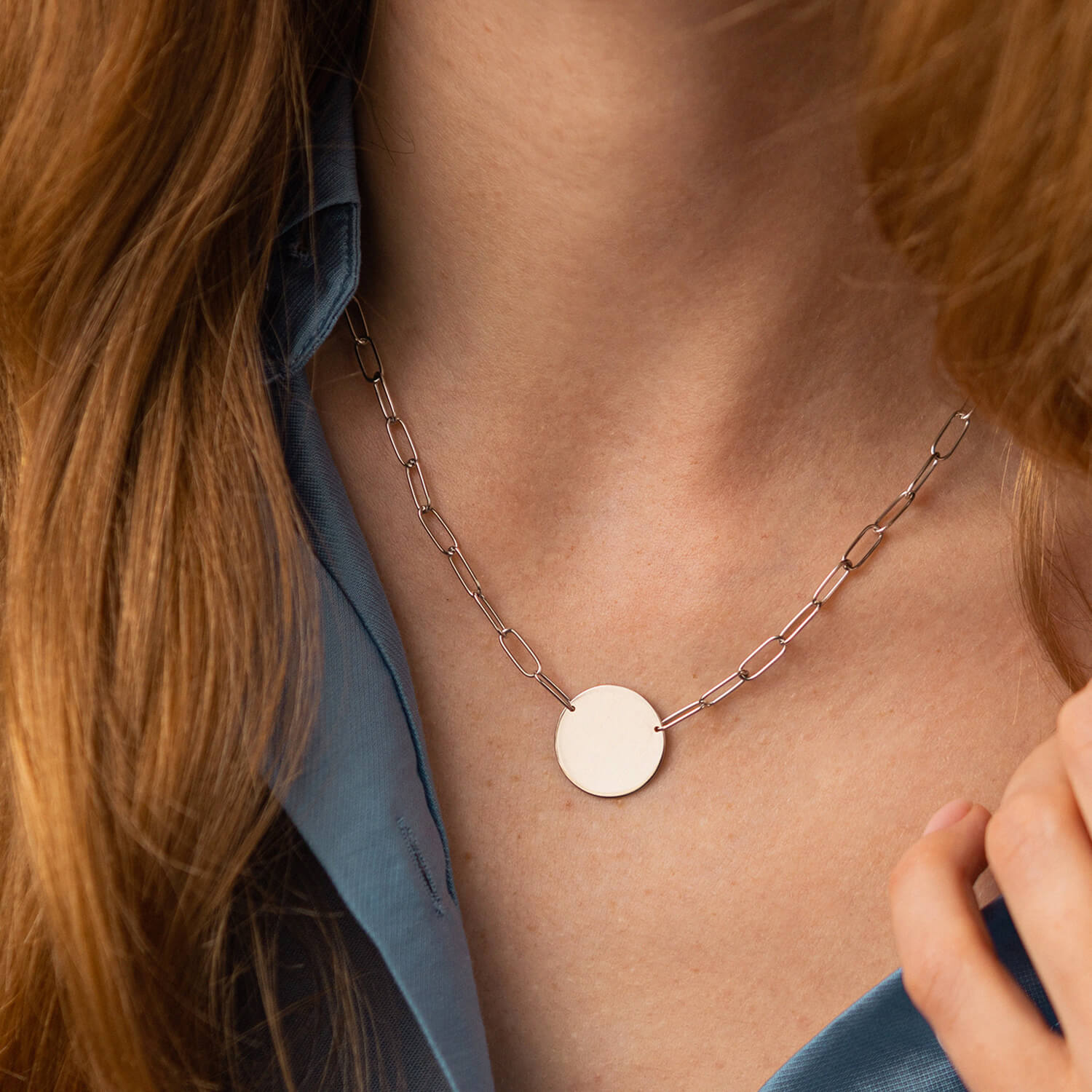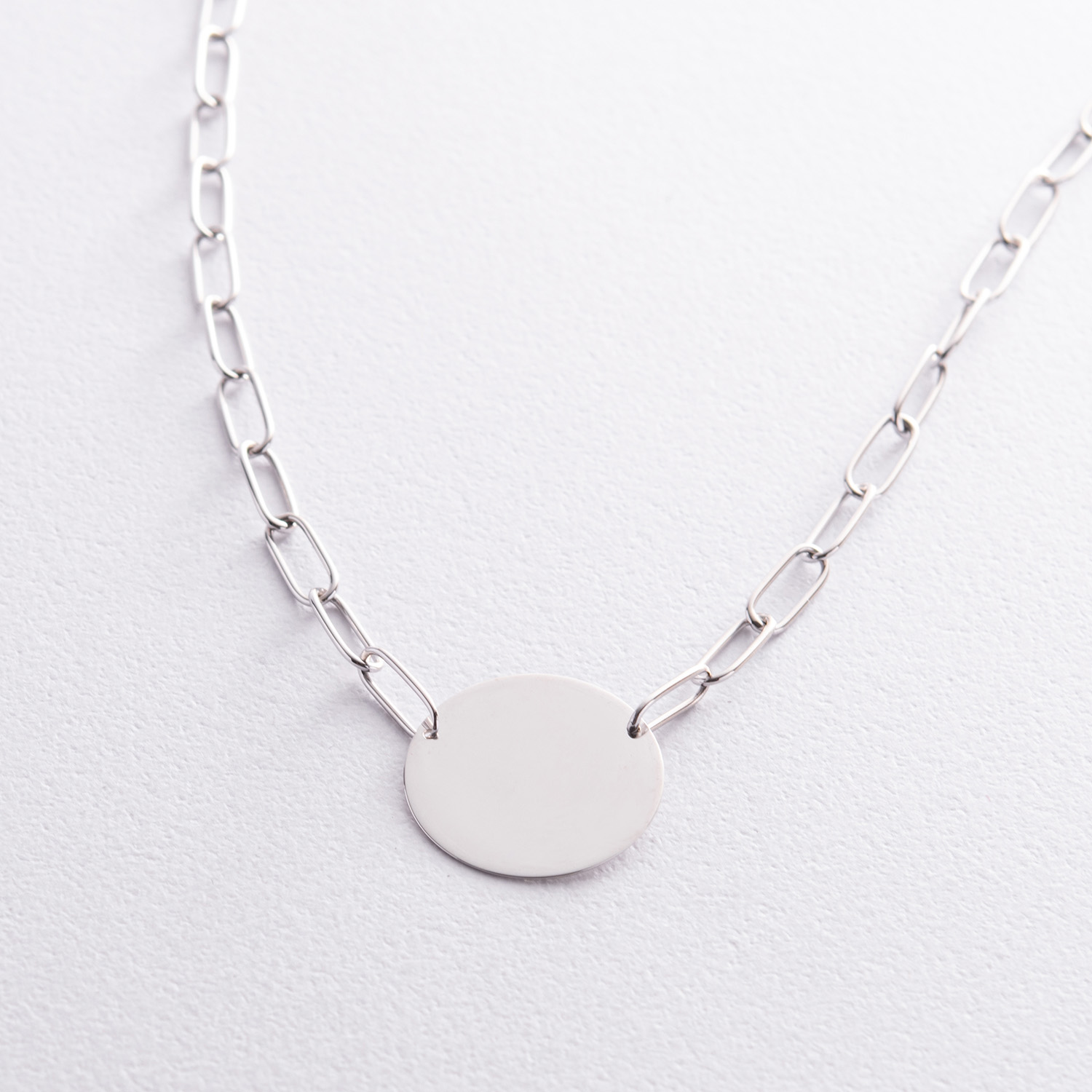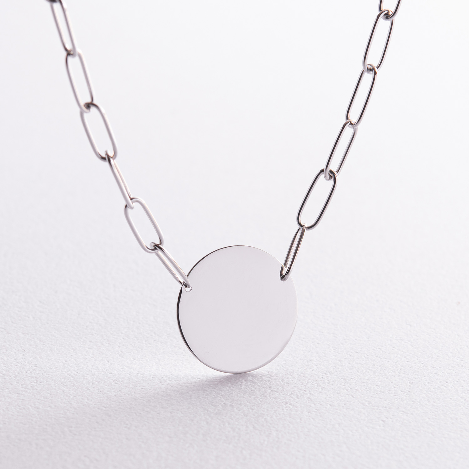 Колье с монеткой для гравировки (белое золото) кол02391