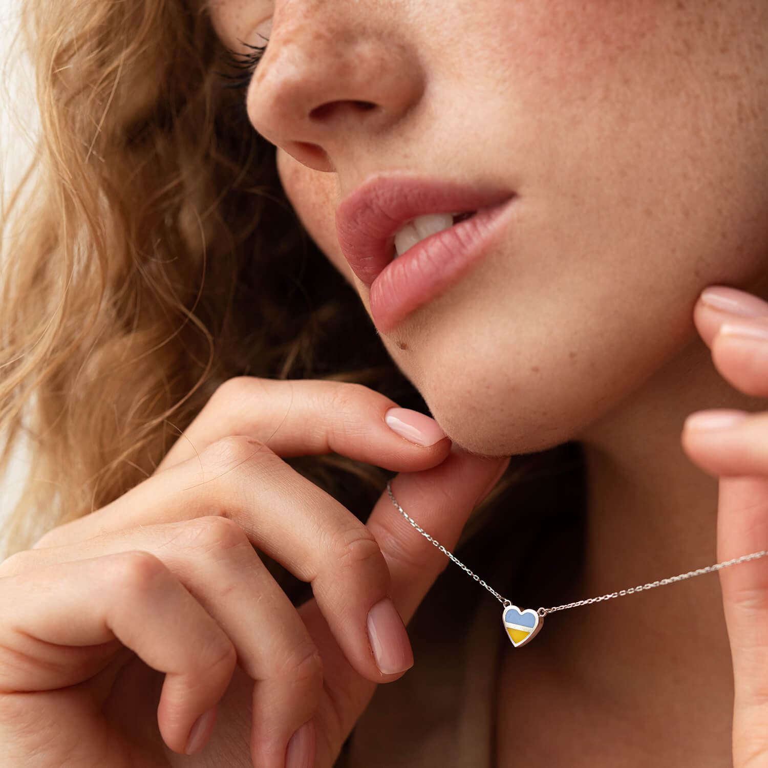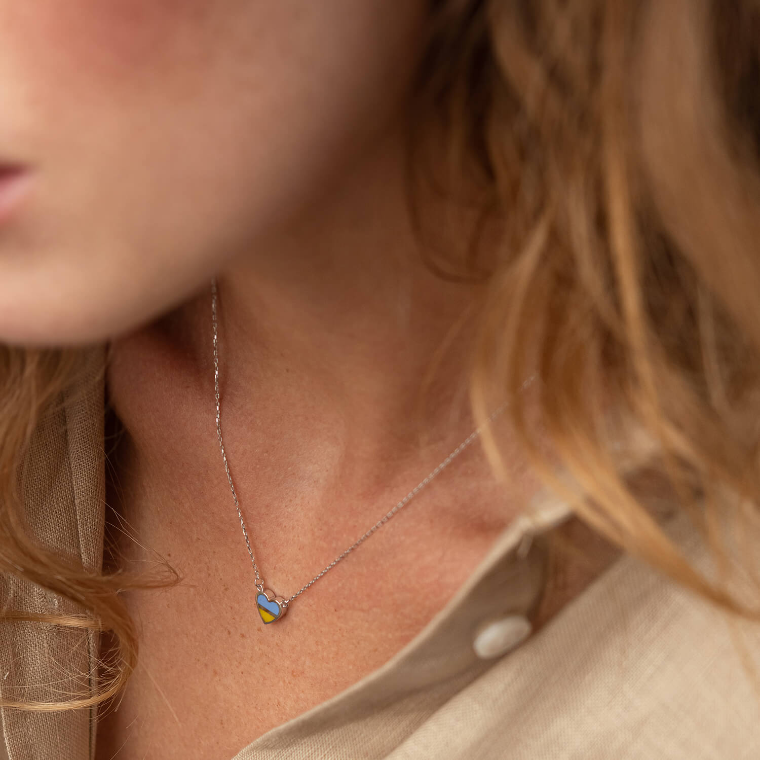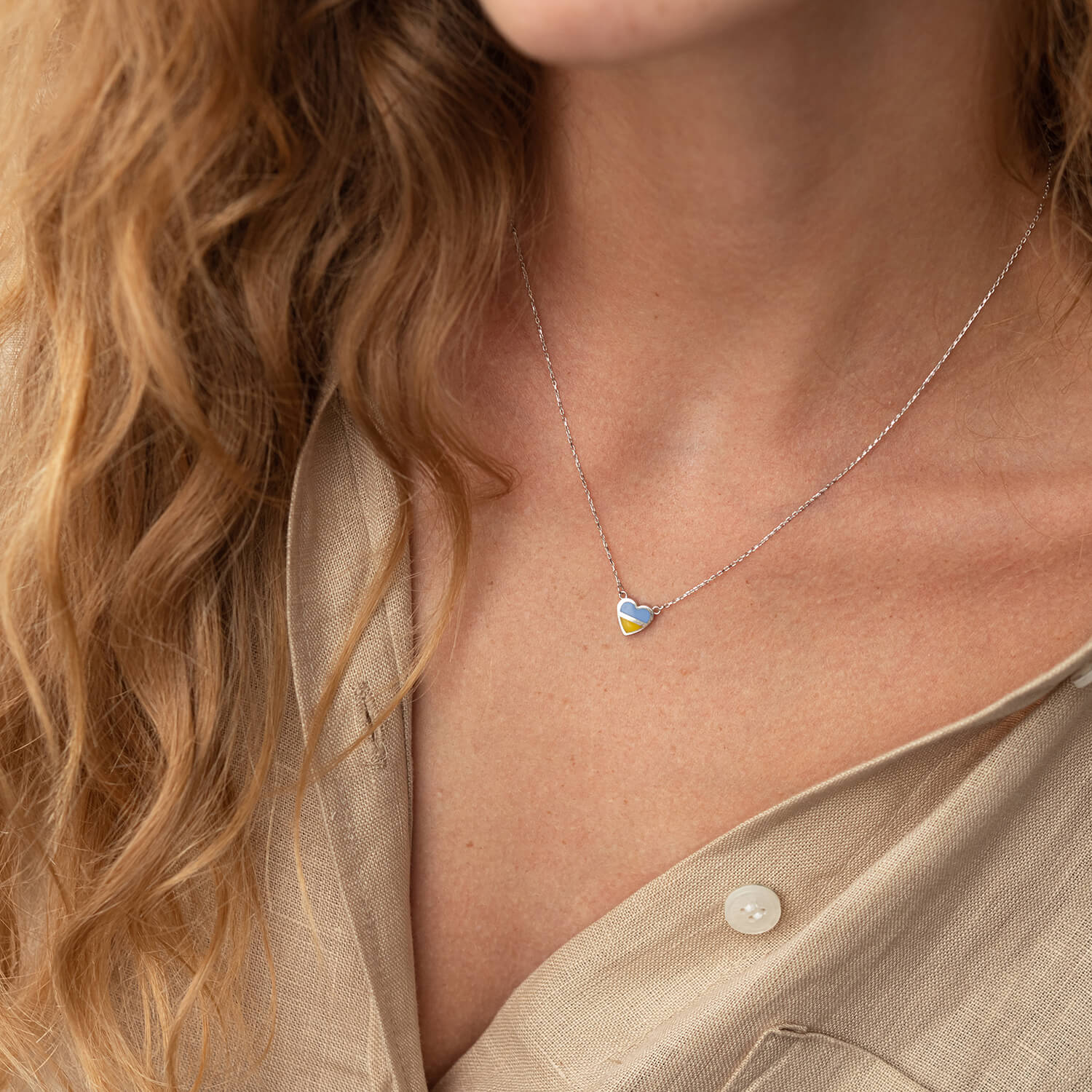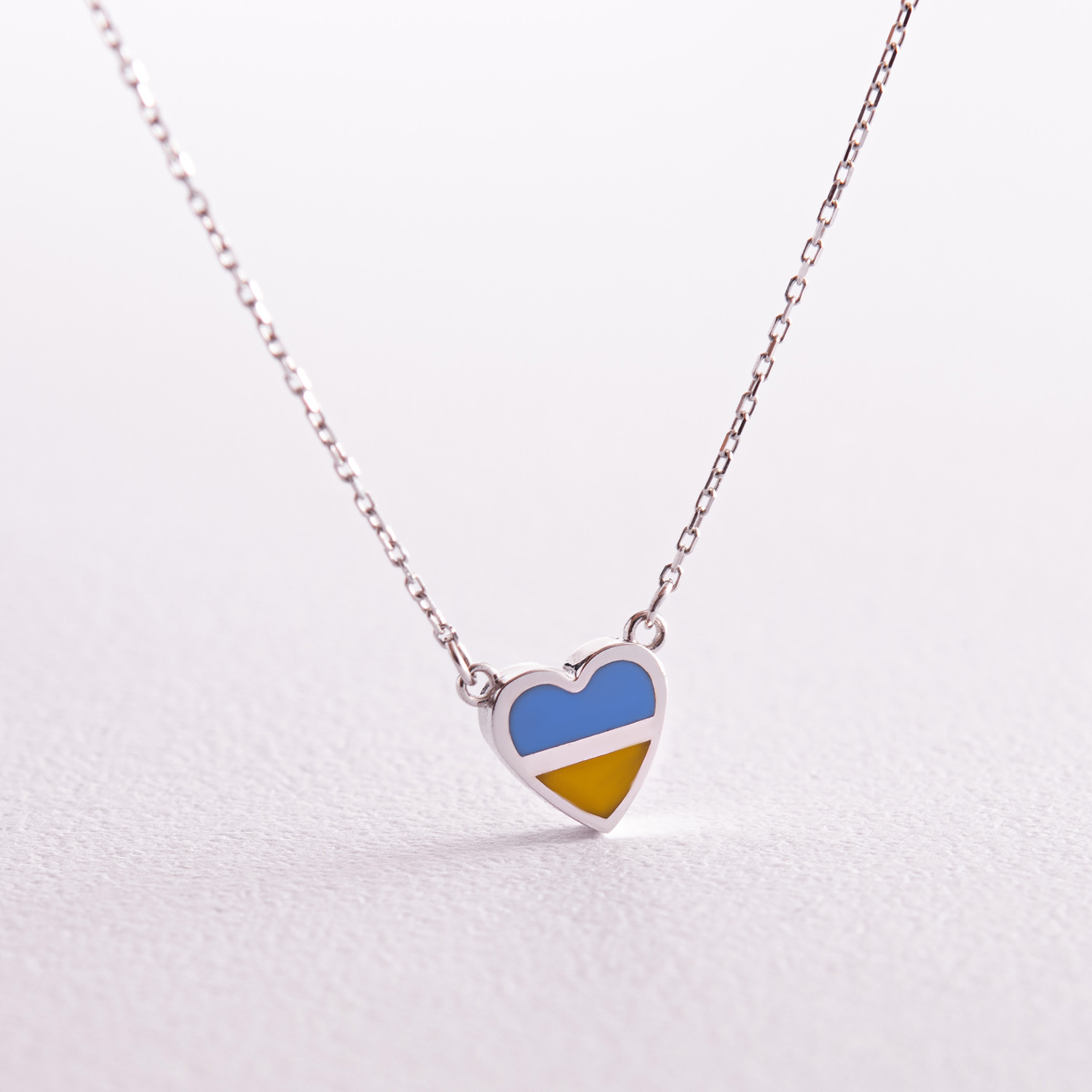 Колье "С Украиной в сердце" в белом золоте (голубая и желтая эмаль) кол02306