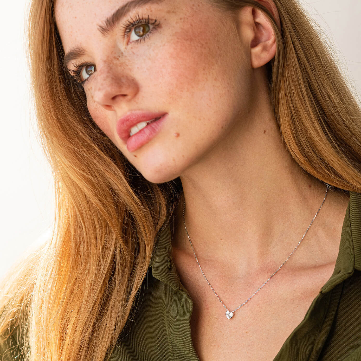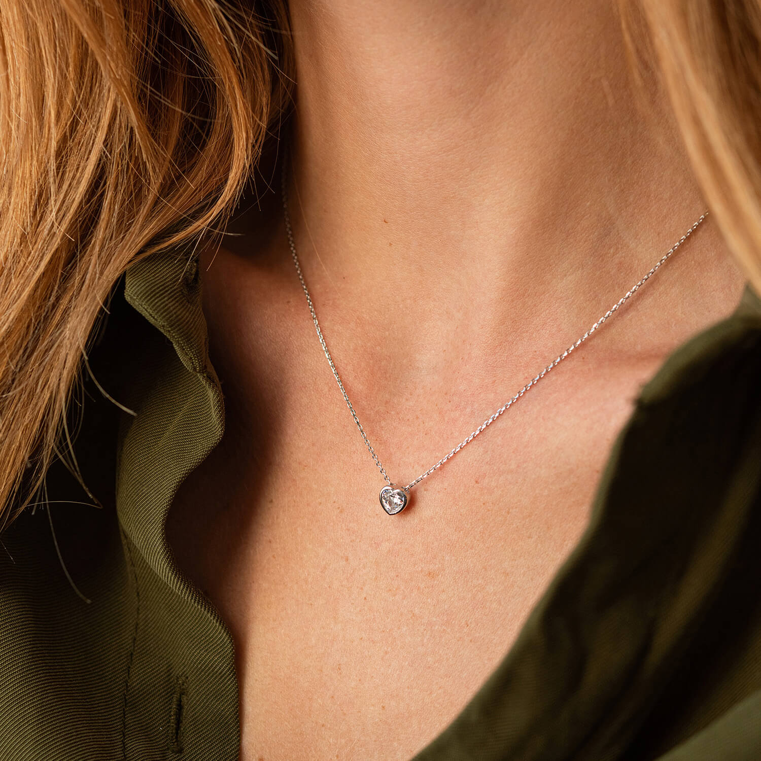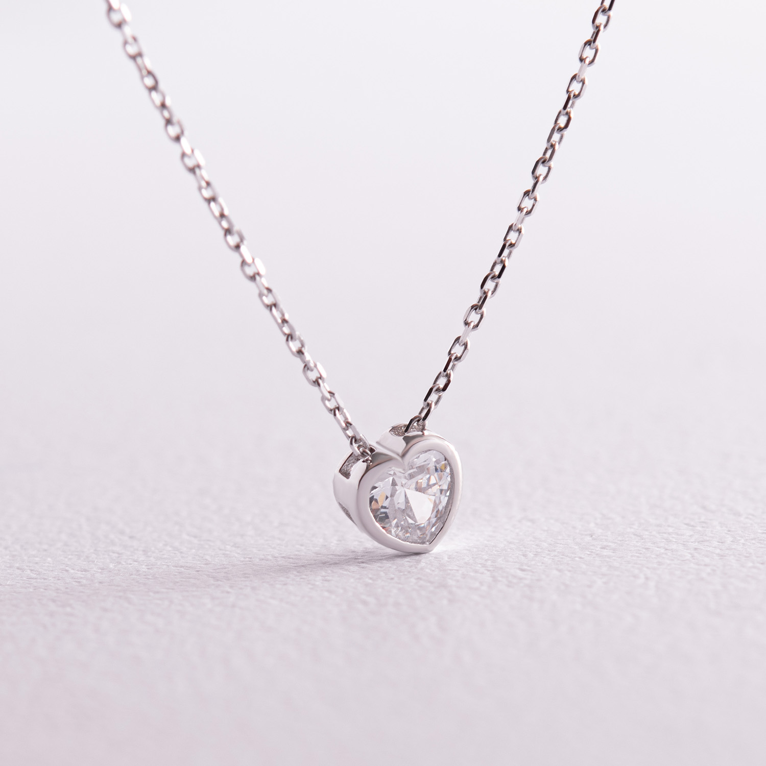 Колье "Сердечко" с фианитом (белое золото) кол02315