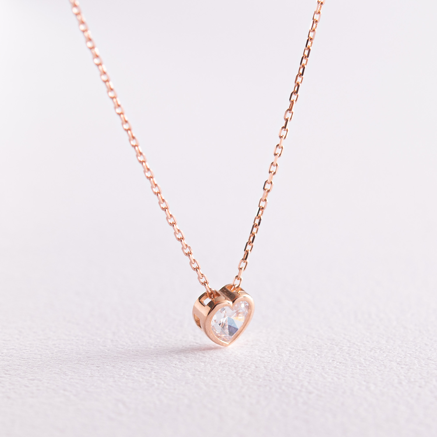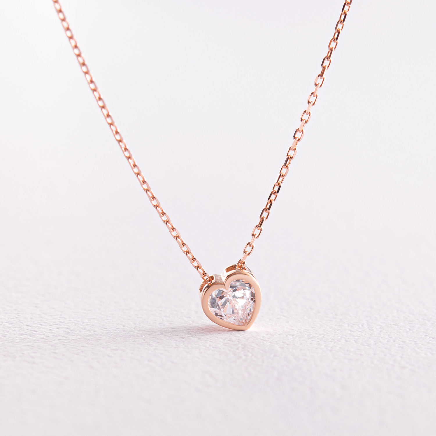 Колье "Сердечко" с фианитом (красное золото) кол02297