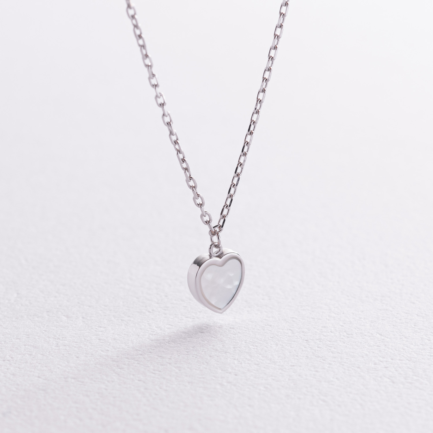 Колье "Сердечко" с перламутром (белое золото) кол02555