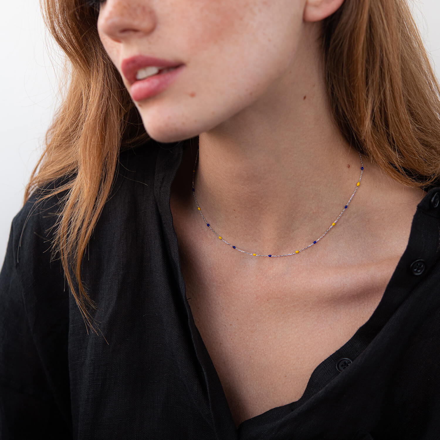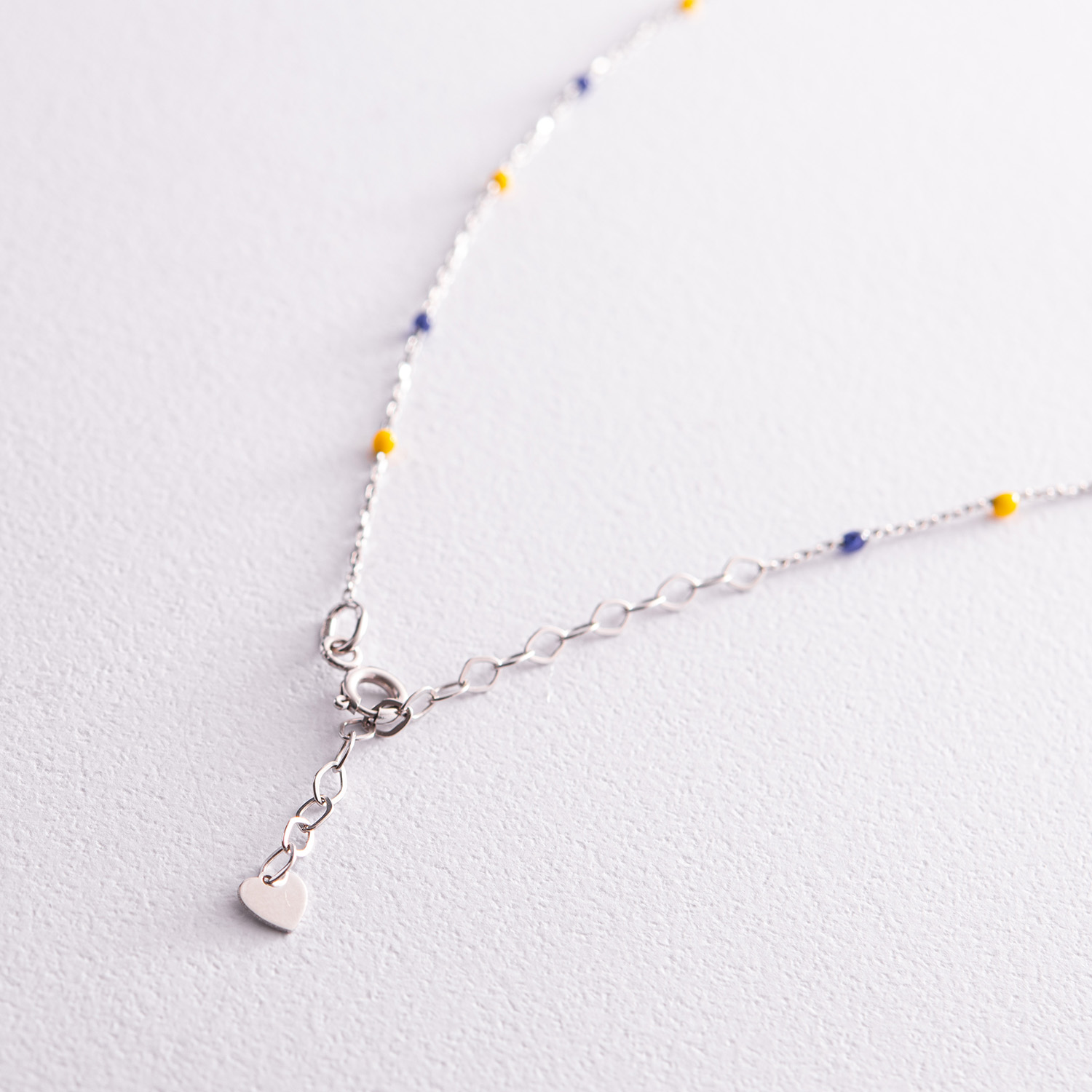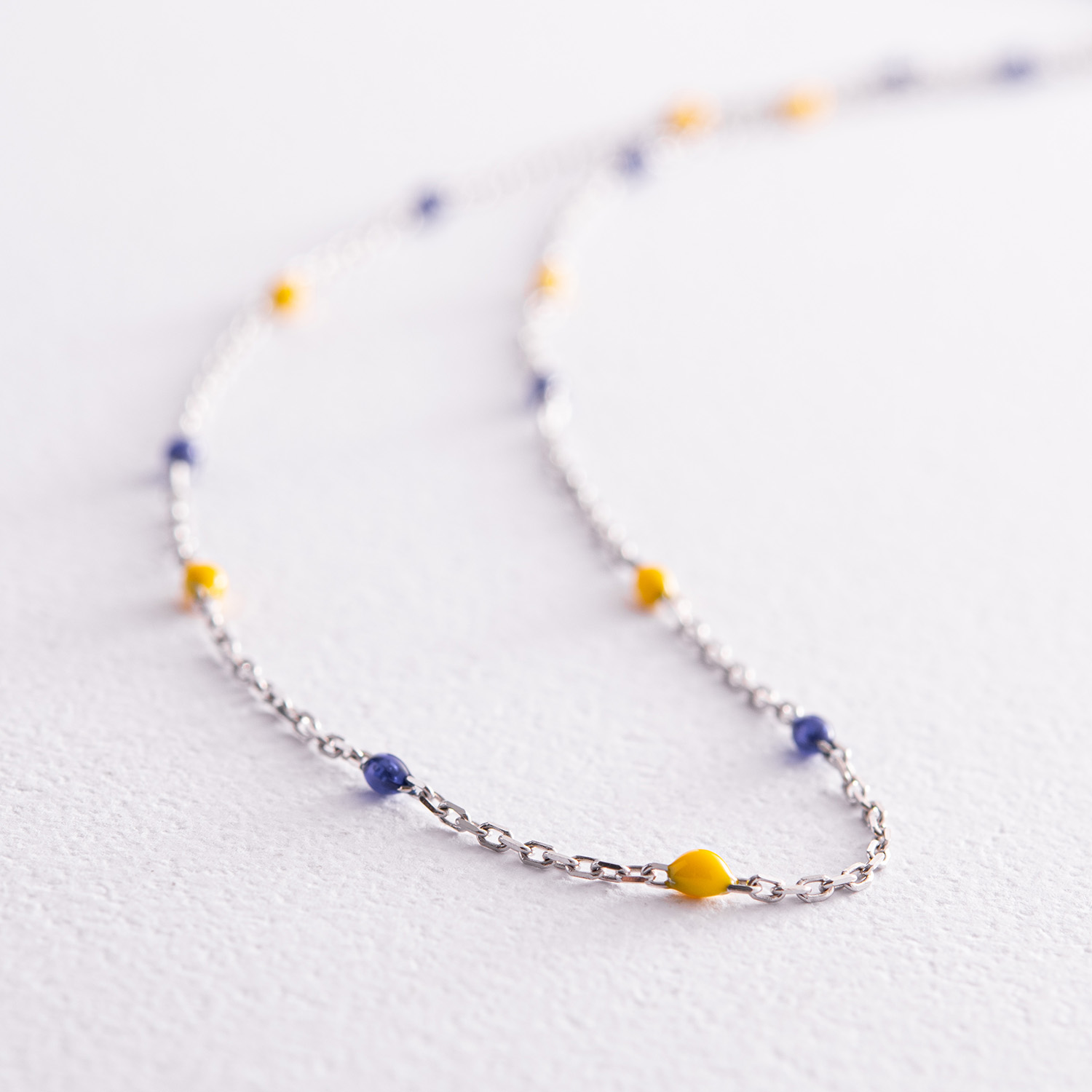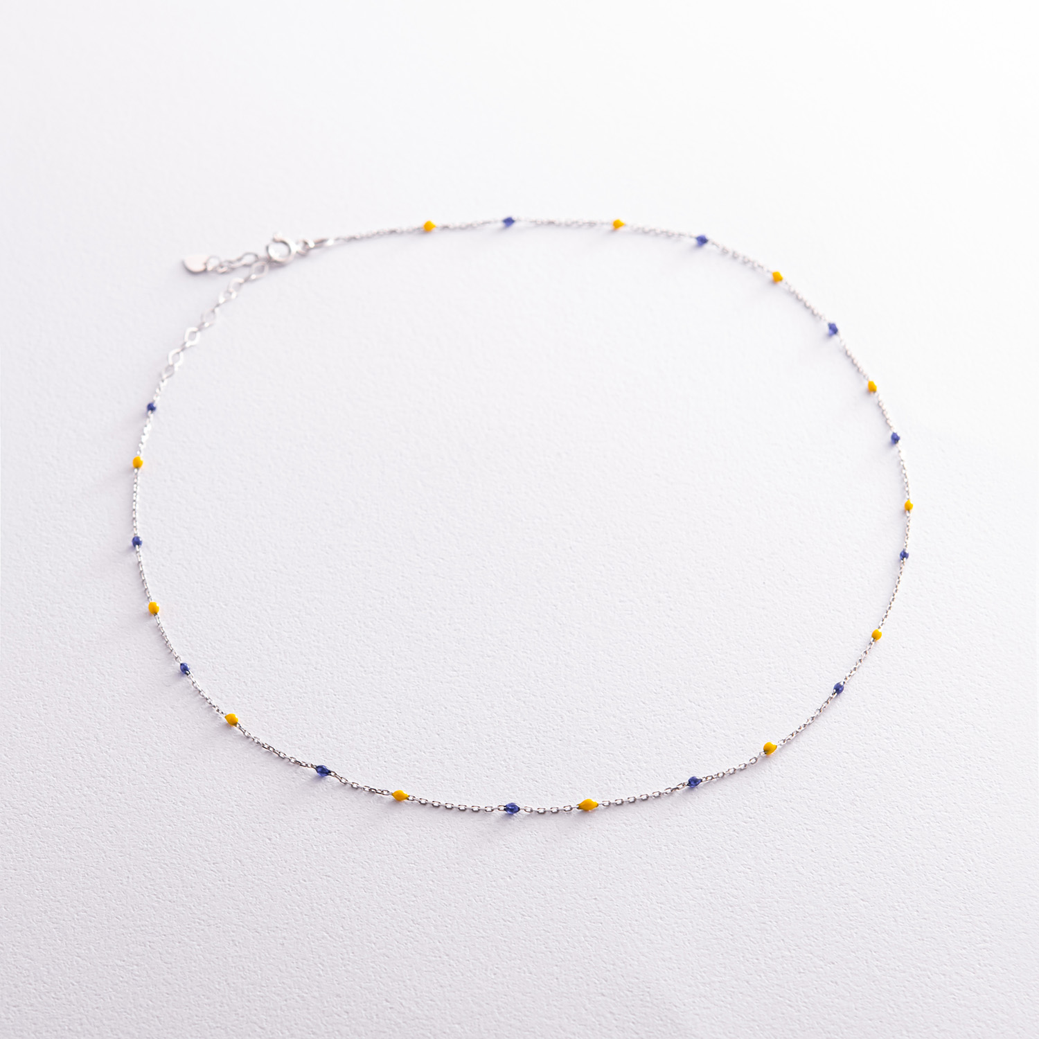 Колье в белом золоте (синяя и желтая эмаль) кол02247