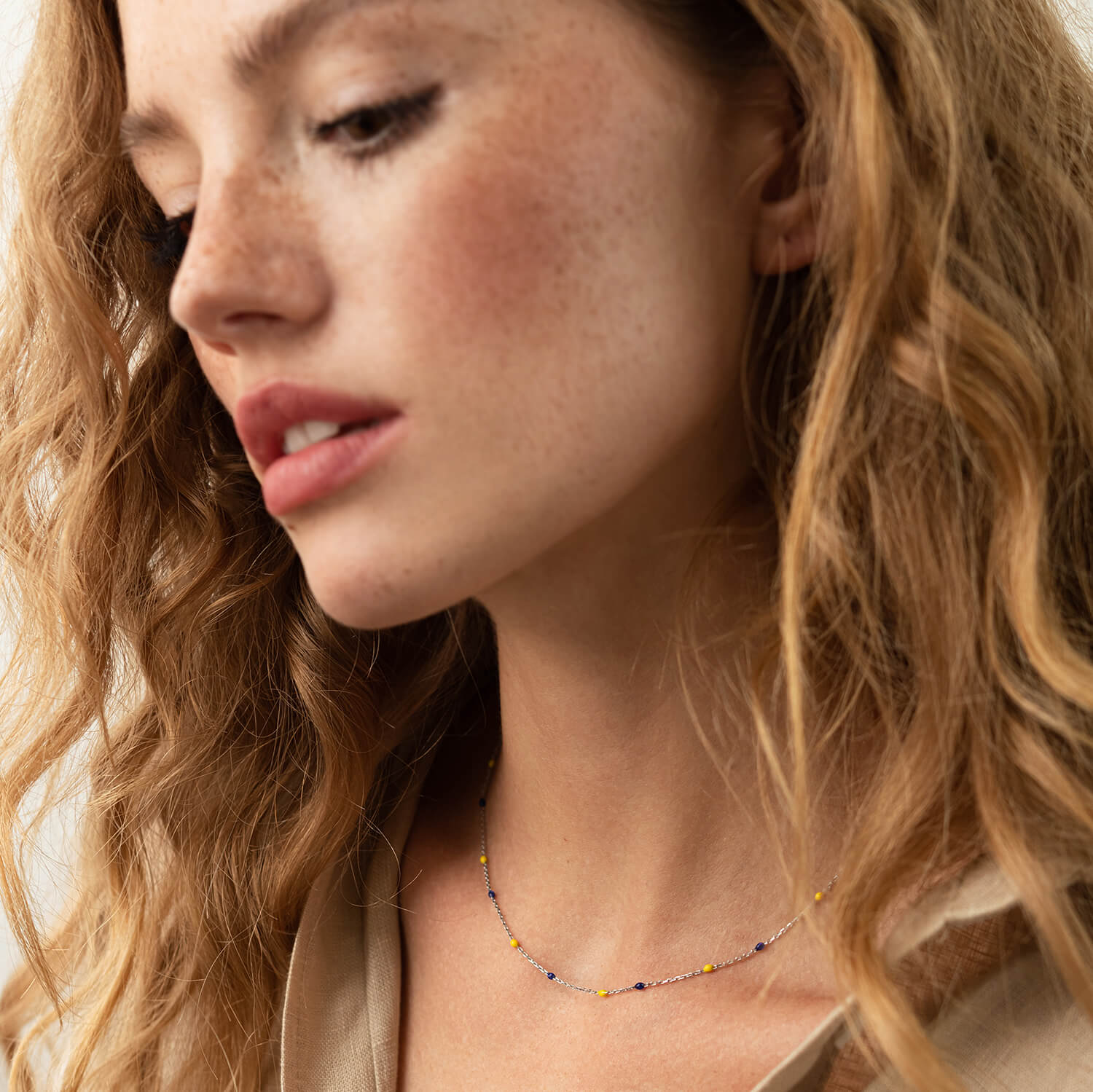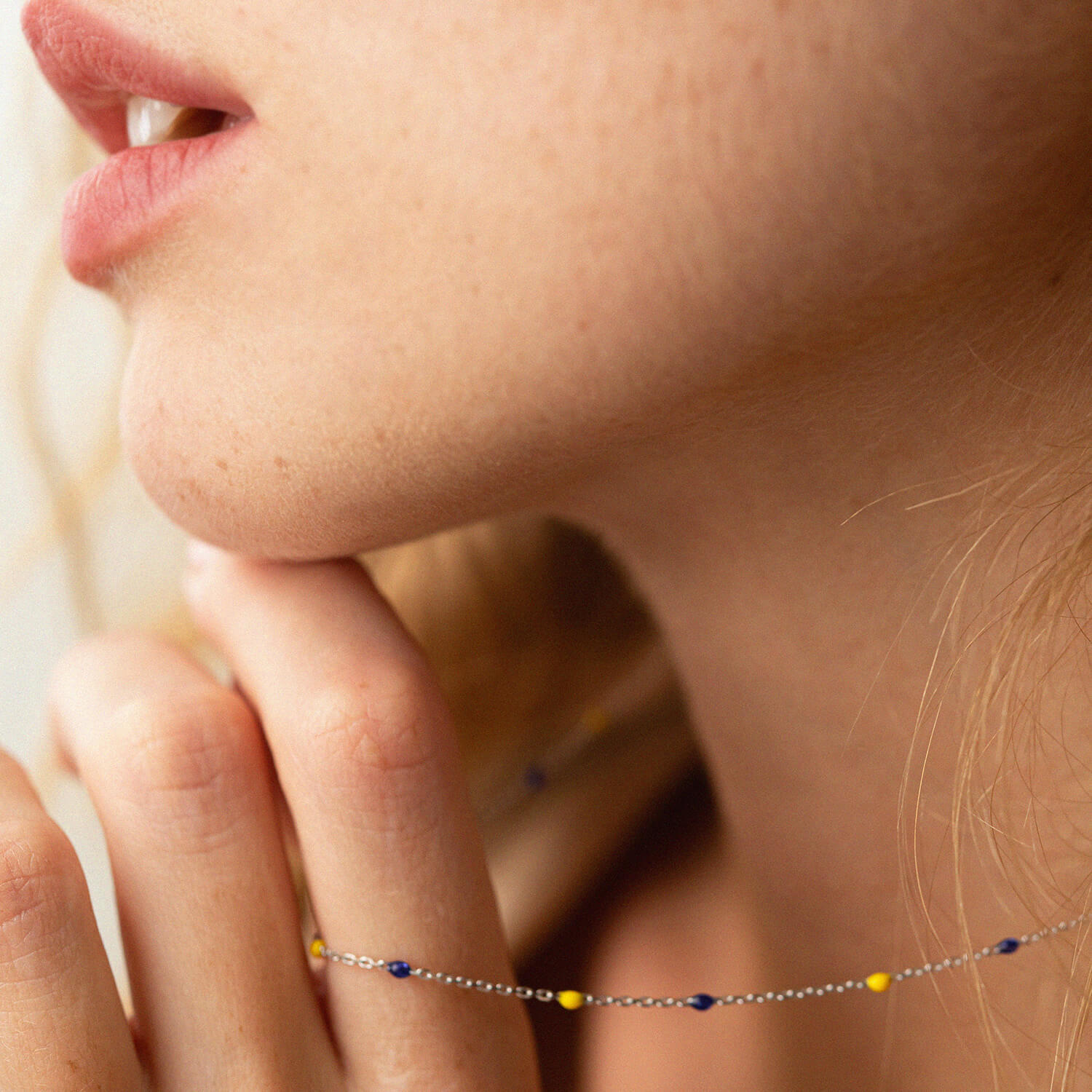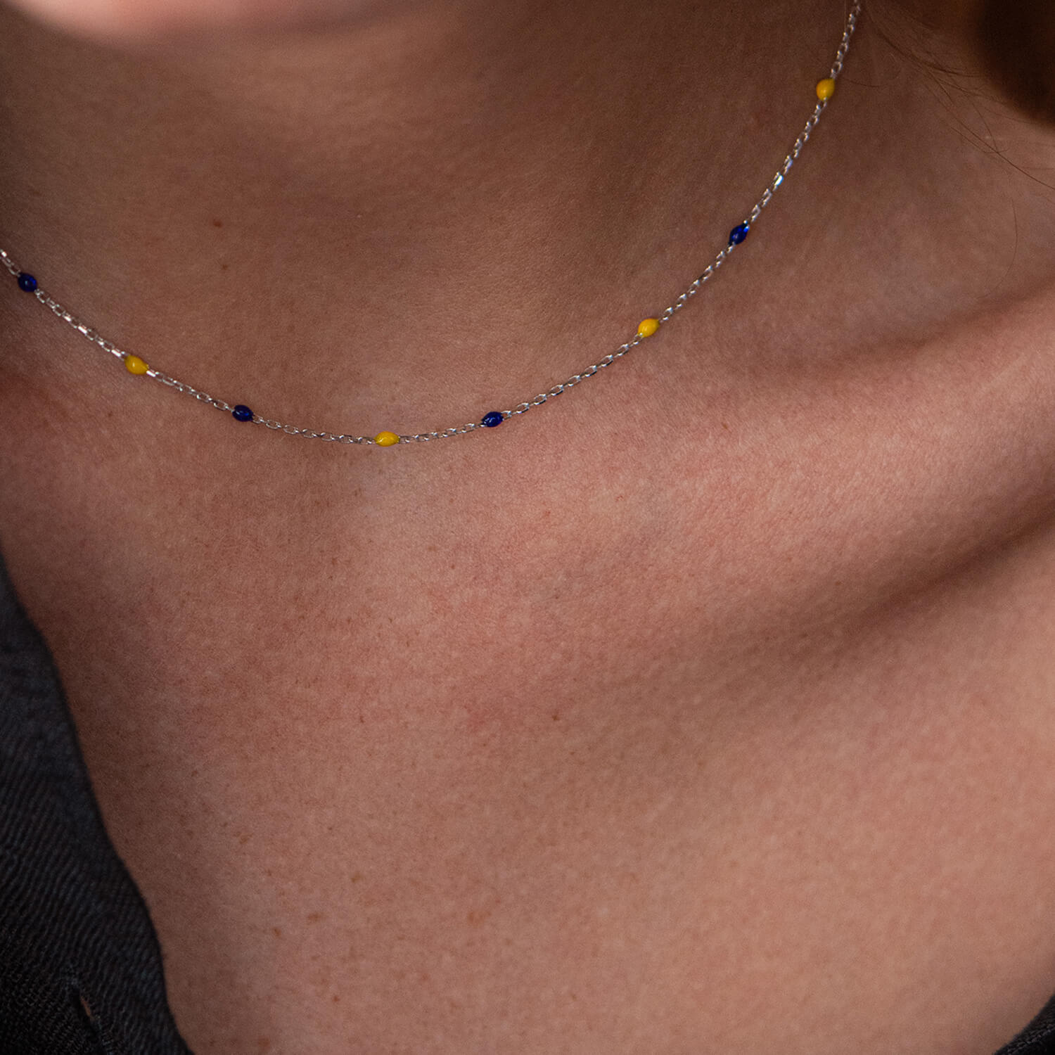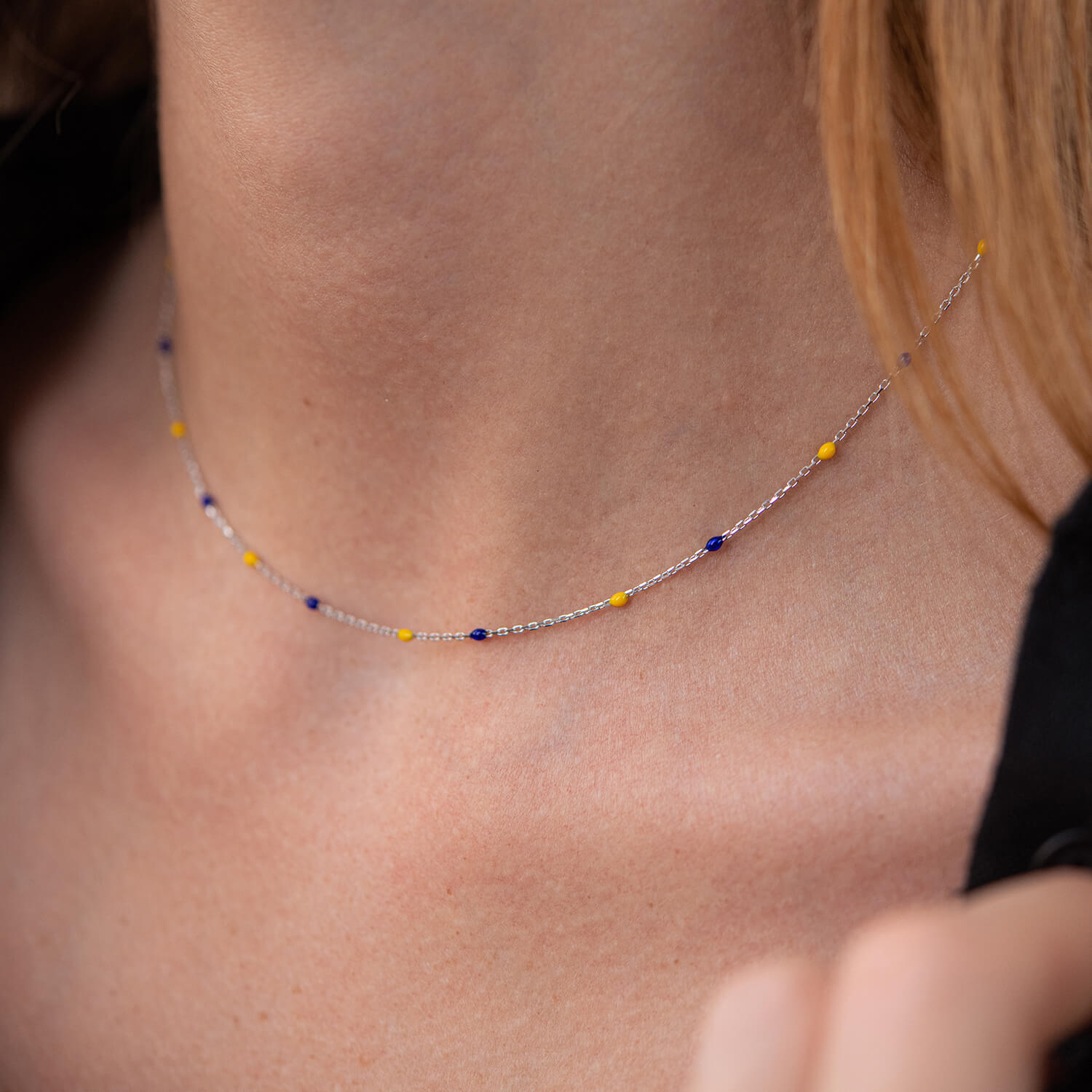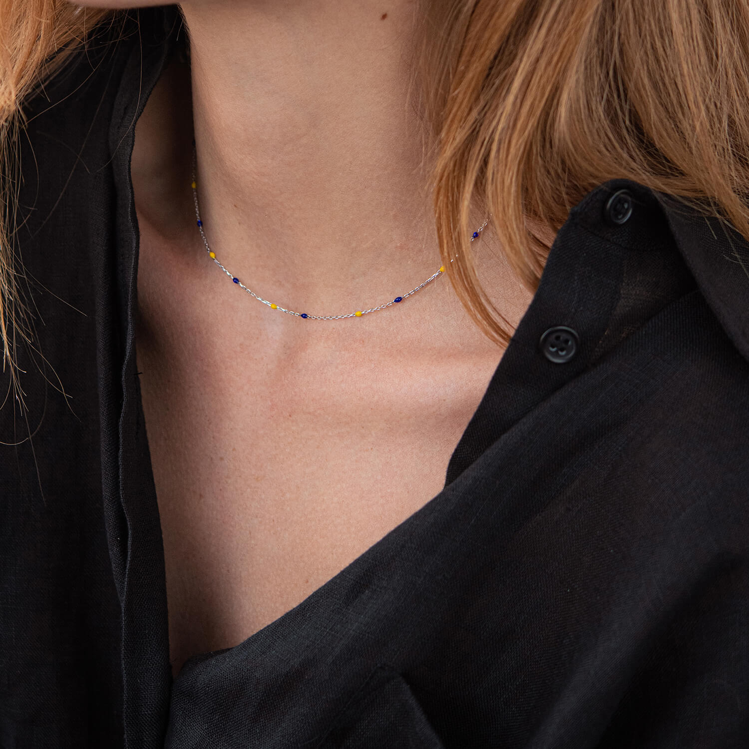 Колье в белом золоте (синяя и желтая эмаль) кол02247