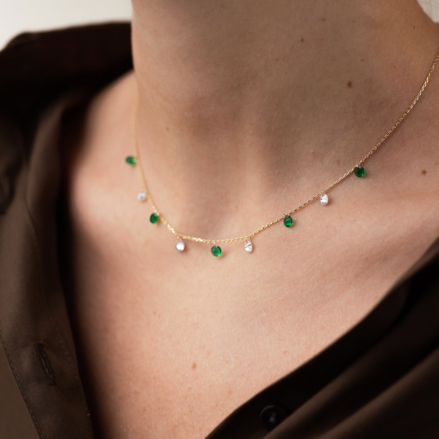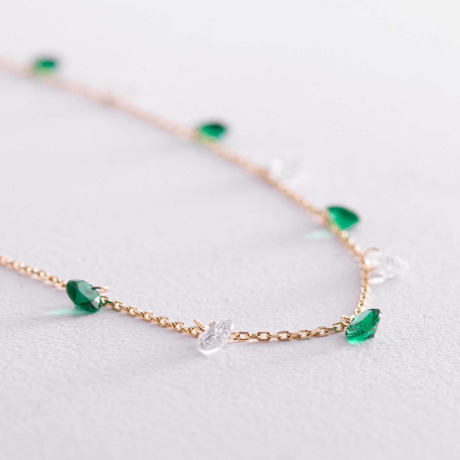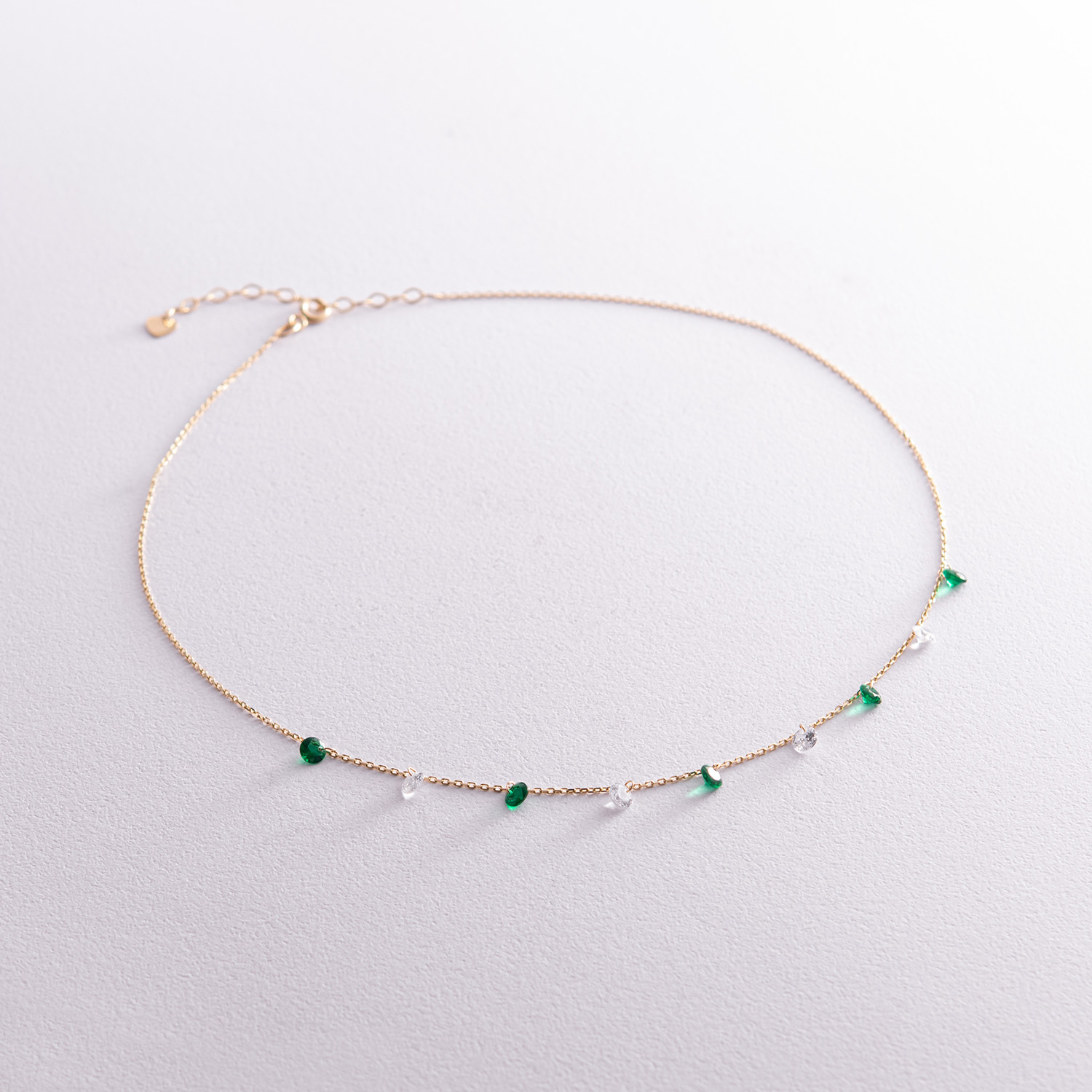 Колье в желтом золоте (зеленые и белые фианиты) кол02308