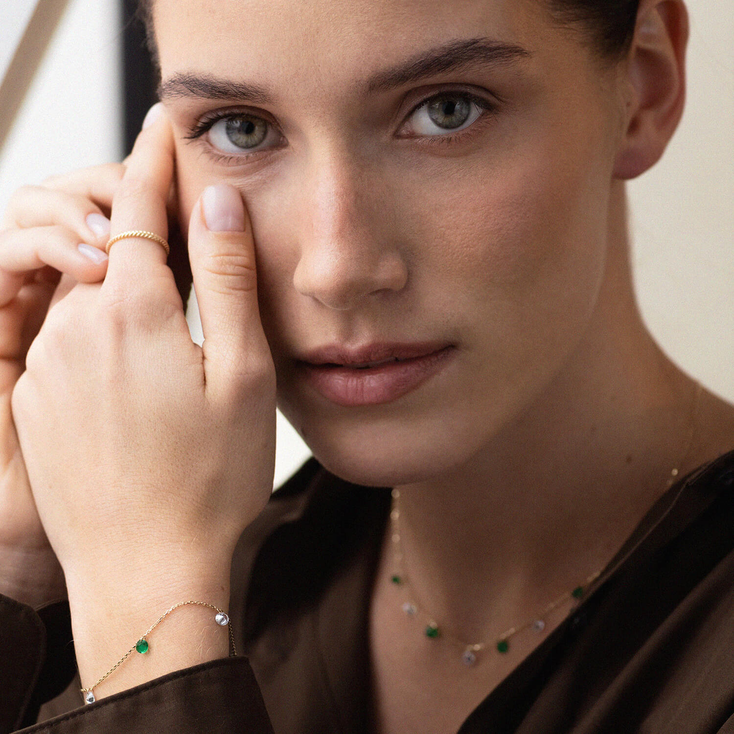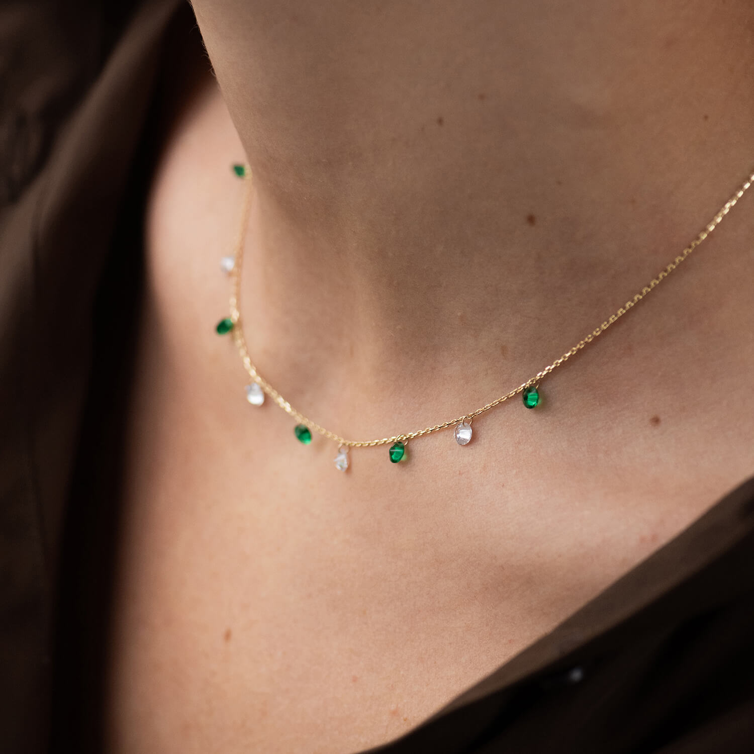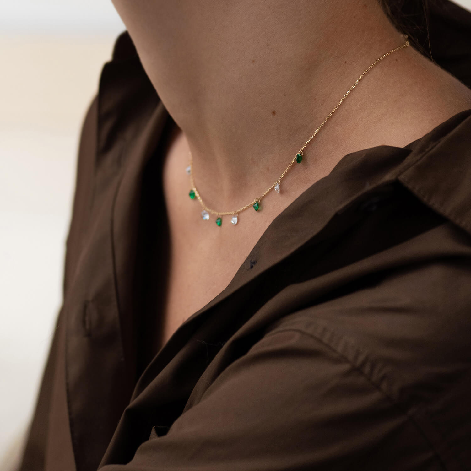 Колье в желтом золоте (зеленые и белые фианиты) кол02308