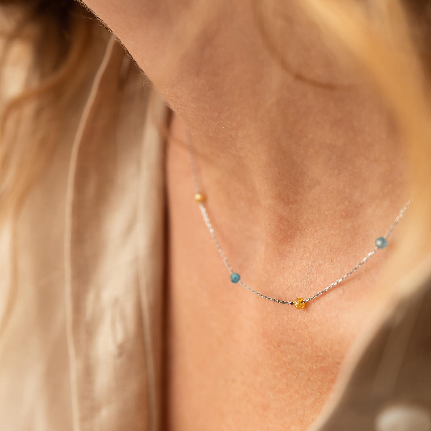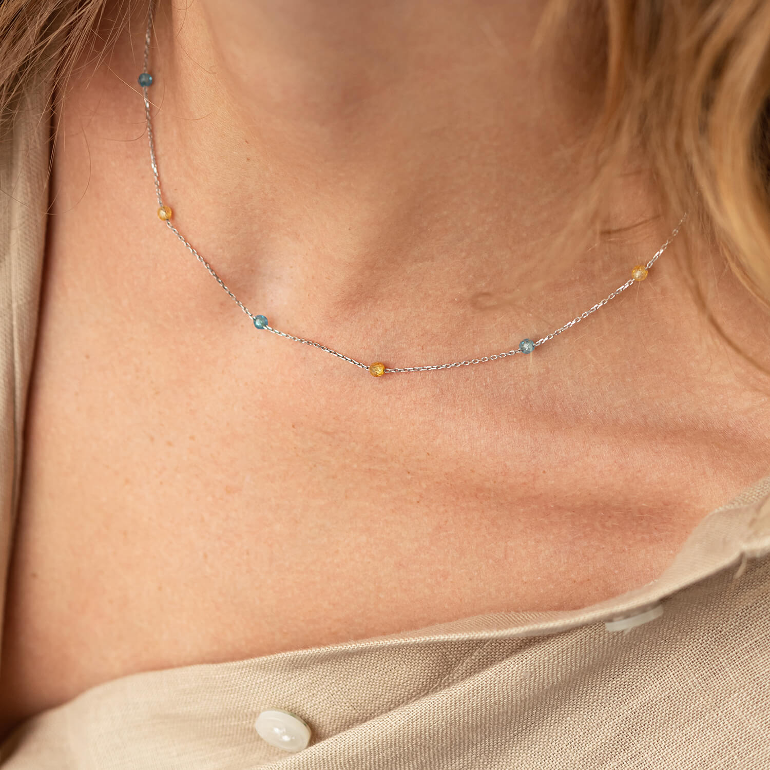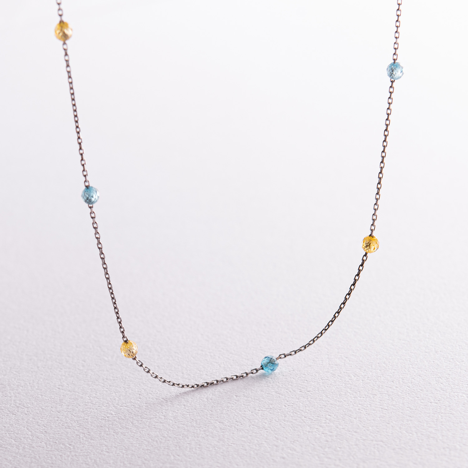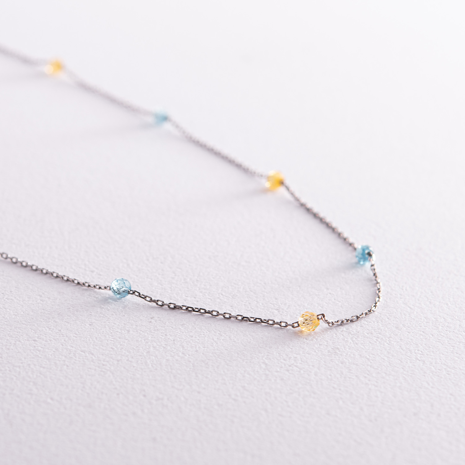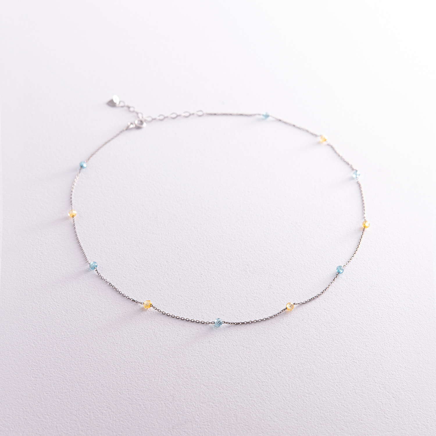 Колье "Вільна" в белом золоте (голубые и желтые фианиты) кол02292
