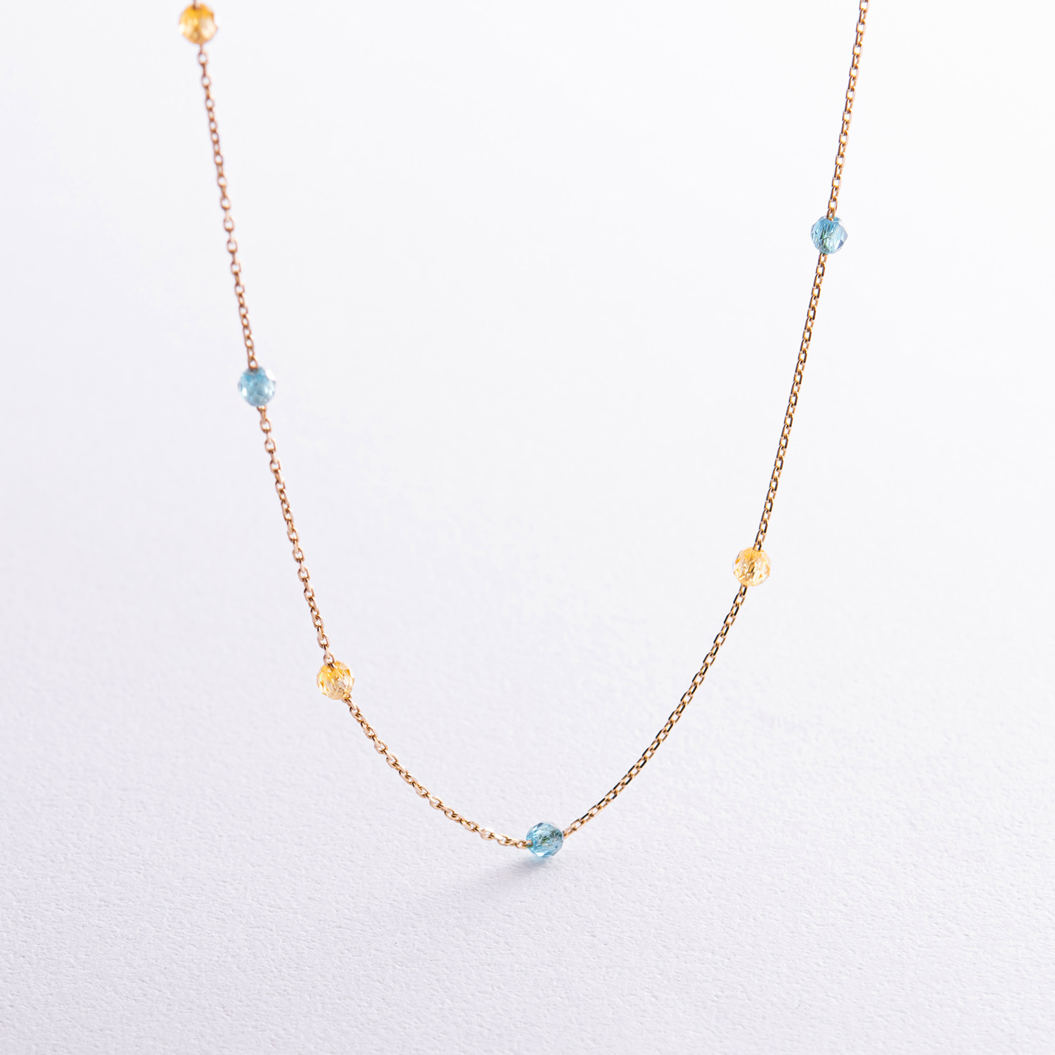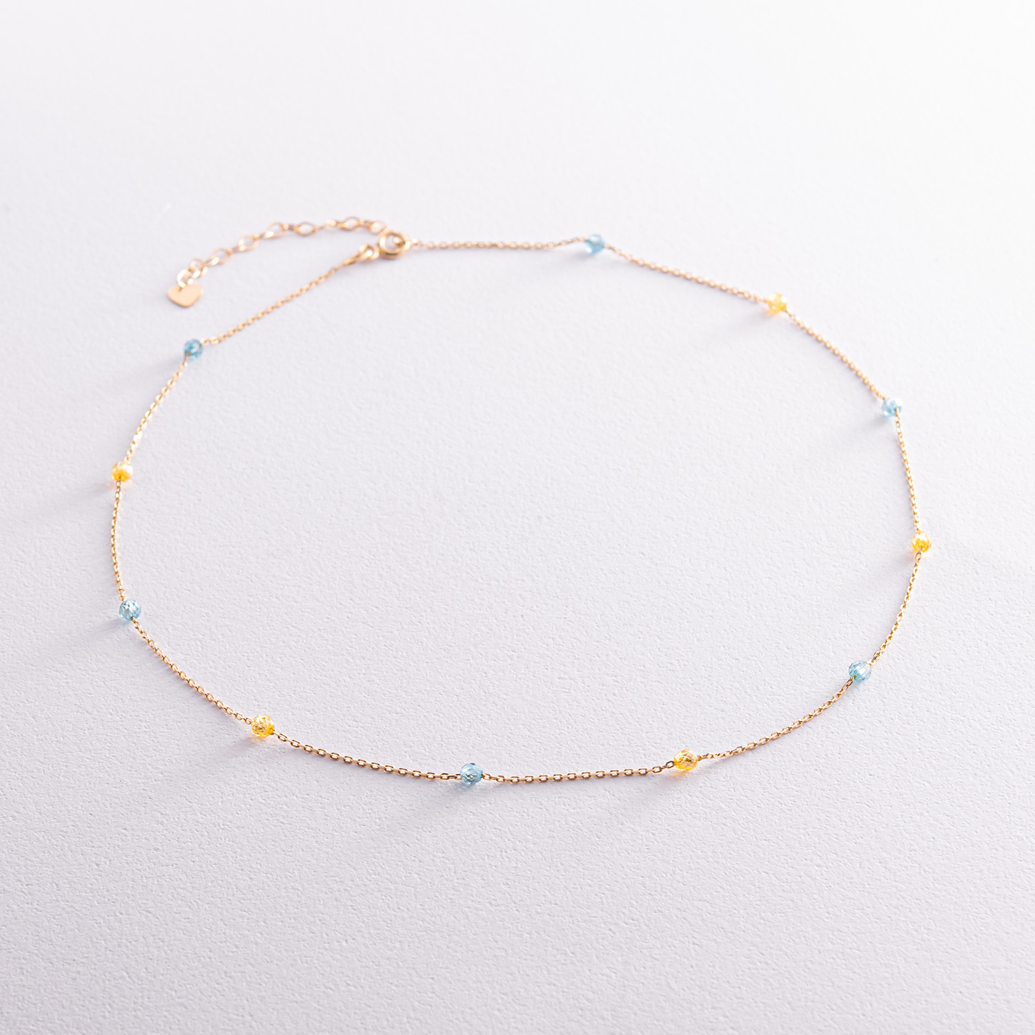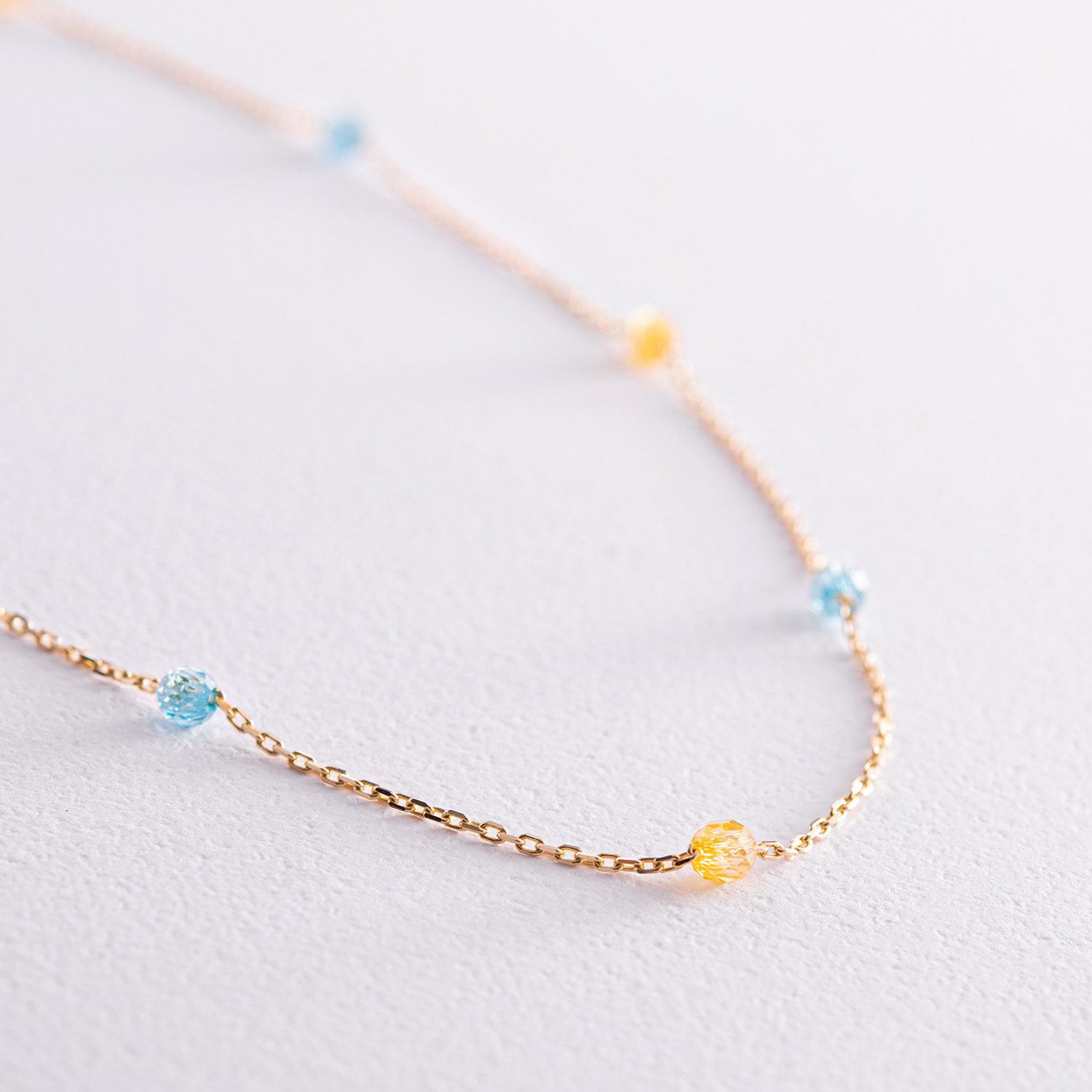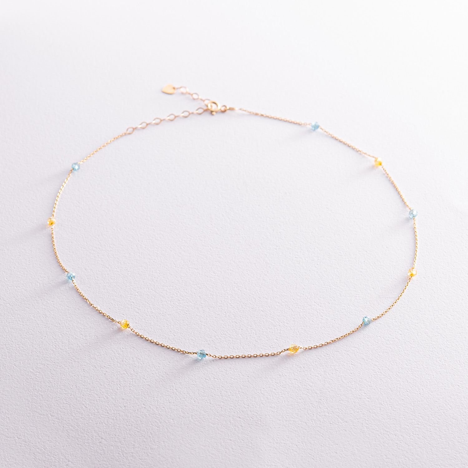 Колье "Вільна" в желтом золоте (голубые и желтые фианиты) кол02246