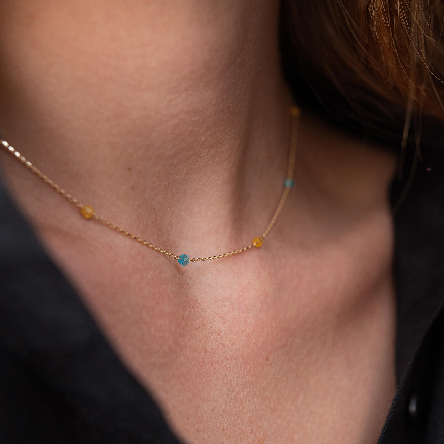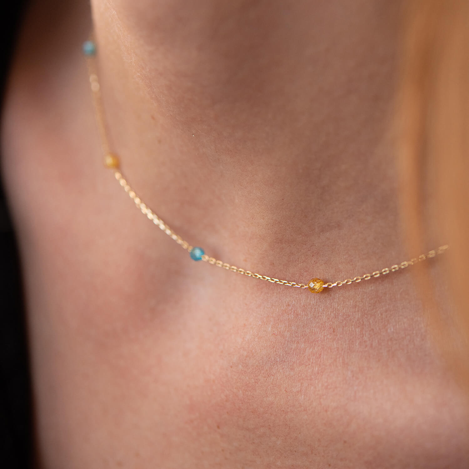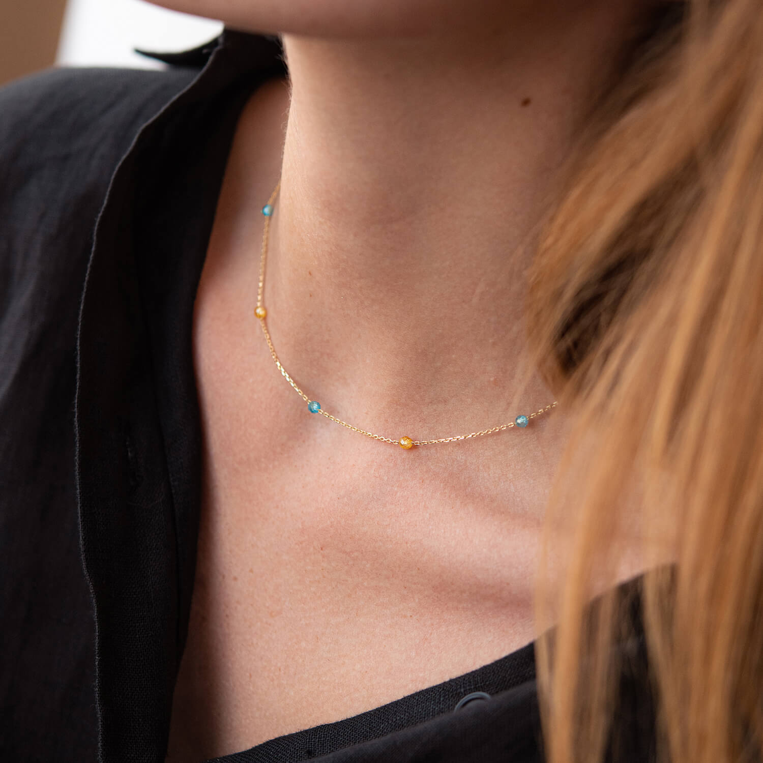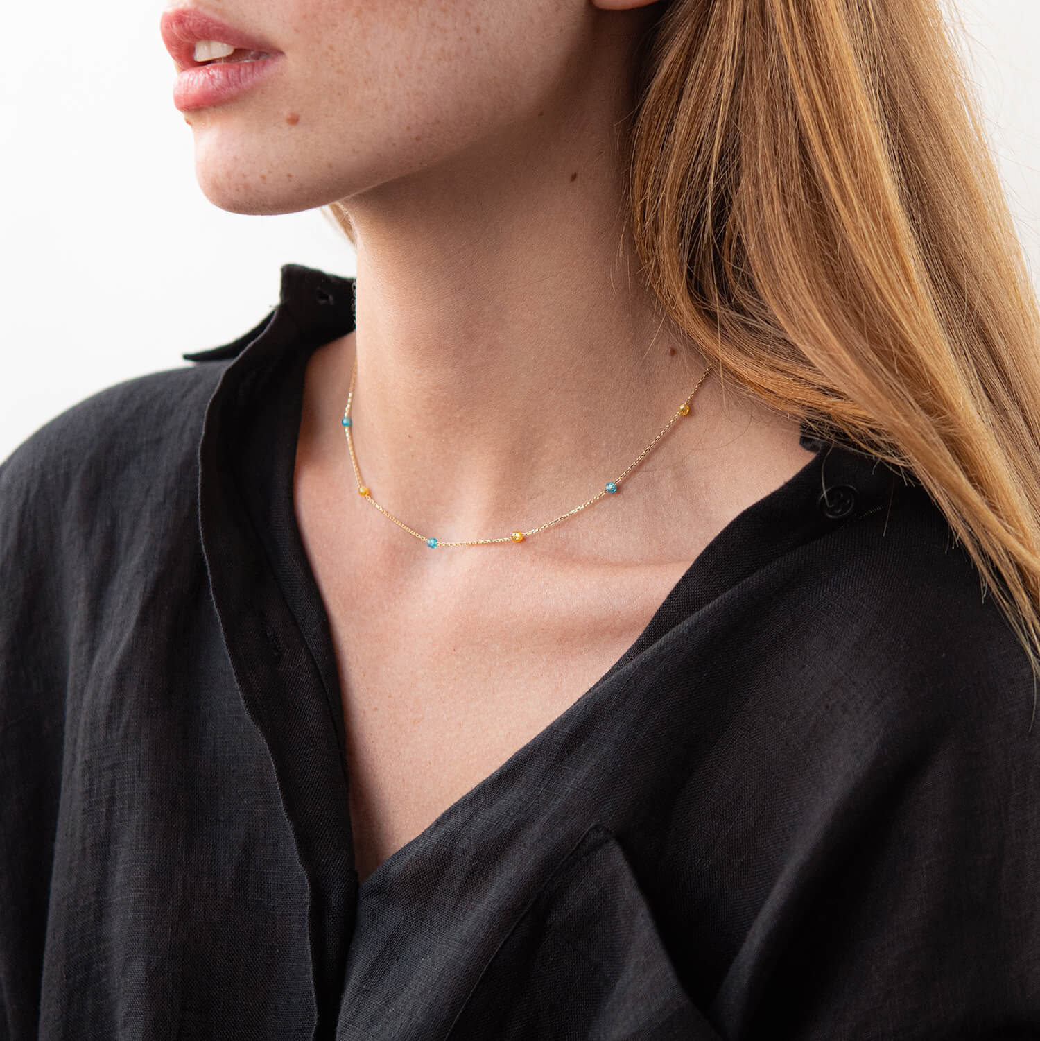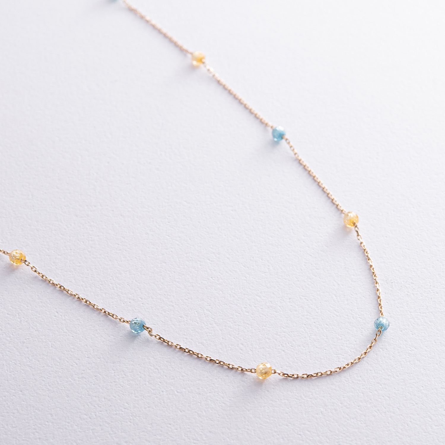 Колье "Вільна" в желтом золоте (голубые и желтые фианиты) кол02246
