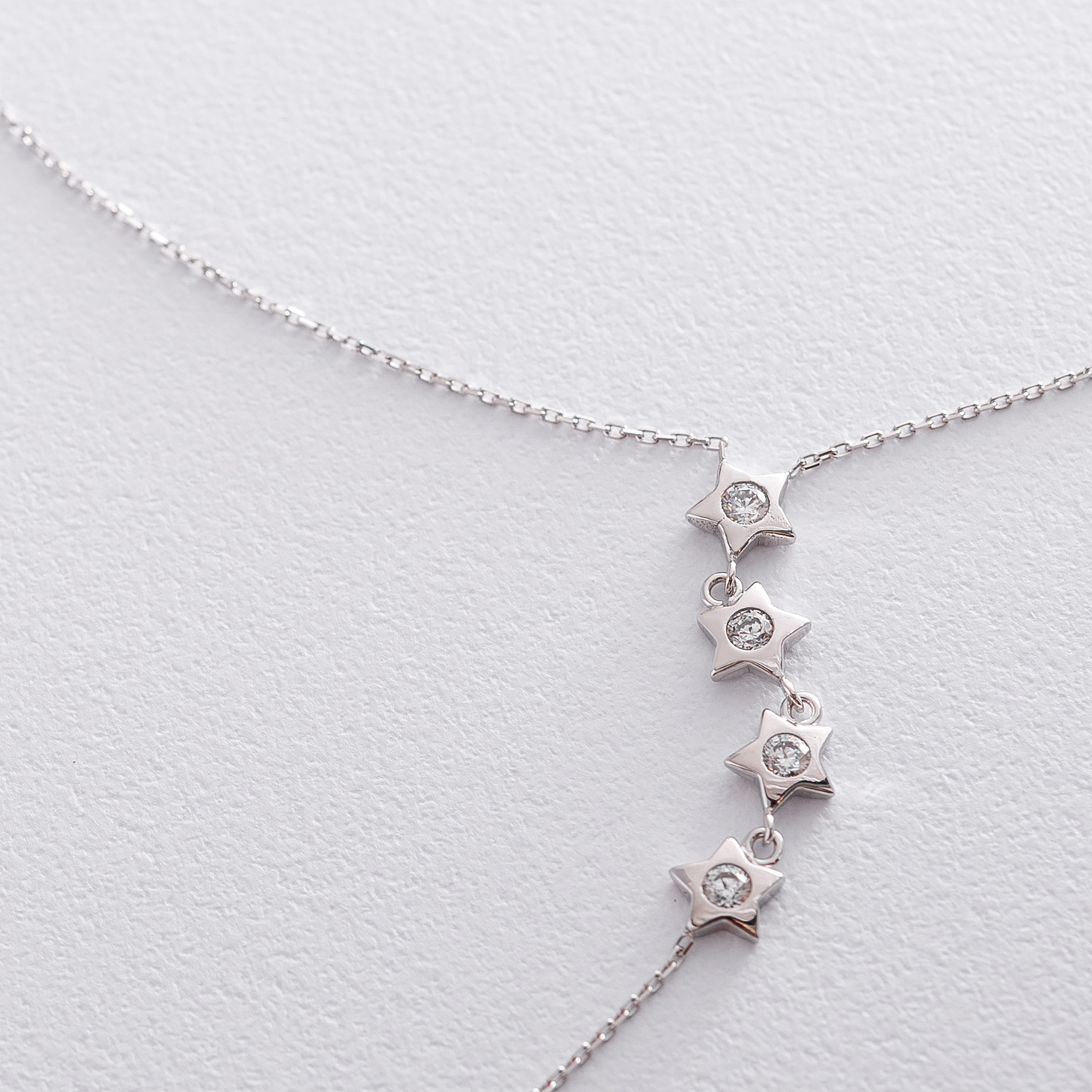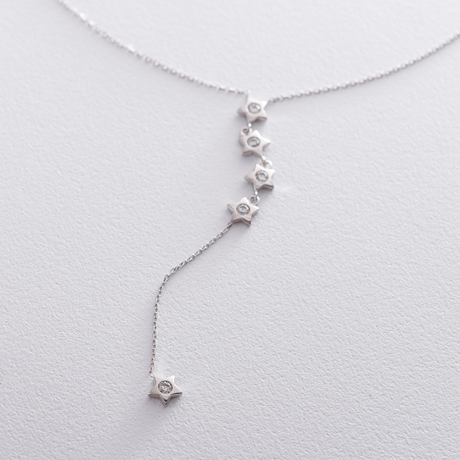 Колье "Звездочки" из белого золота с фианитами кол01516