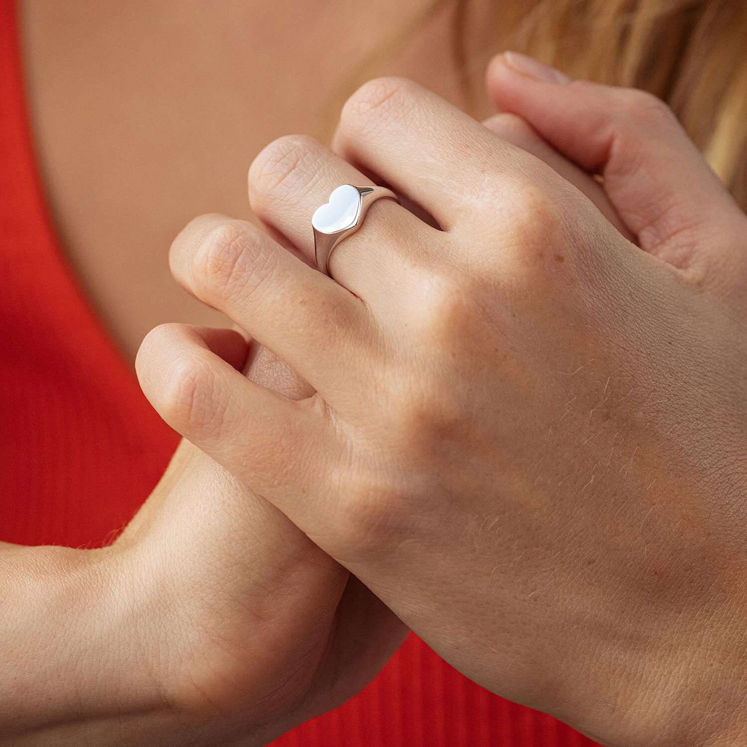 Кольцо "Сердечко" в белом золоте (возможна гравировка) к07572