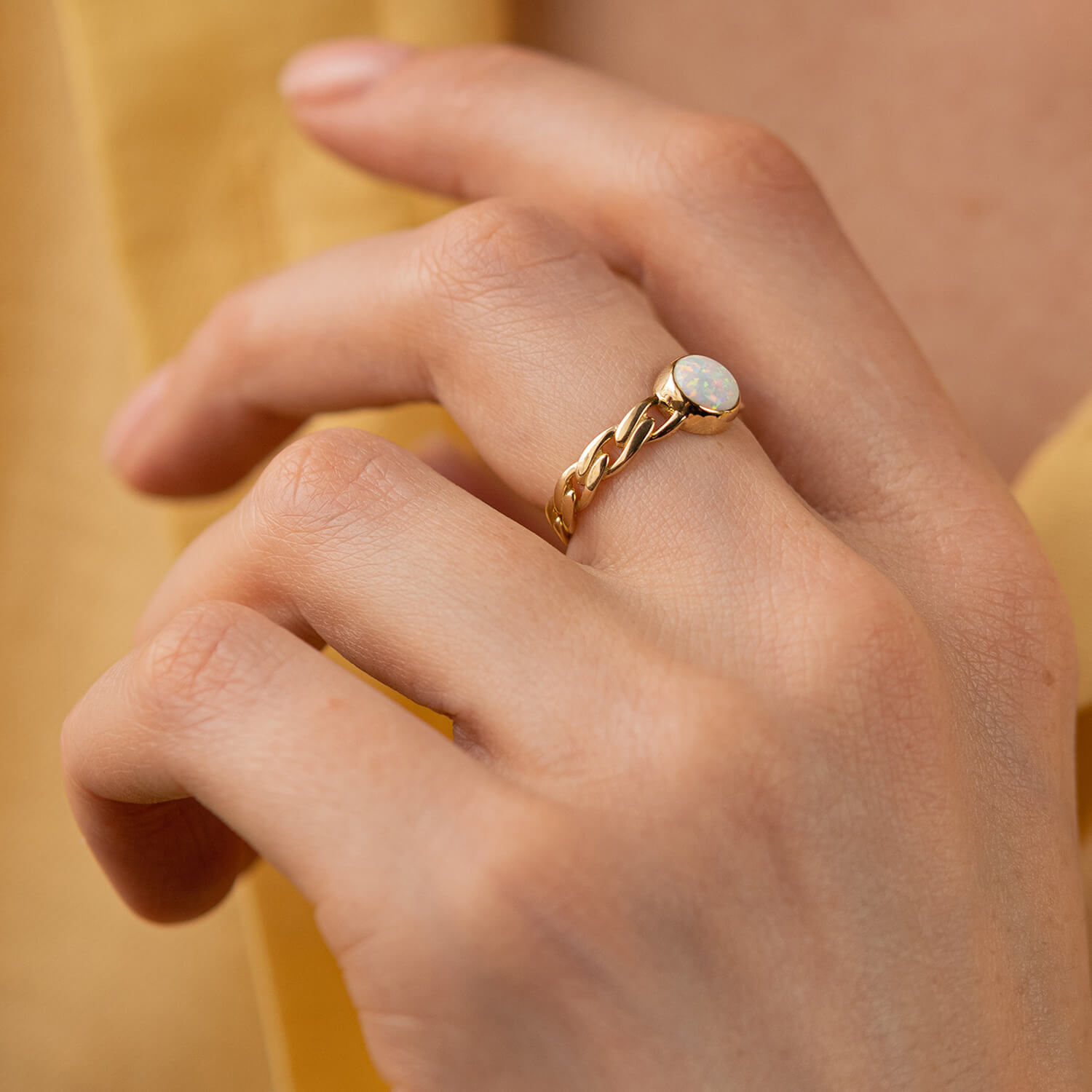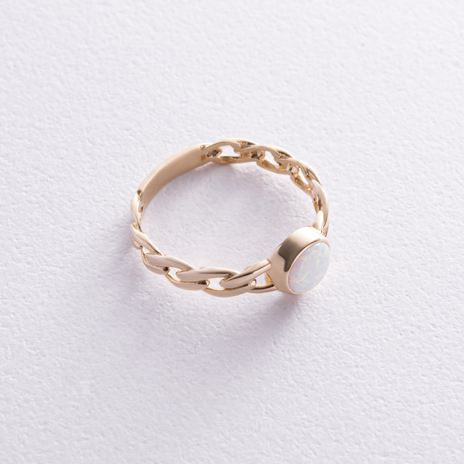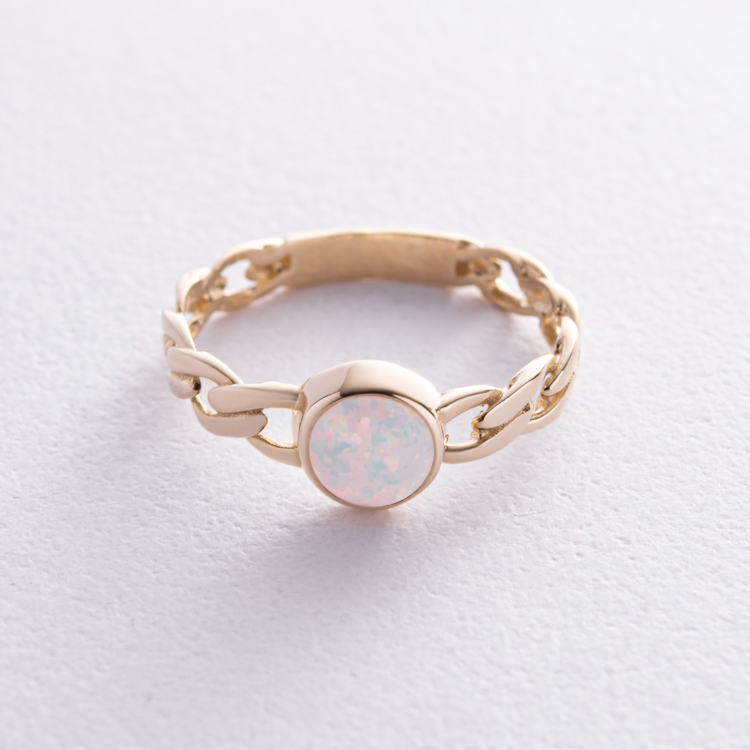 Кольцо "Цепочка" с синт. опалом (желтое золото) к07464