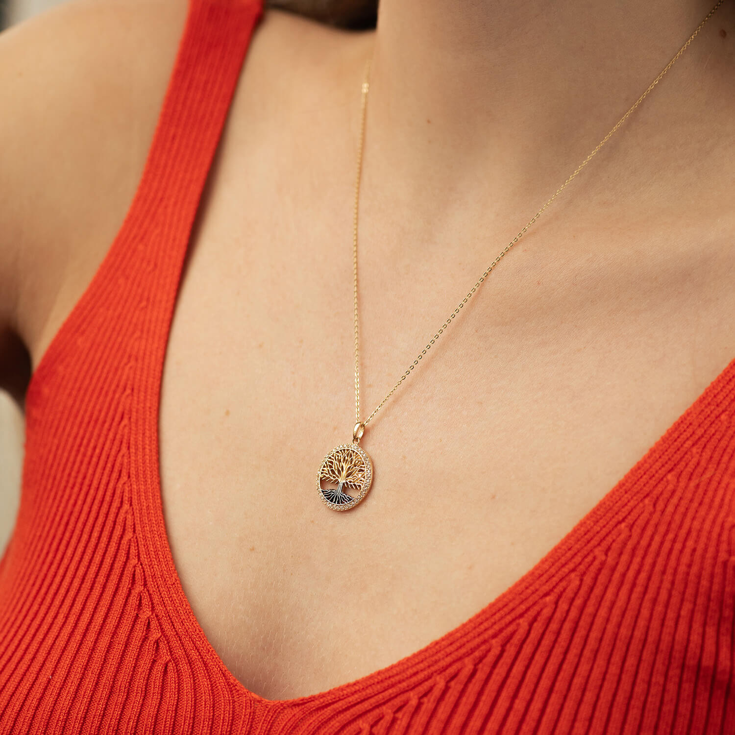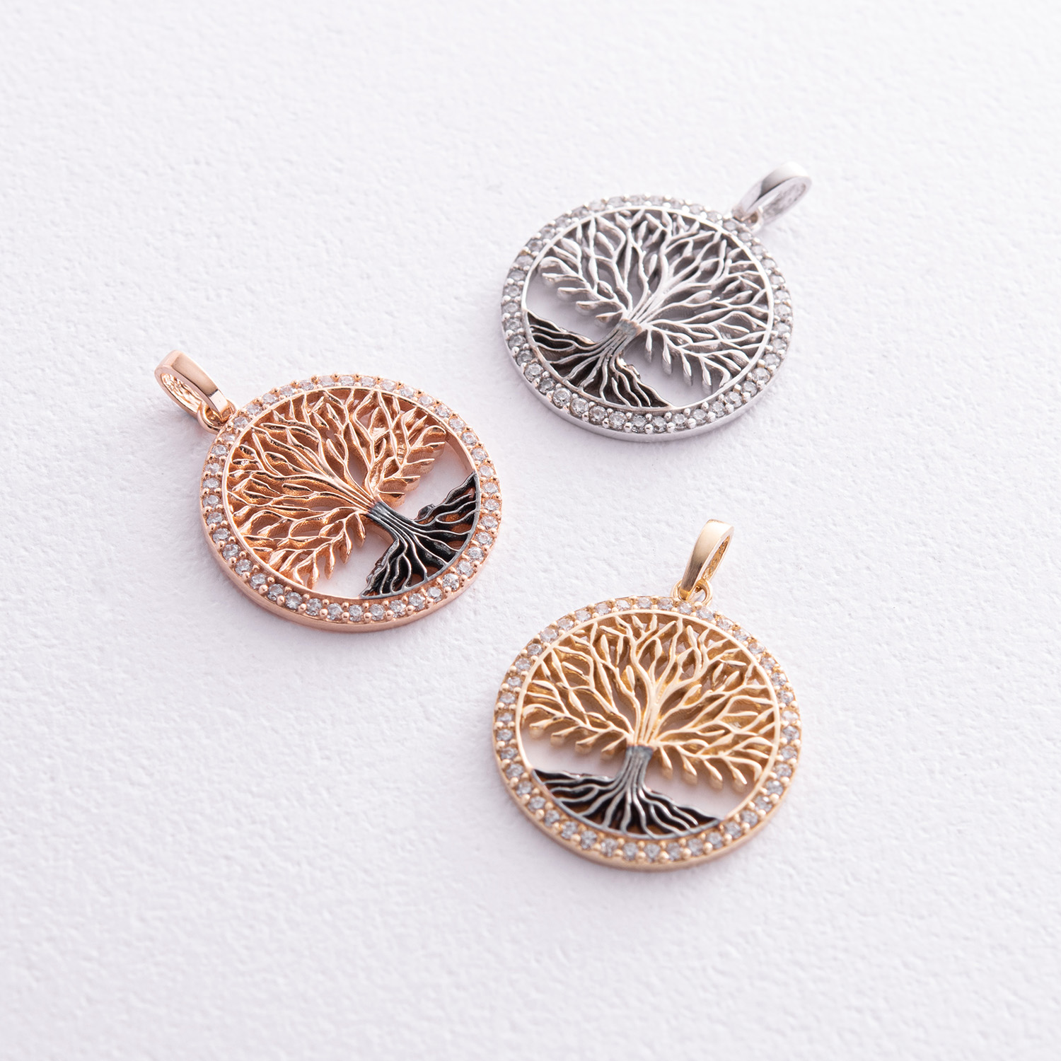 Кулон "Древо жизни" с фианитами (желтое золото) п03805