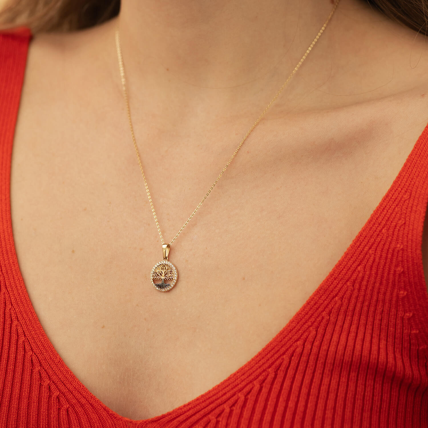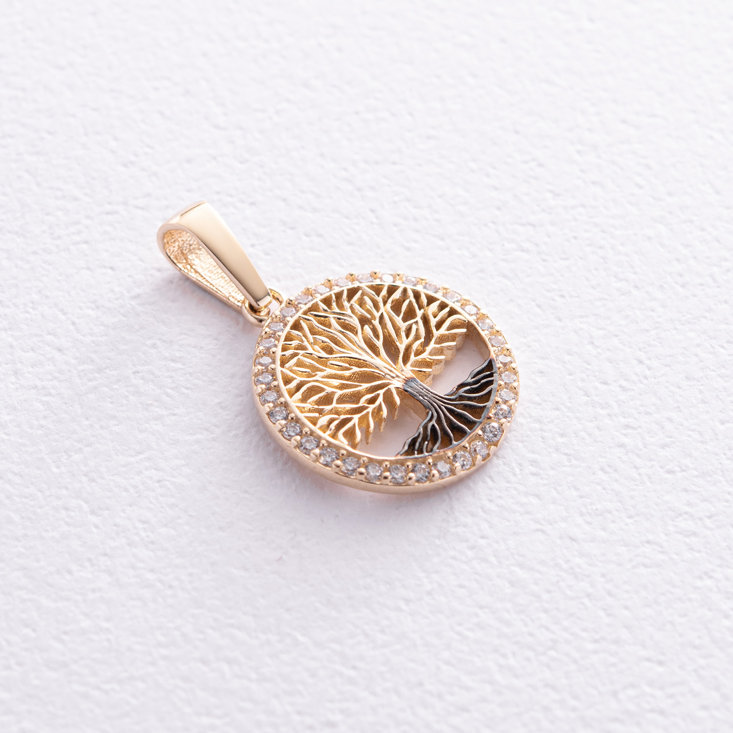 Кулон "Древо жизни" с фианитами (желтое золото) п03821