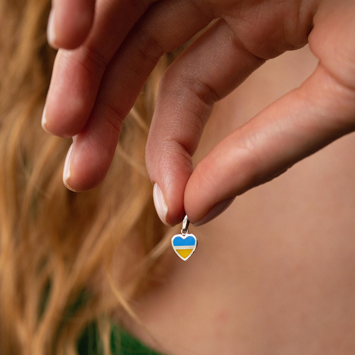 Кулон "С Украиной в сердце" в белом золоте (голубая и желтая эмаль) п03741