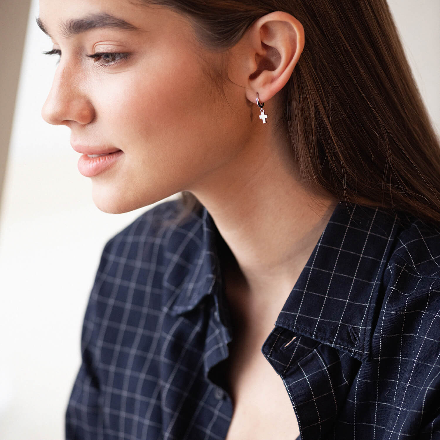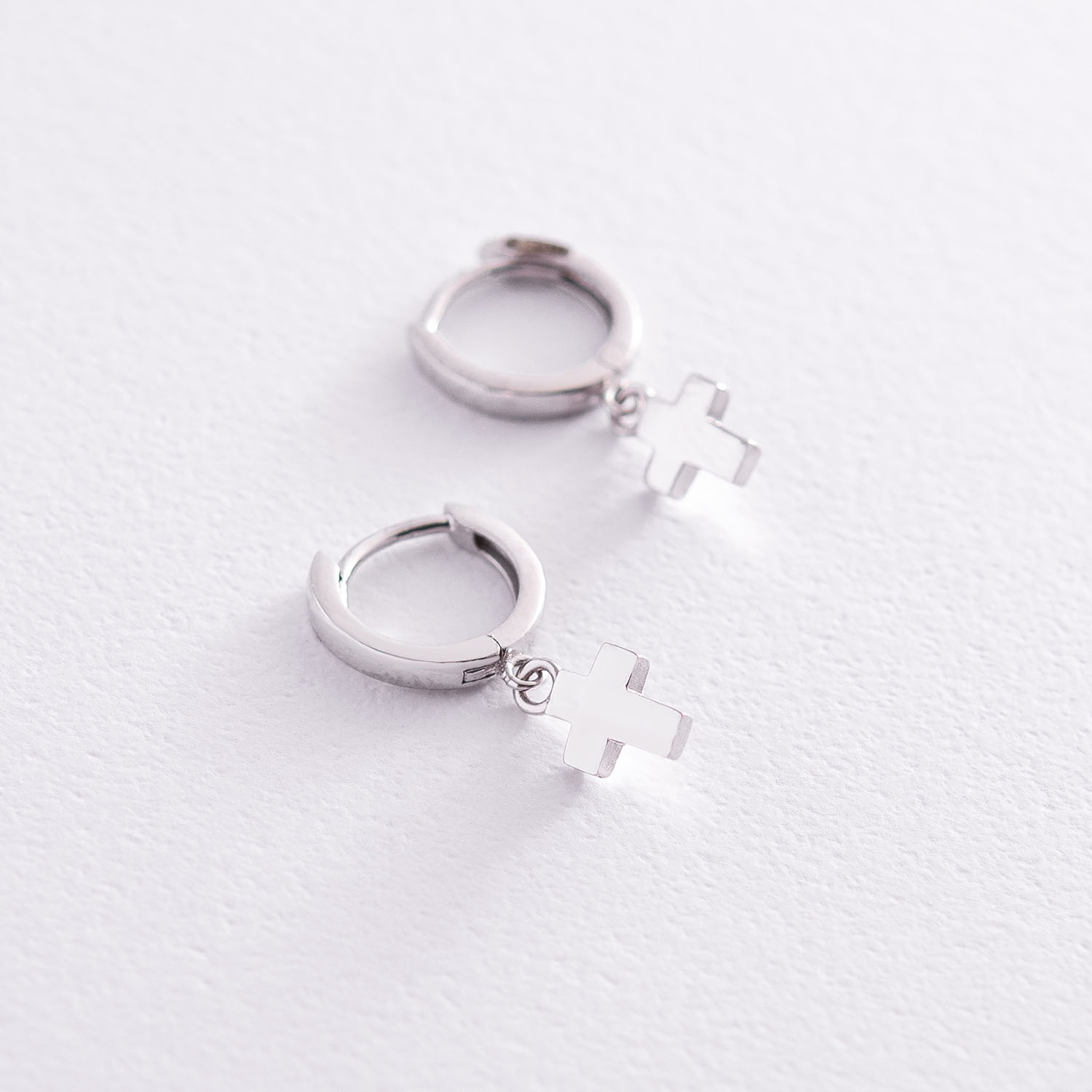 Серьги Крестики в белом золоте с04414