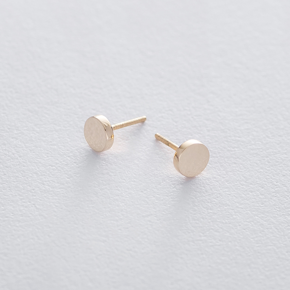 Серьги - пусеты в желтом золоте Круг (плоские) с05559
