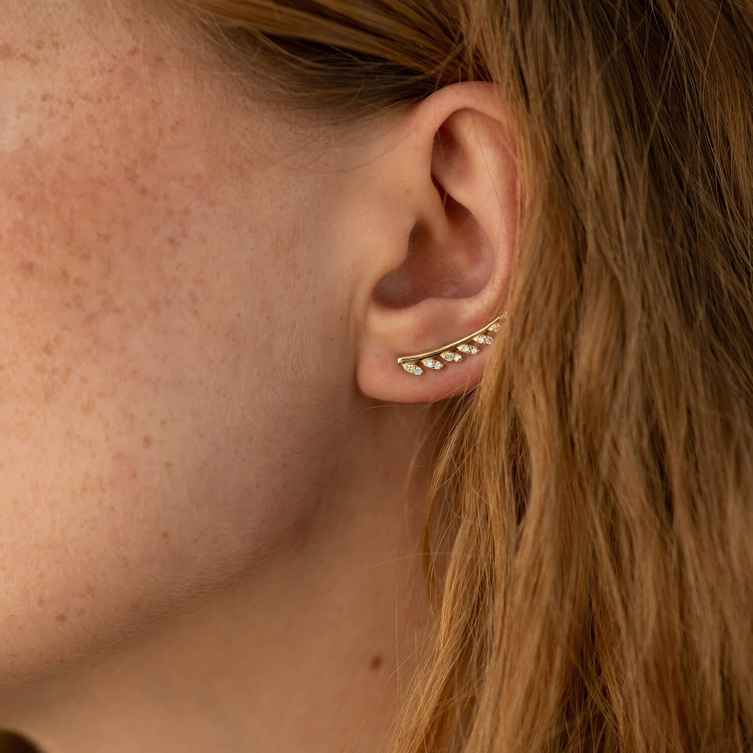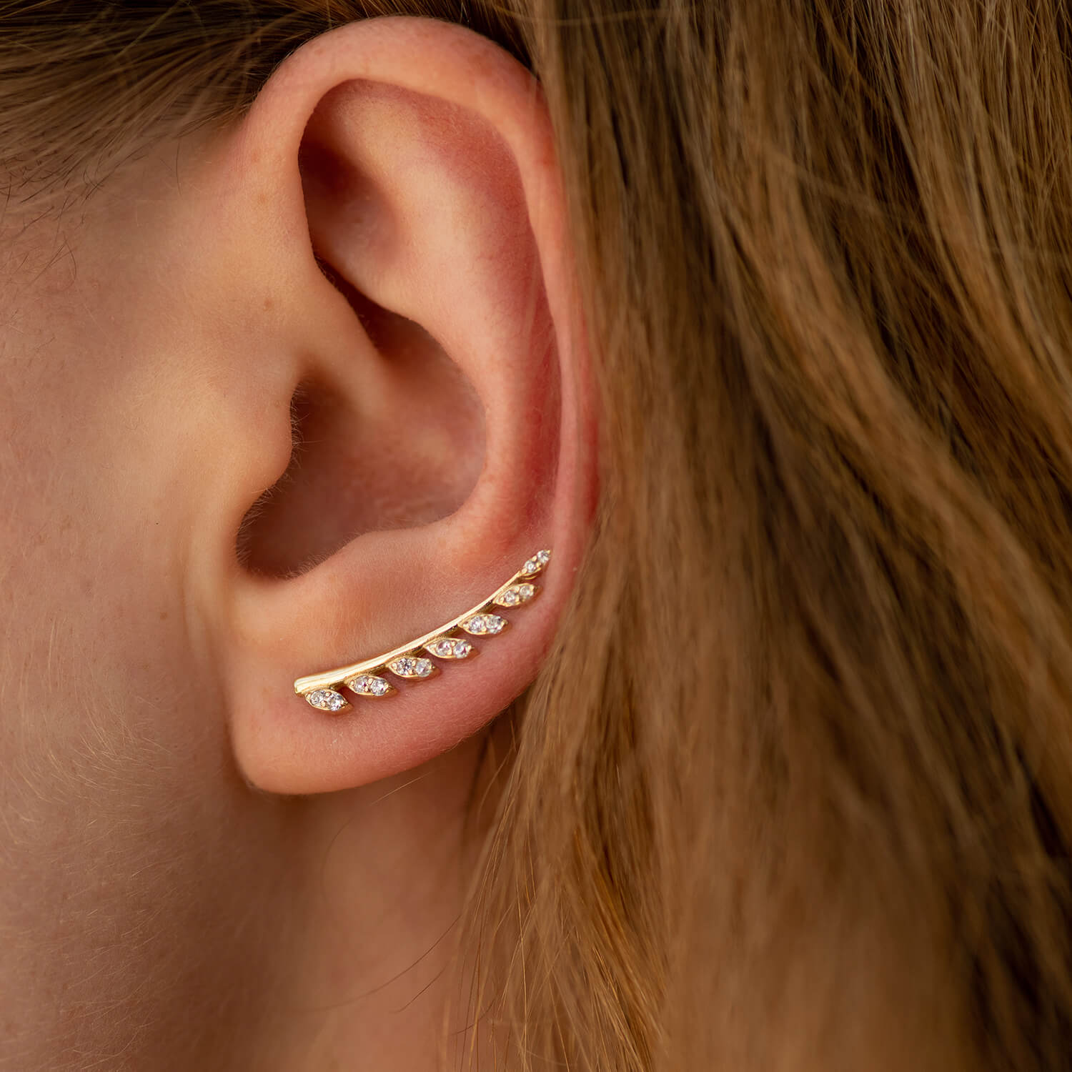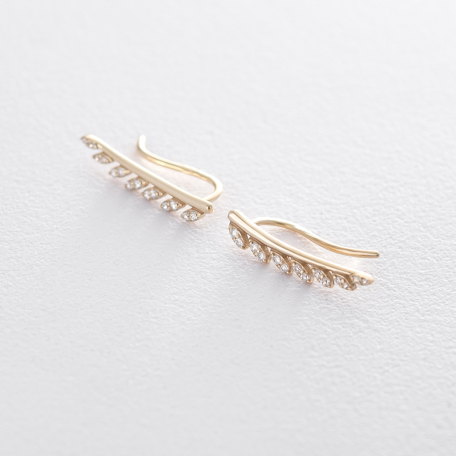 Серьги - клаймберы Листики в желтом золоте с05704