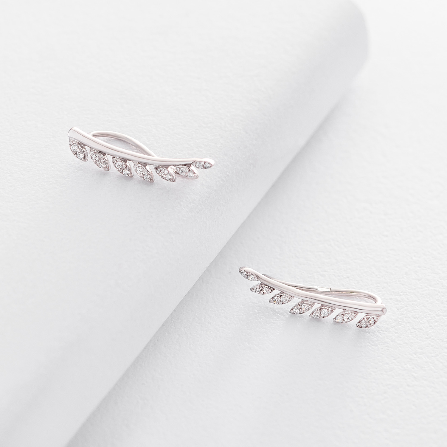 Серьги Листики в белом золоте с06267