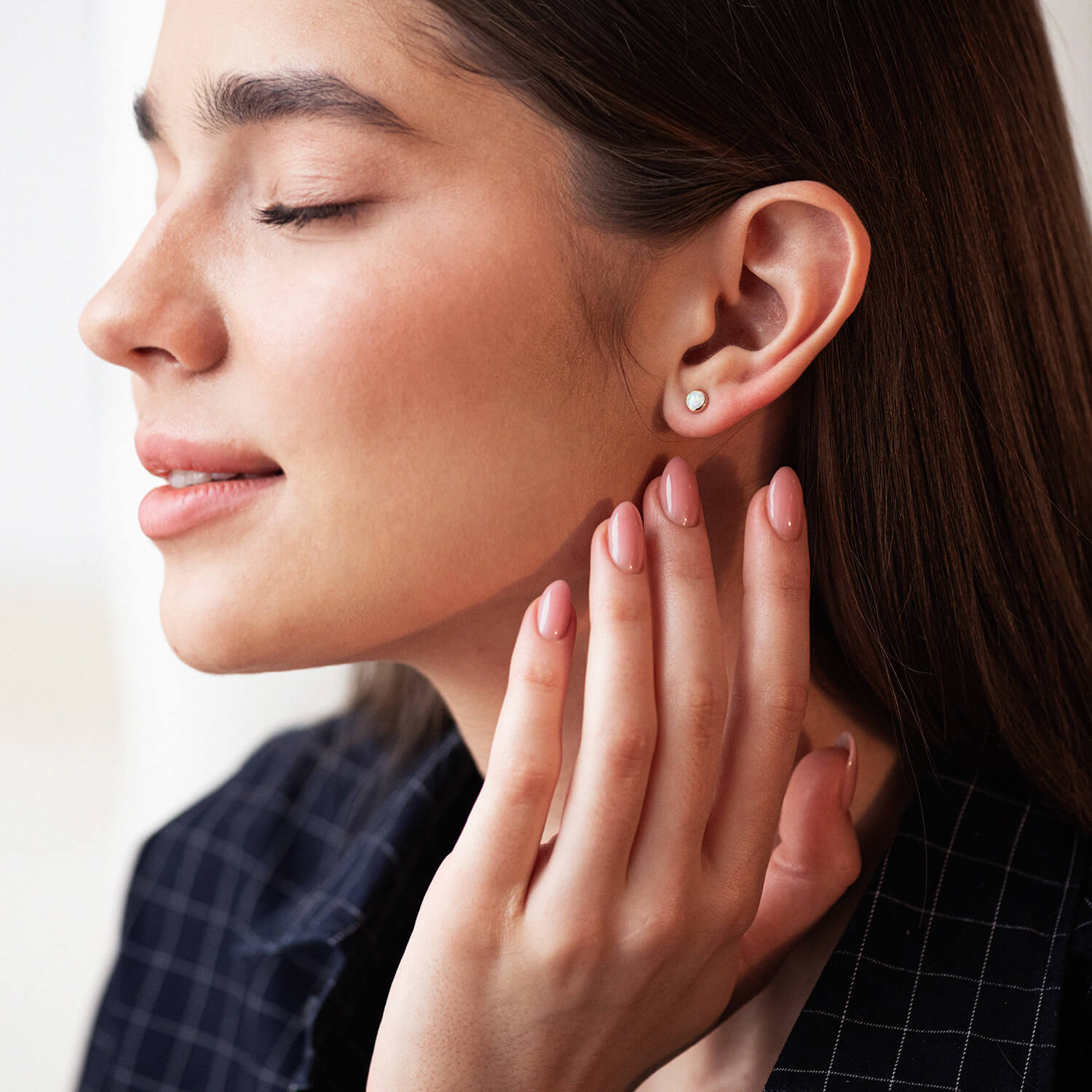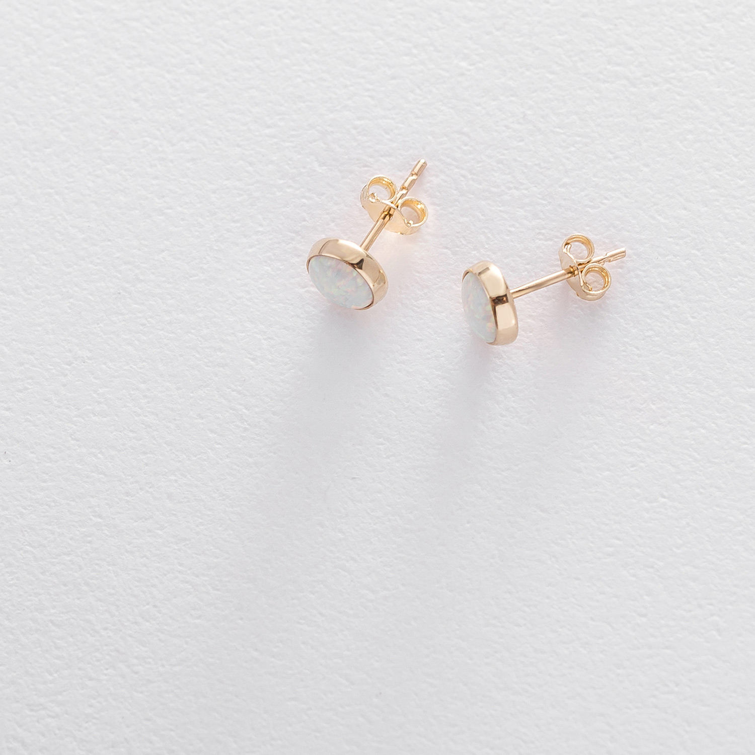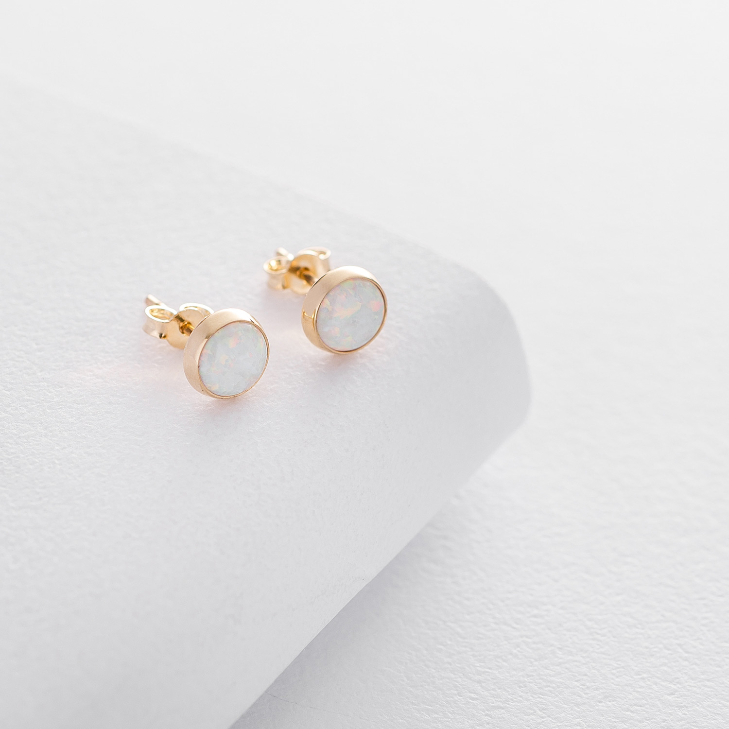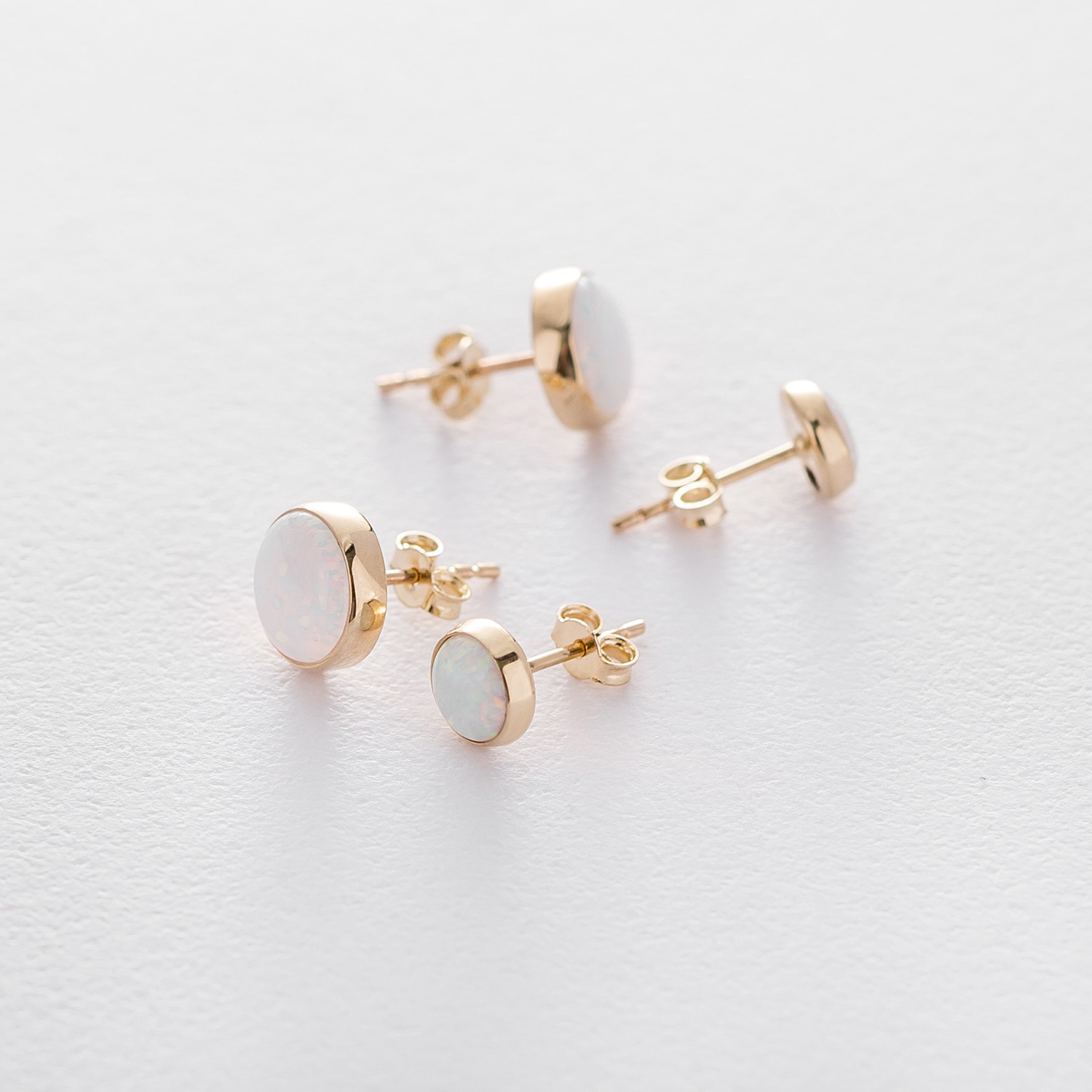 Золотые серьги-пусеты "Сияние" (синт. опал) 5 мм с06329