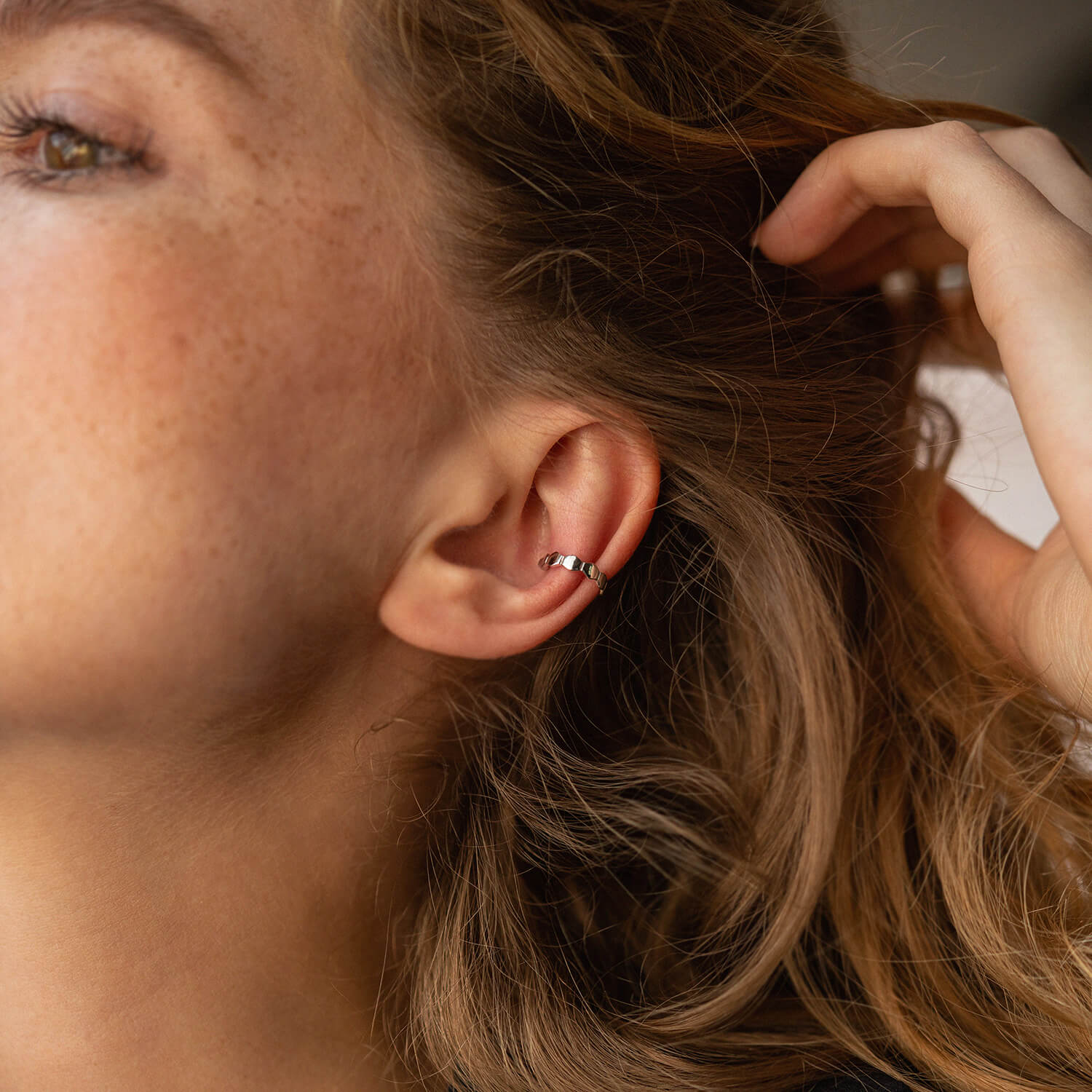 Серьга - каффа "Грани" в белом золоте с08163