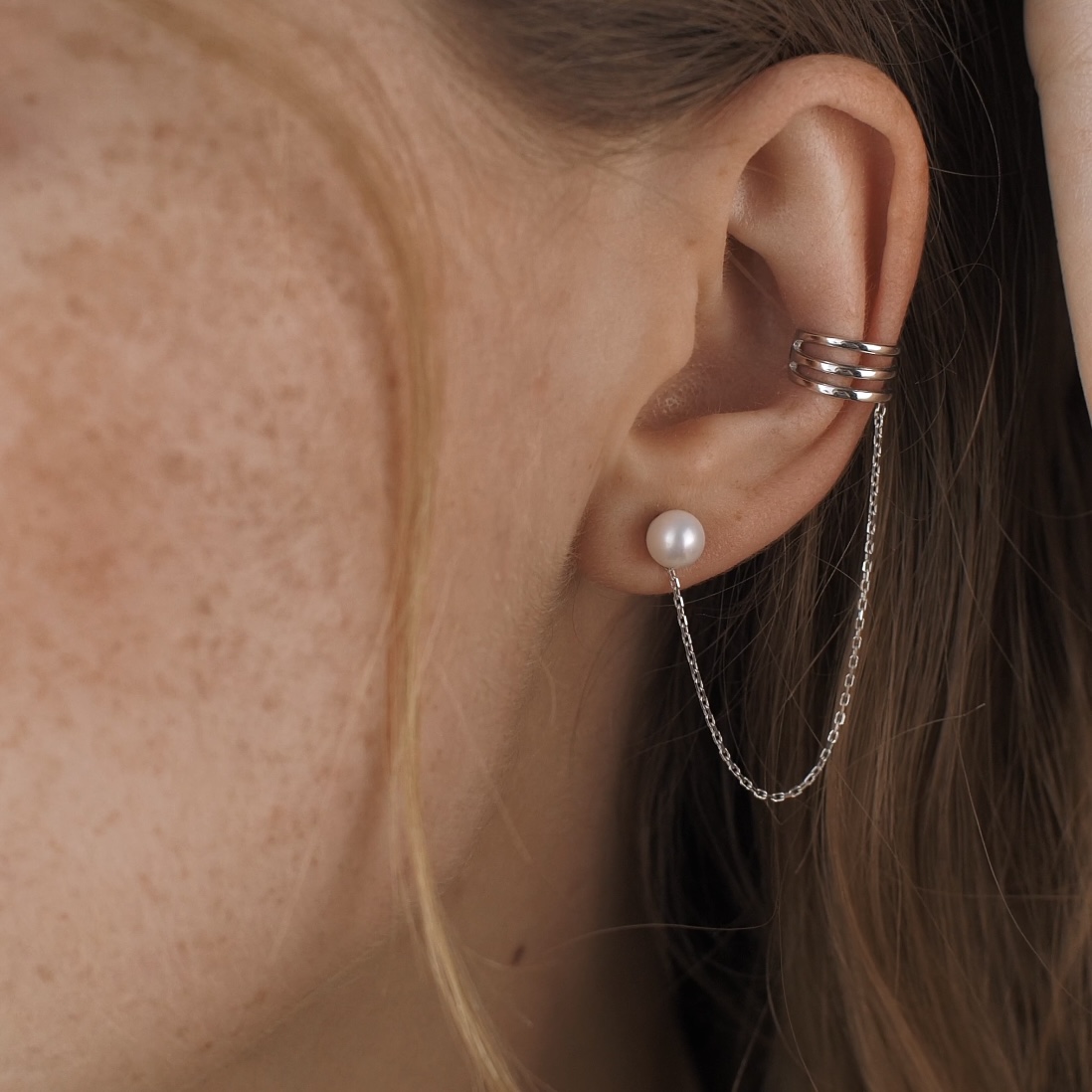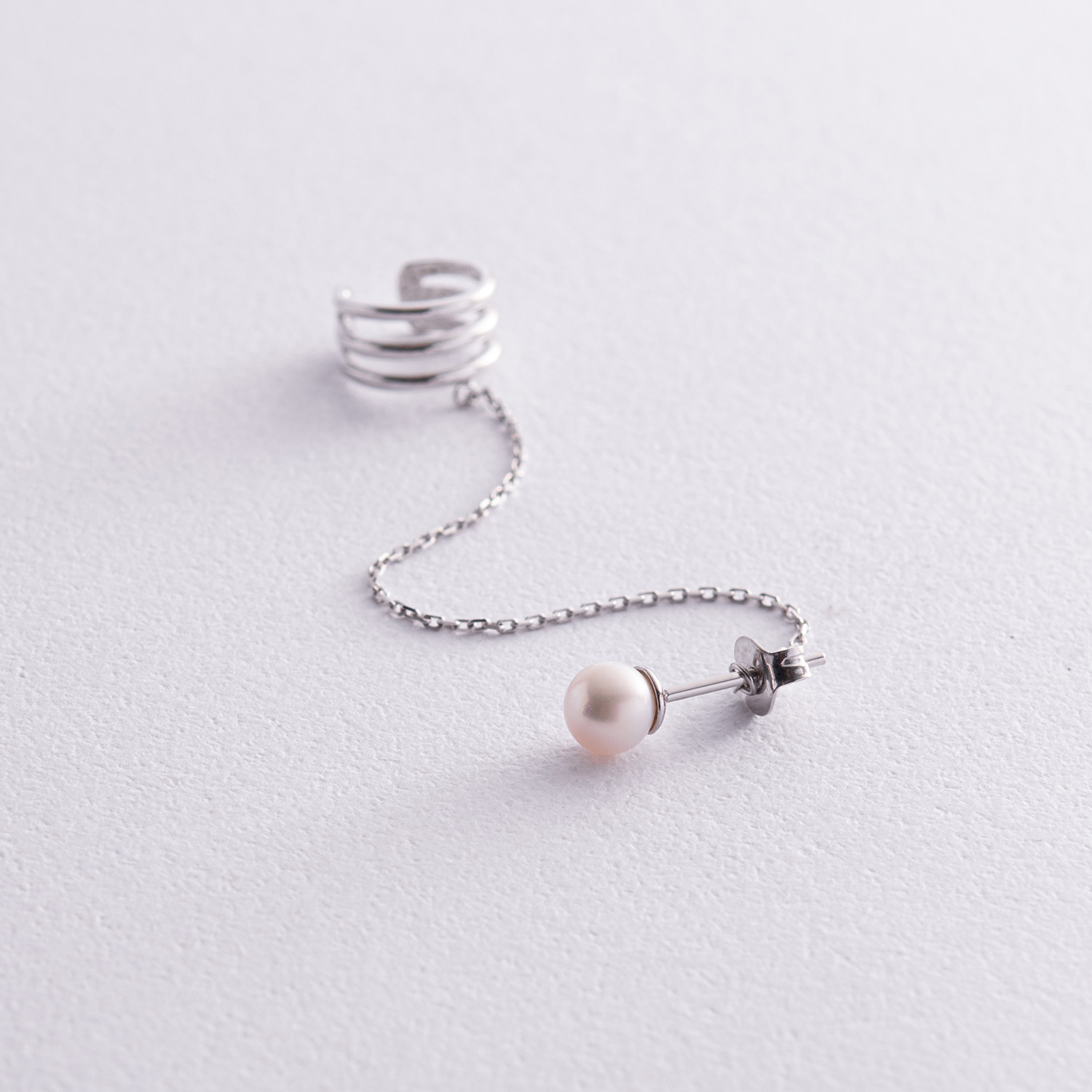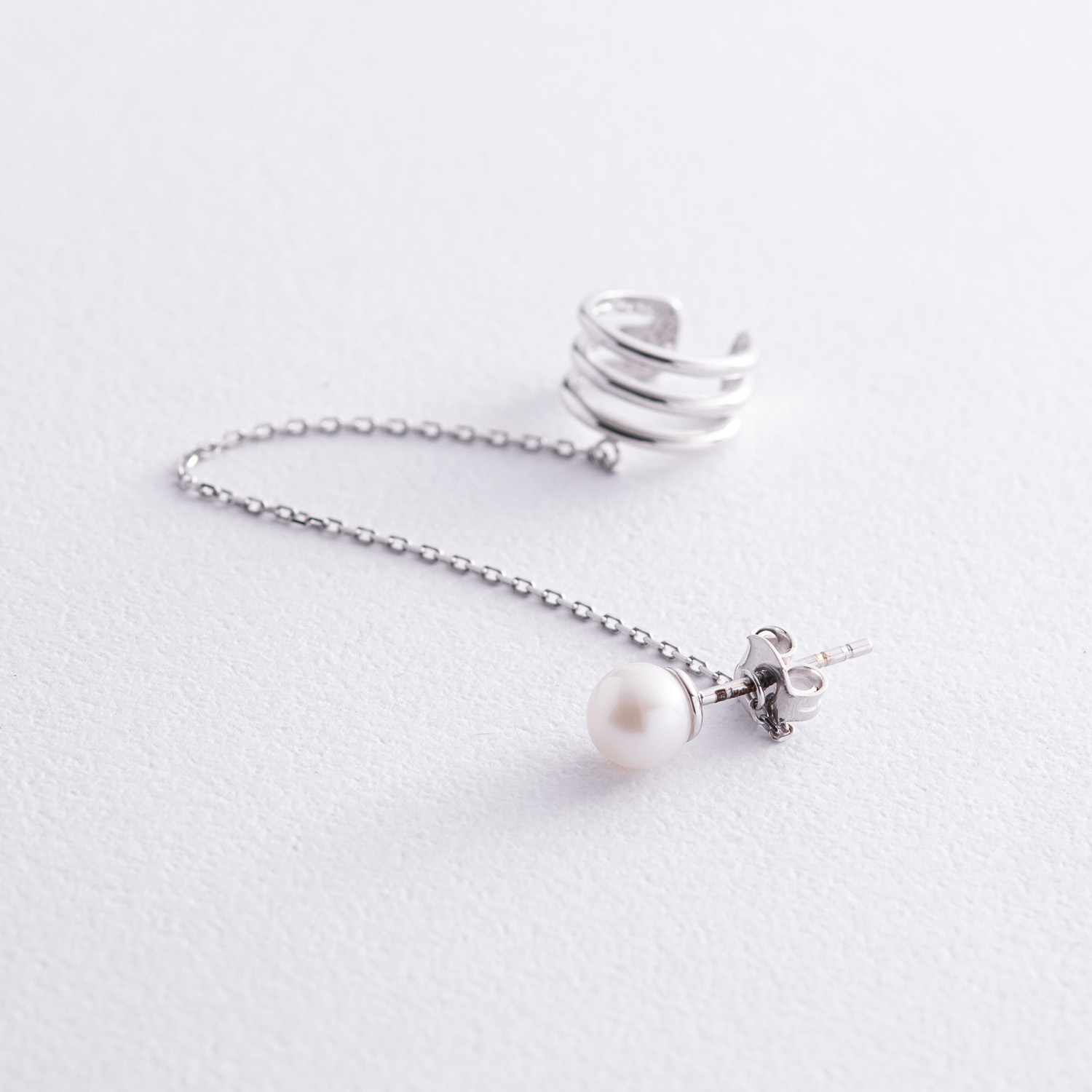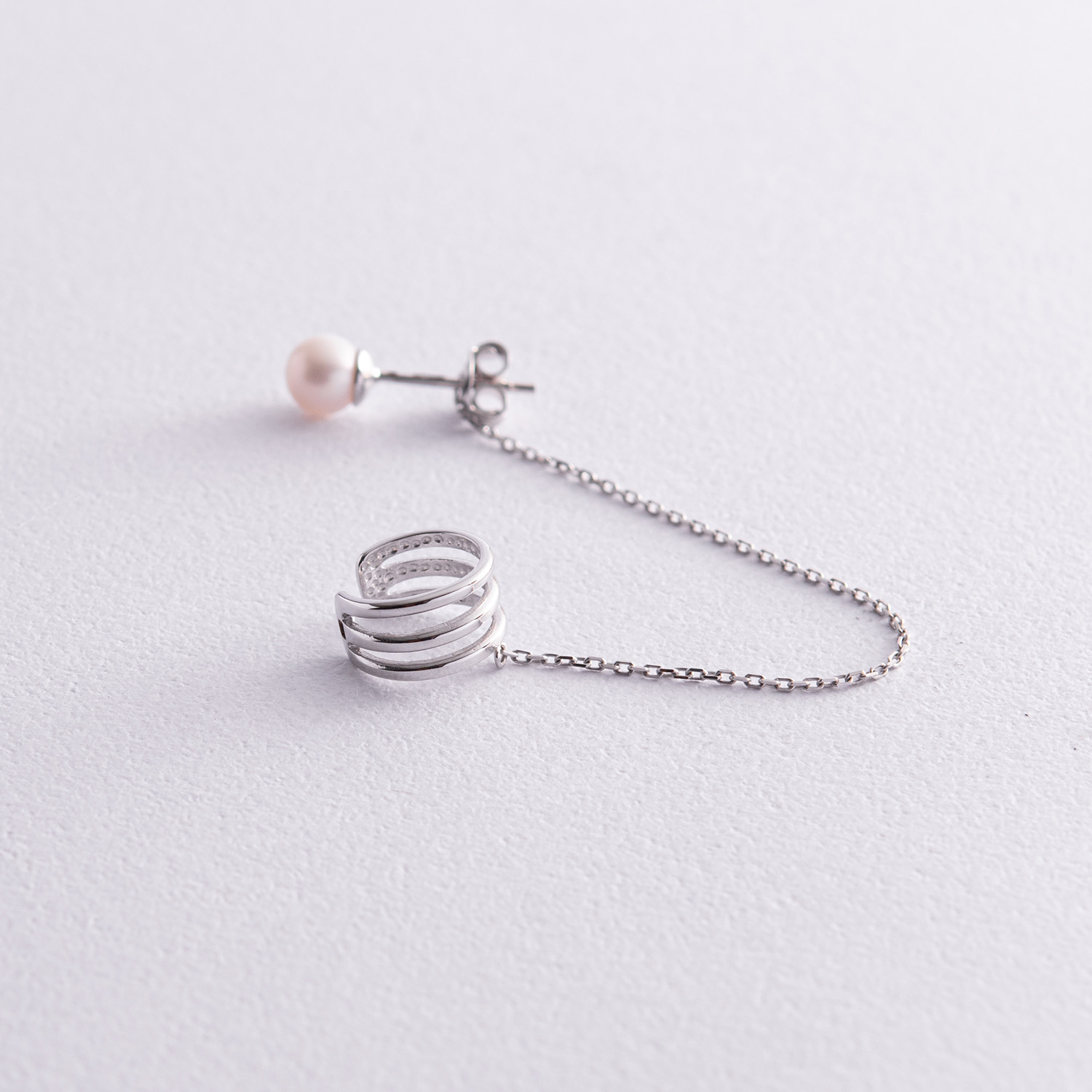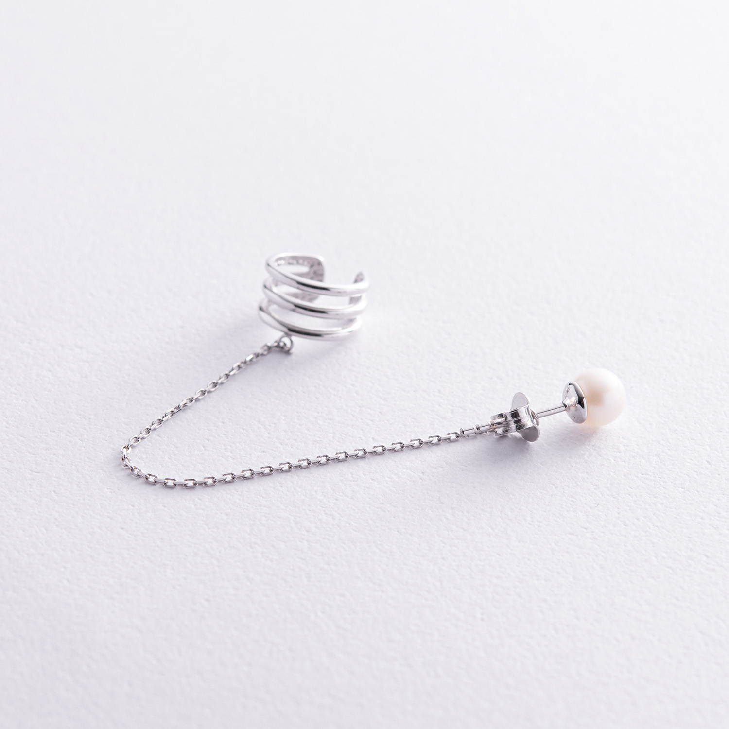 Серьга - каффа "Тринити" с жемчужиной (белое золото) с08251