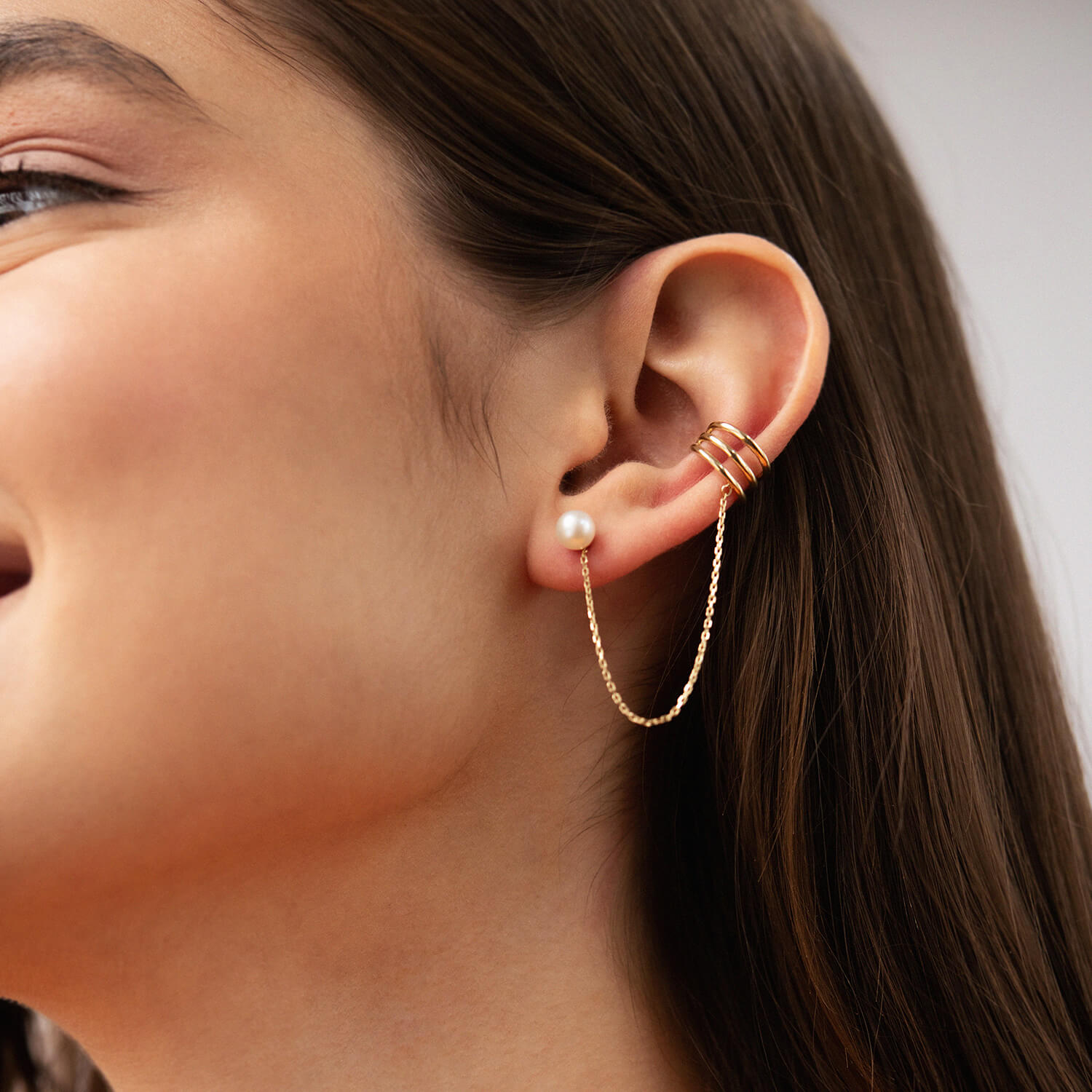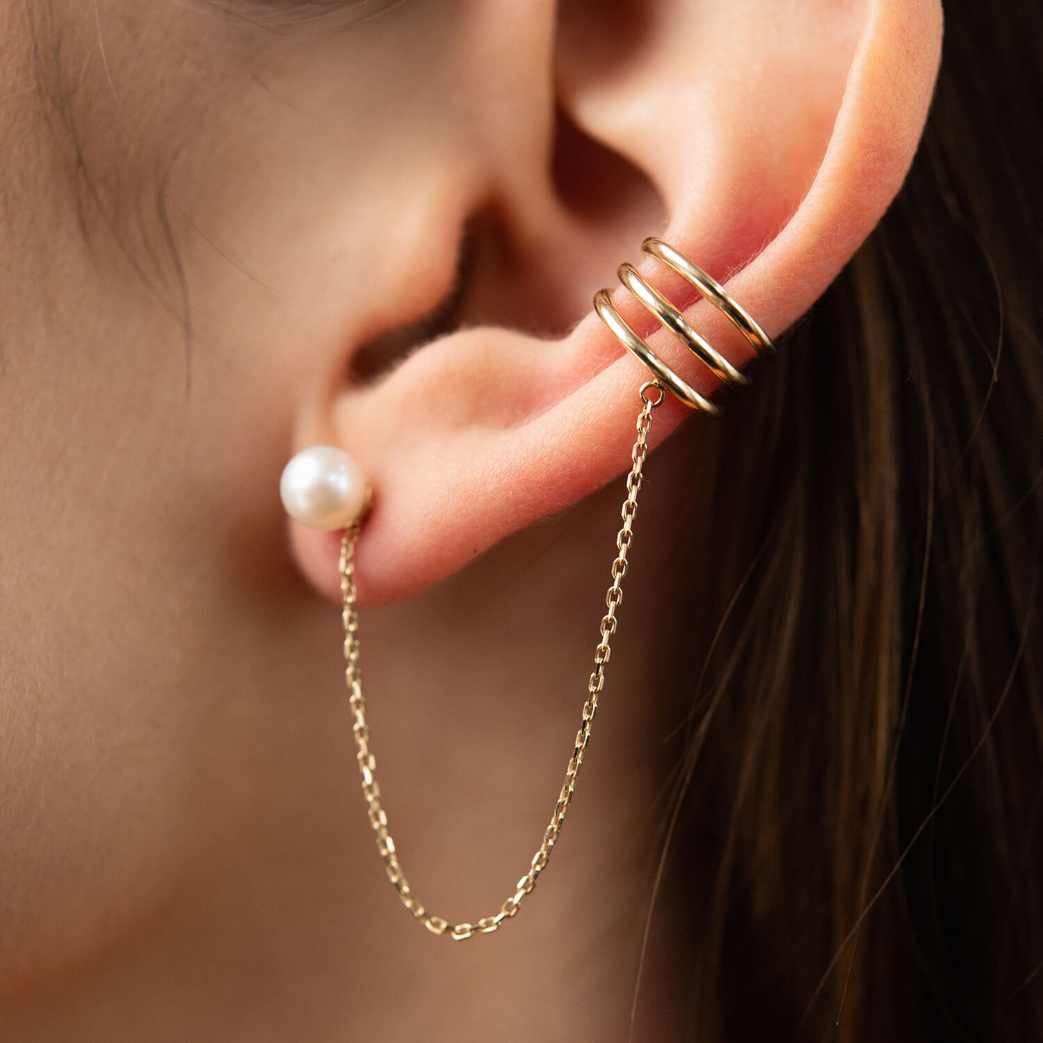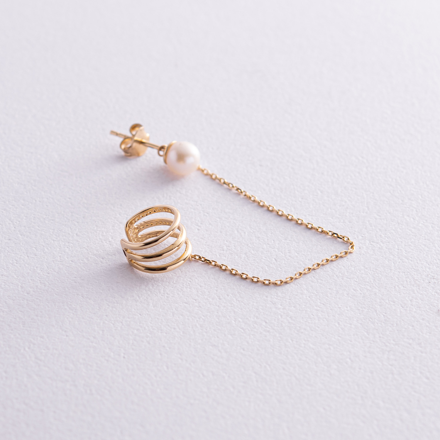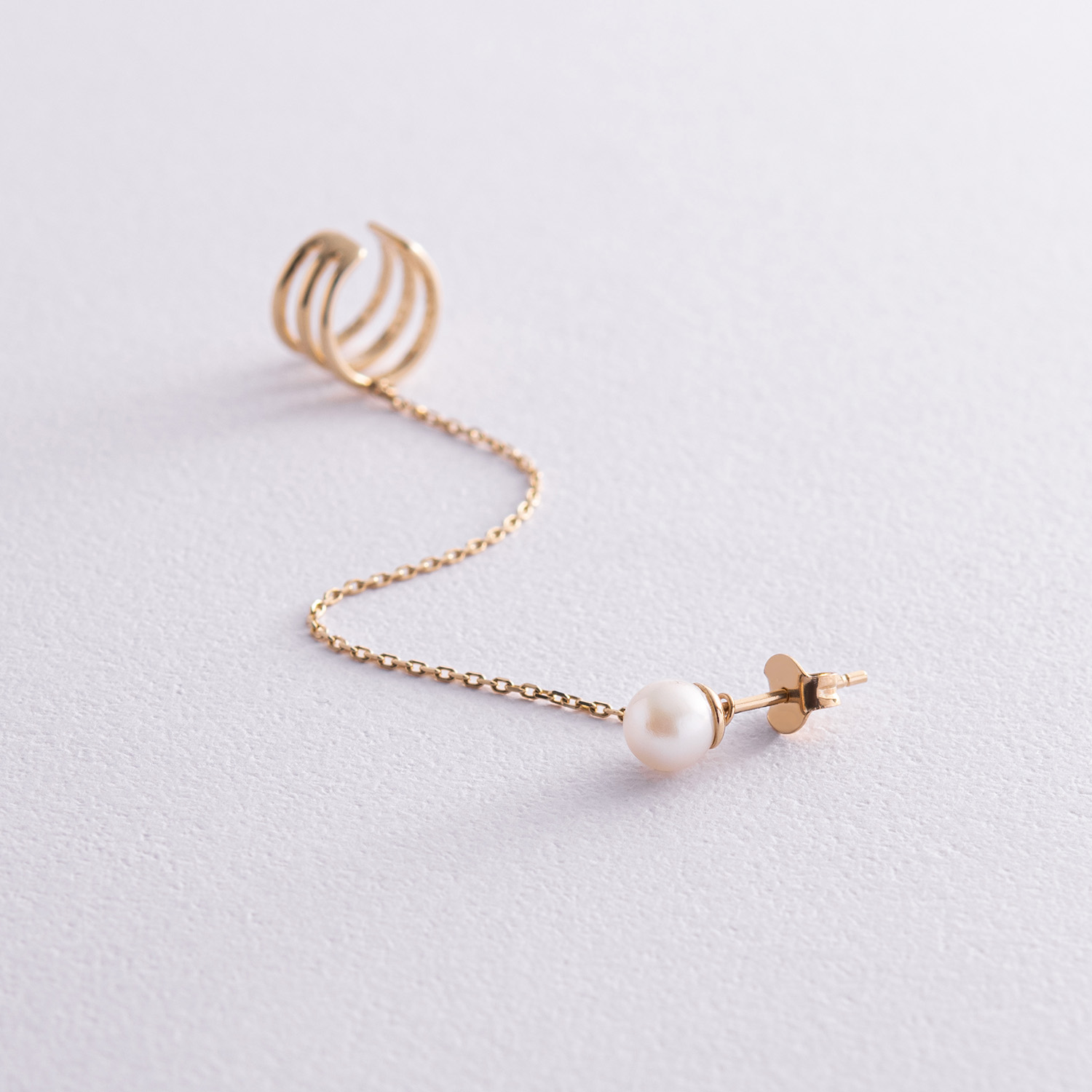 Серьга - каффа "Тринити" с жемчужиной (желтое золото) с08260