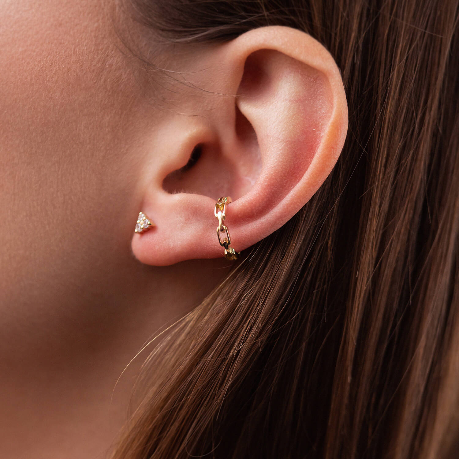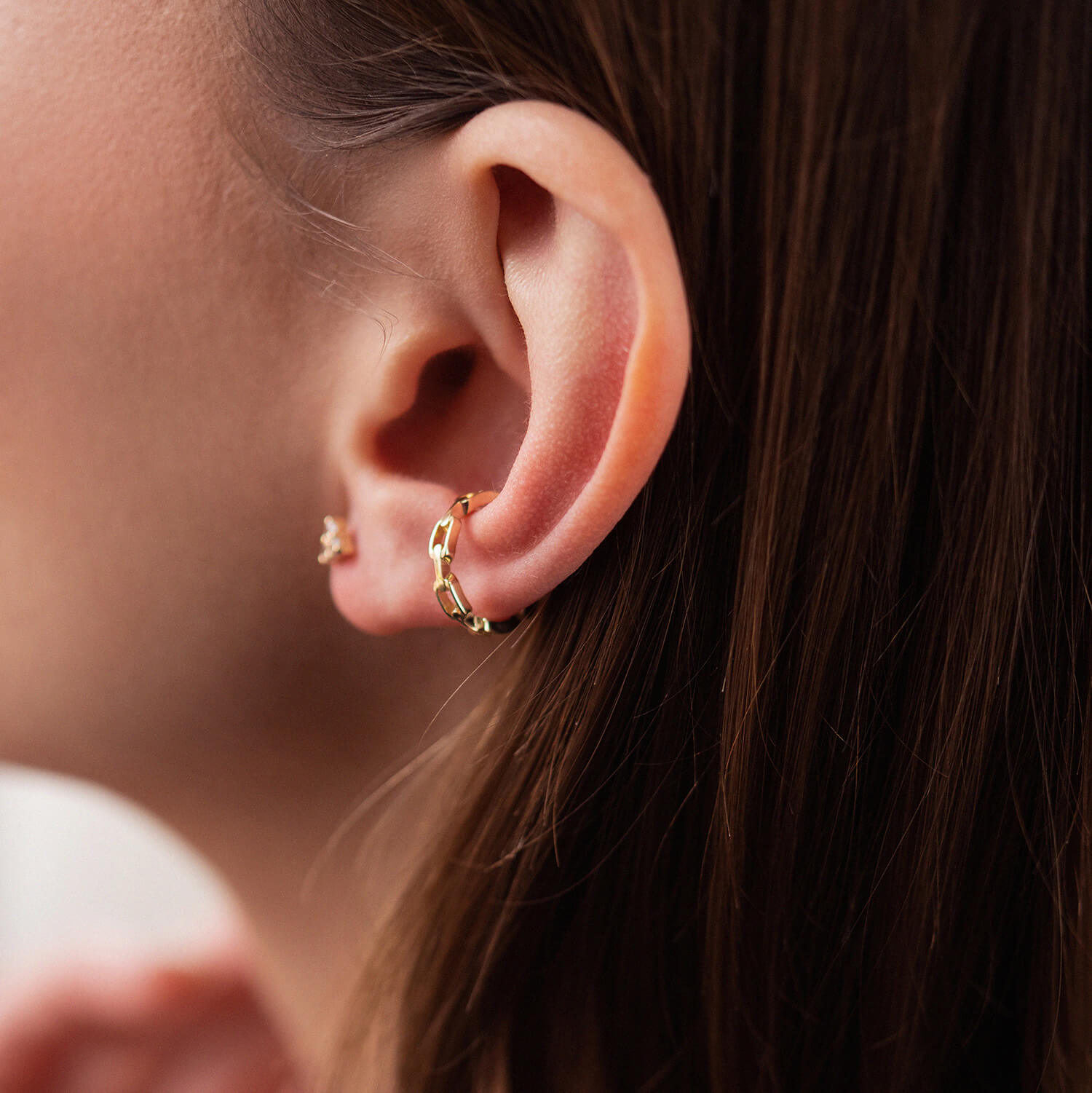 Серьга - каффа "Цепочка" в желтом золоте с08208