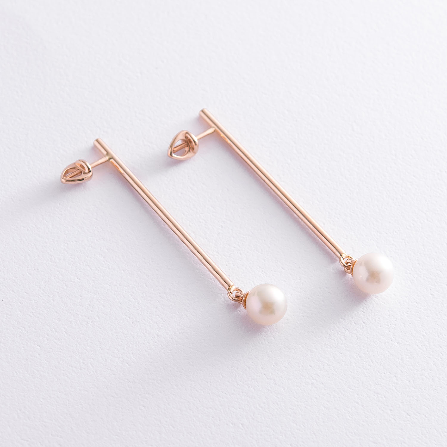 Серьги "Грация" в красном золоте с жемчугом с06933