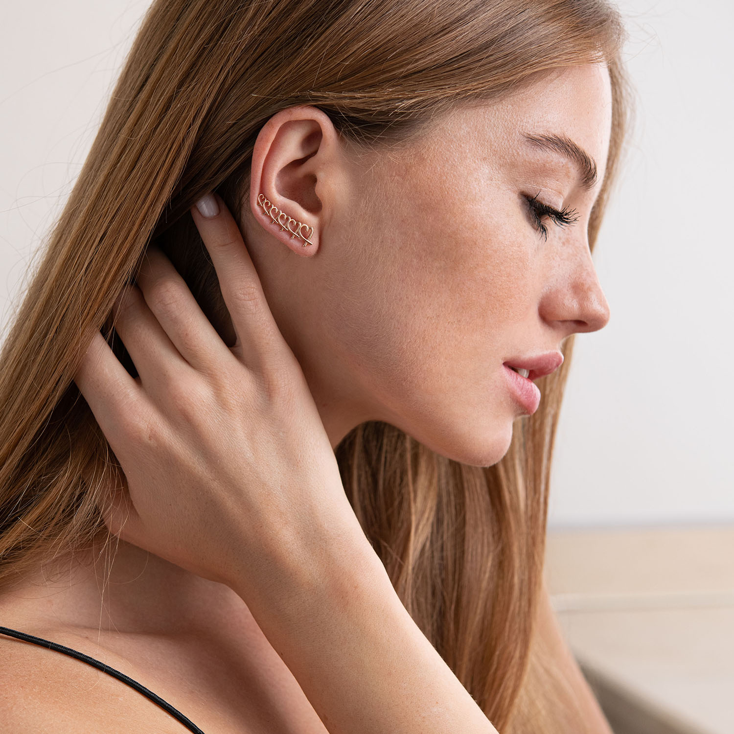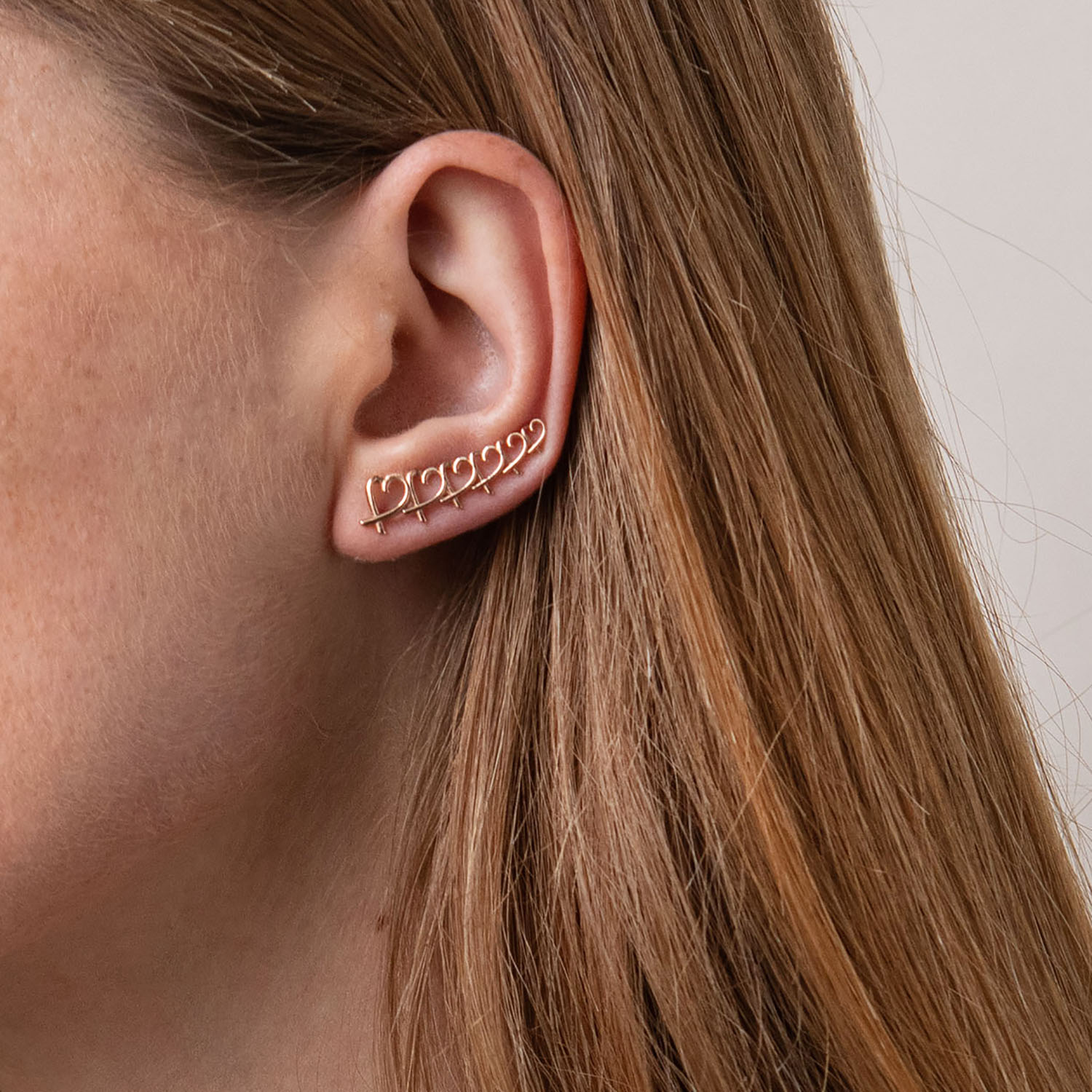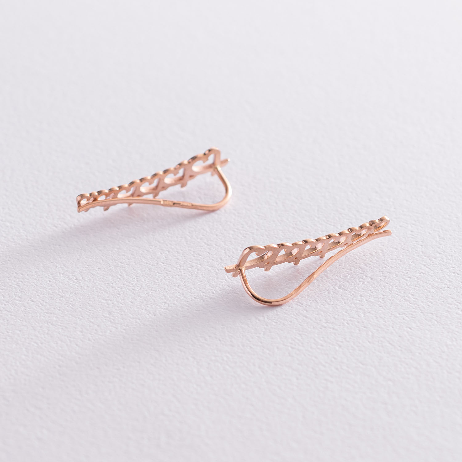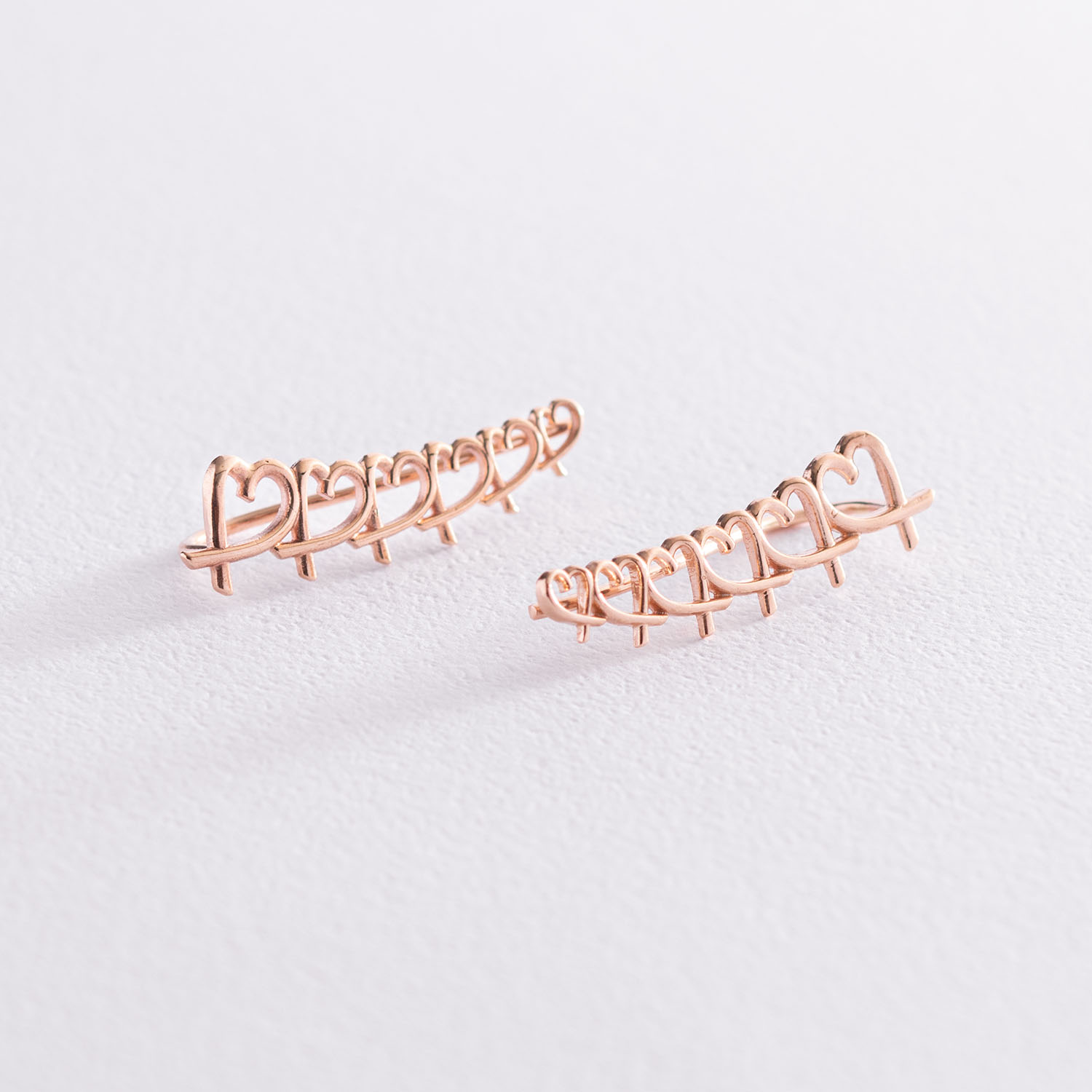 Серьги - клаймберы "Сердечки" в красном золоте с07105