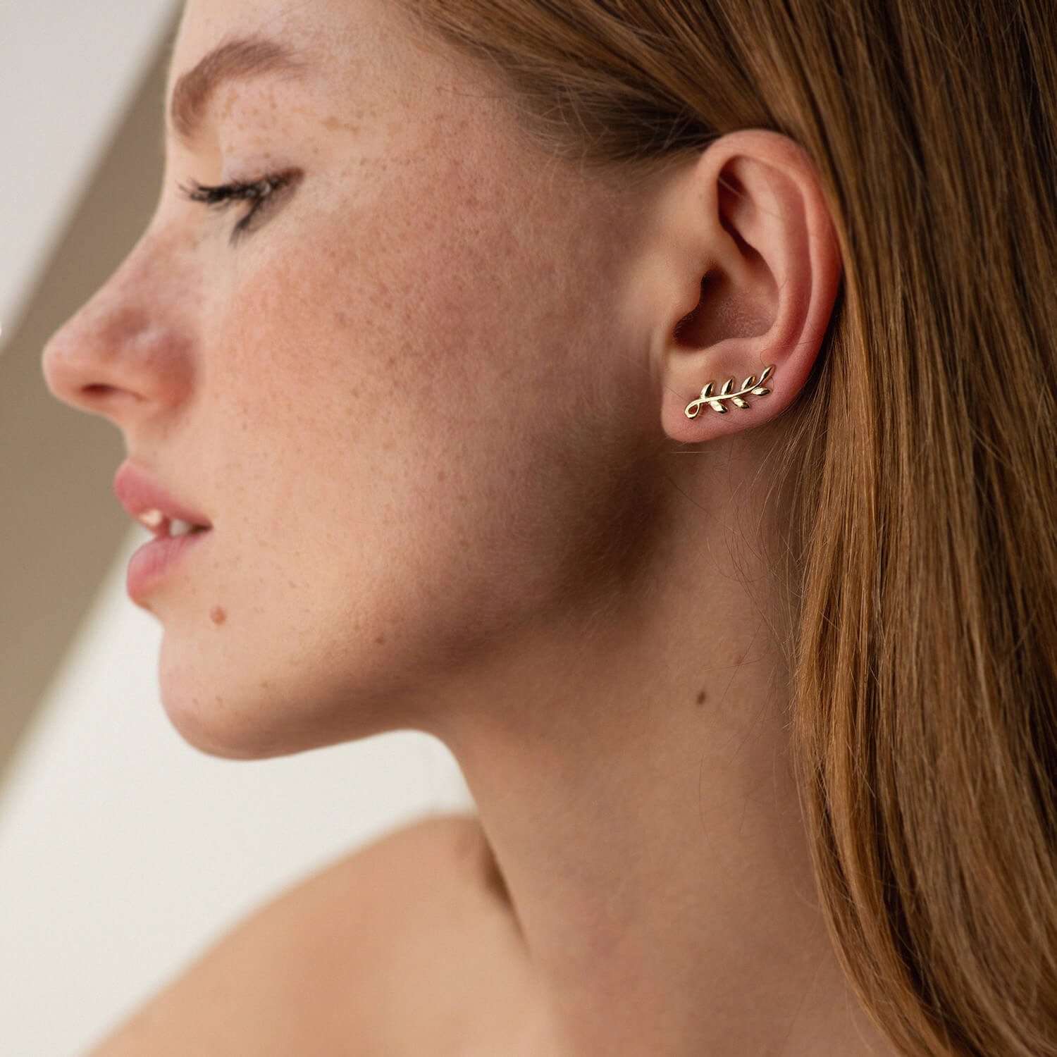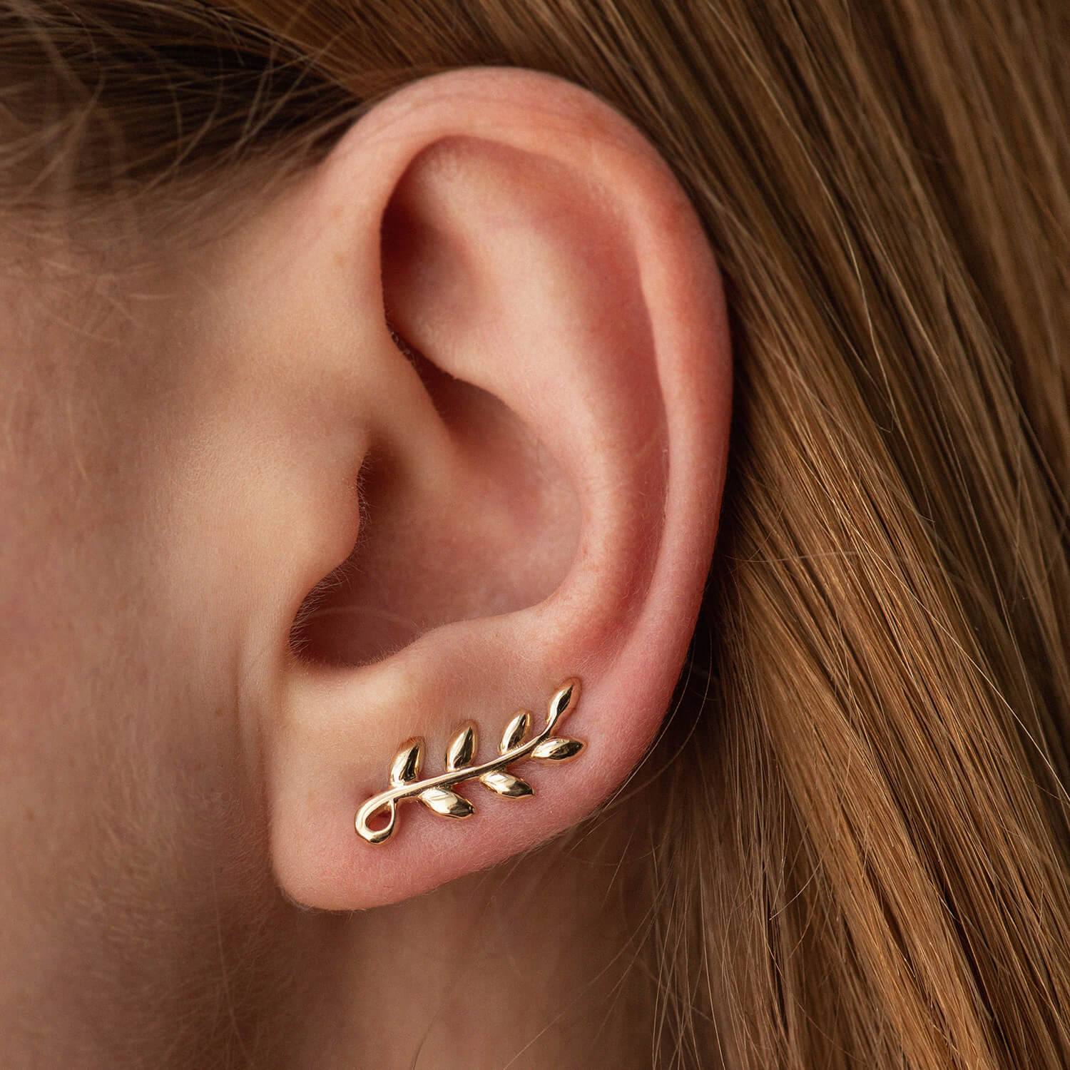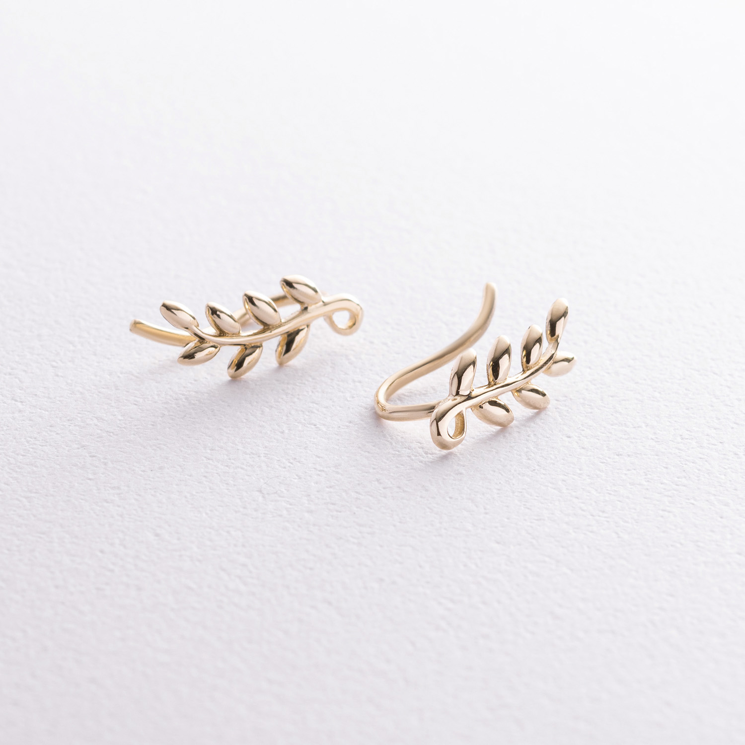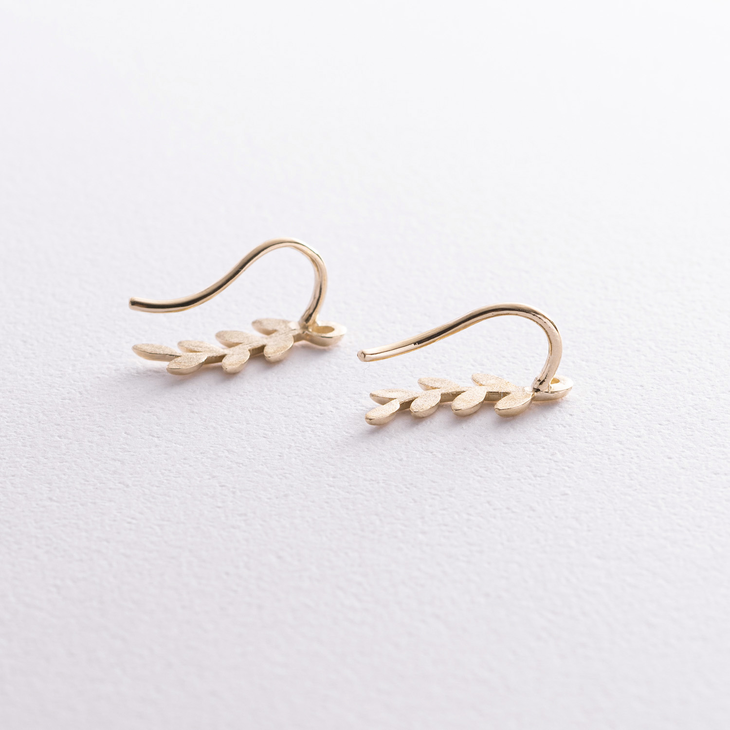 Серьги - клаймберы "Веточки" в желтом золоте с08556