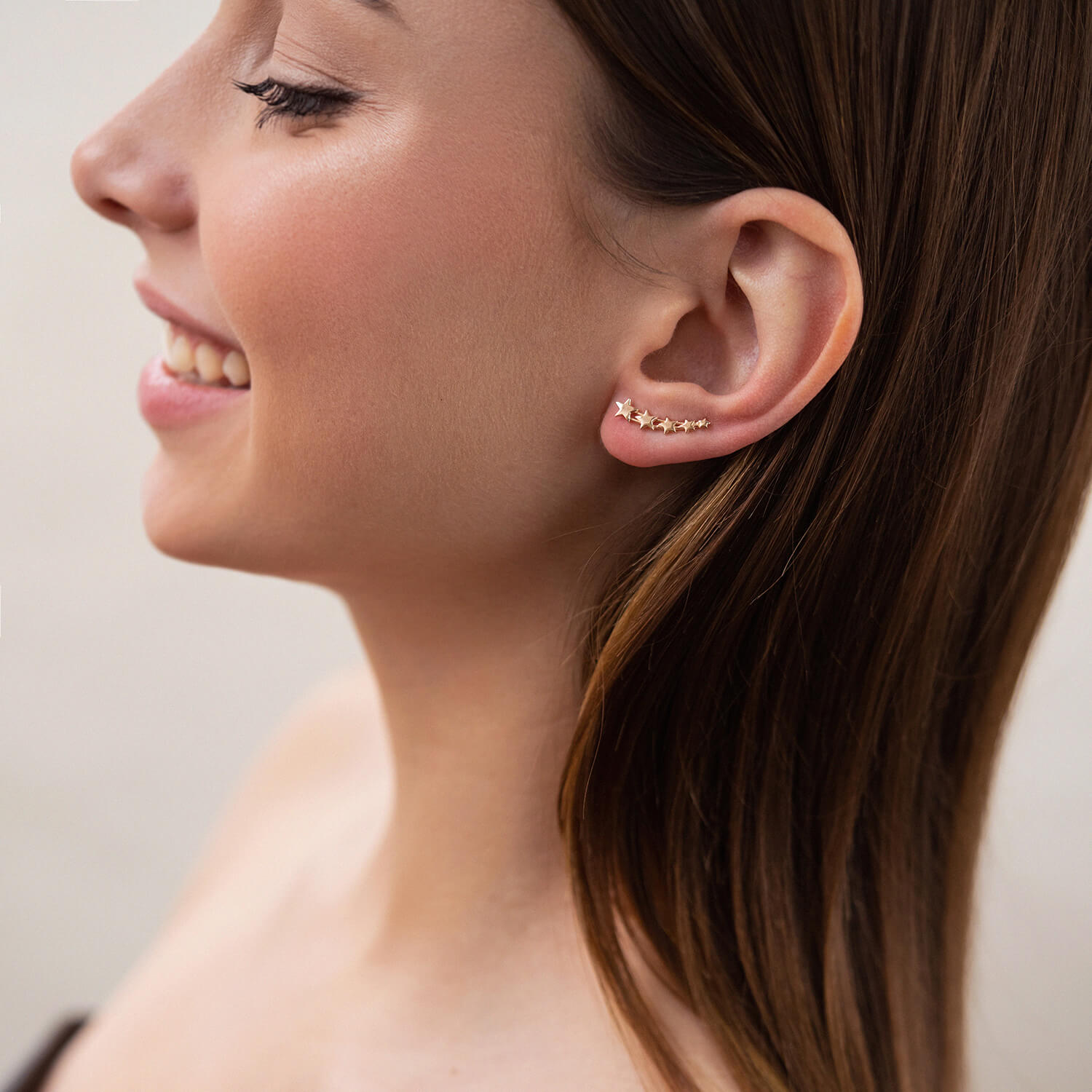 Серьги - клаймберы "Звездочки" в красном золоте с08200