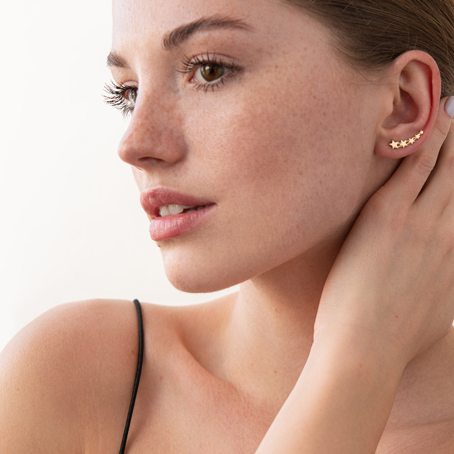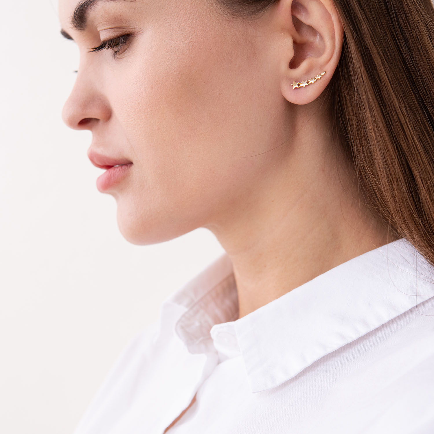 Серьги - клаймберы "Звездочки" в желтом золоте с07392