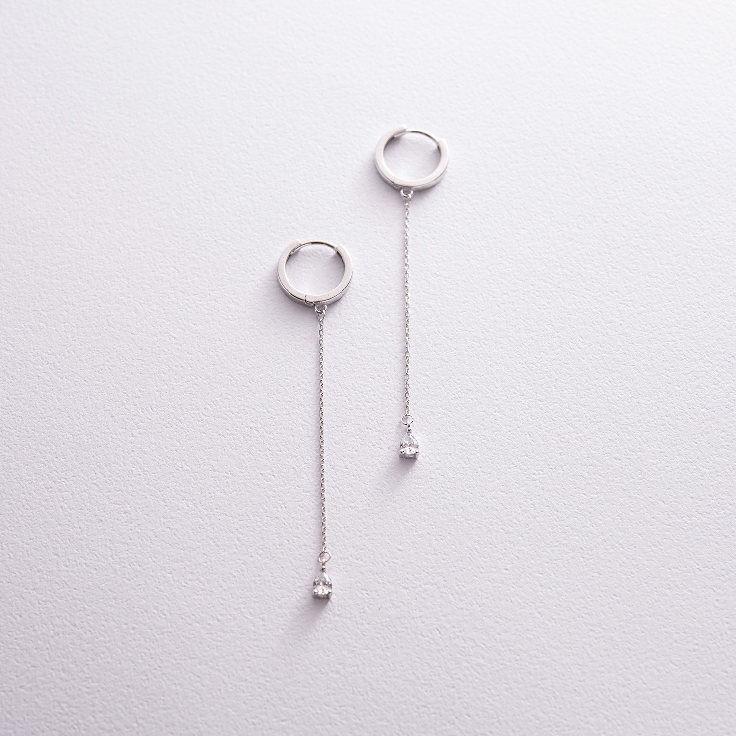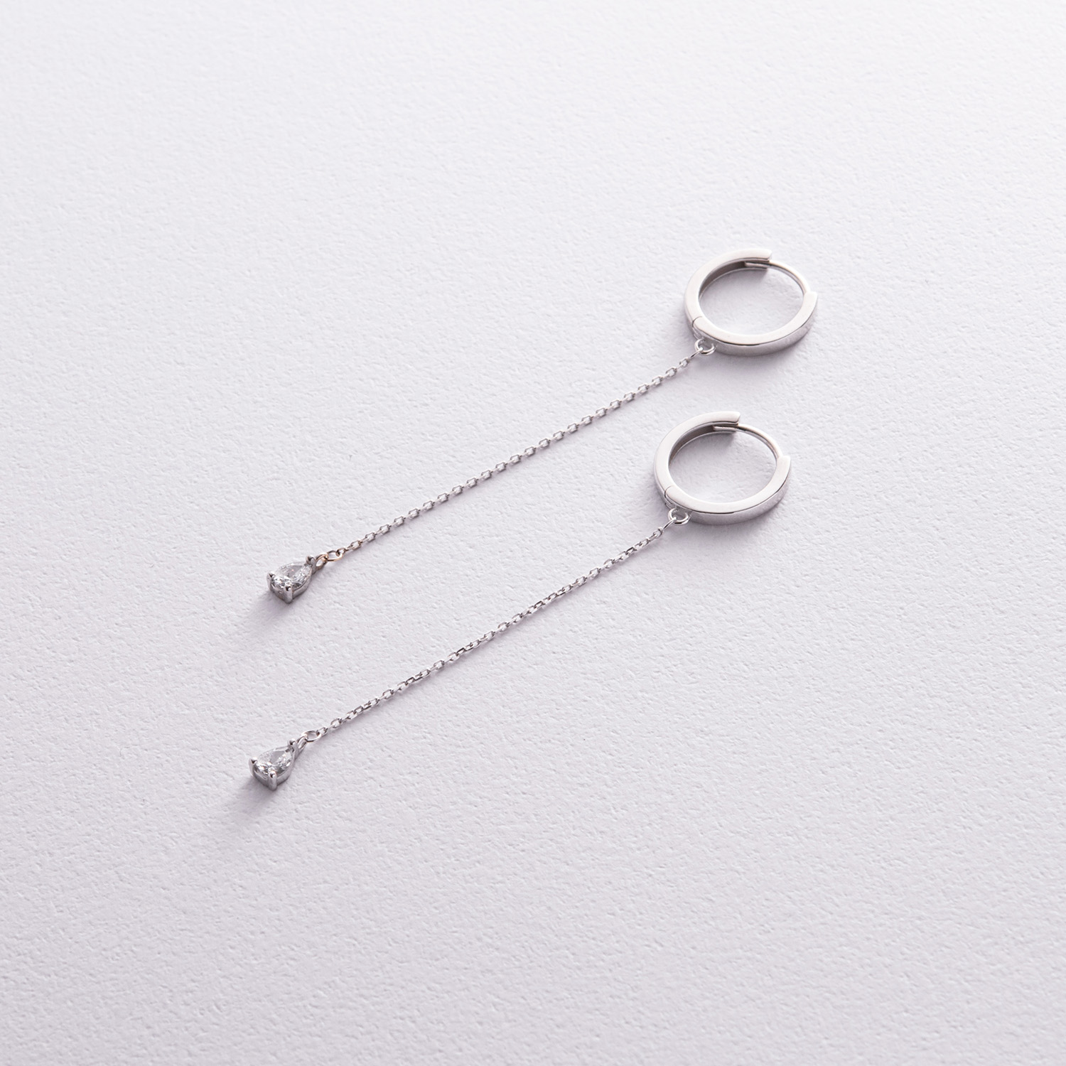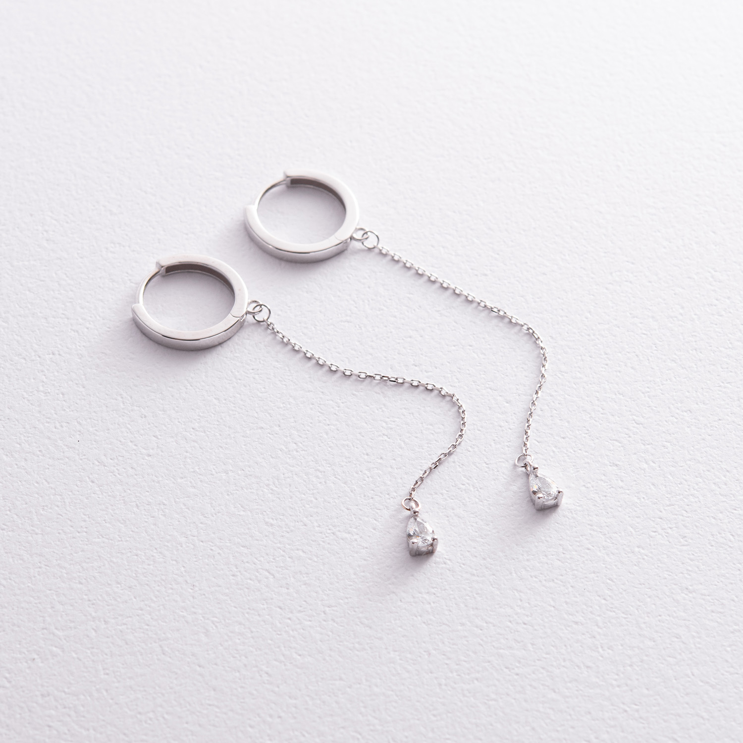 Серьги - кольца "Капельки" с фианитами (белое золото) с08350