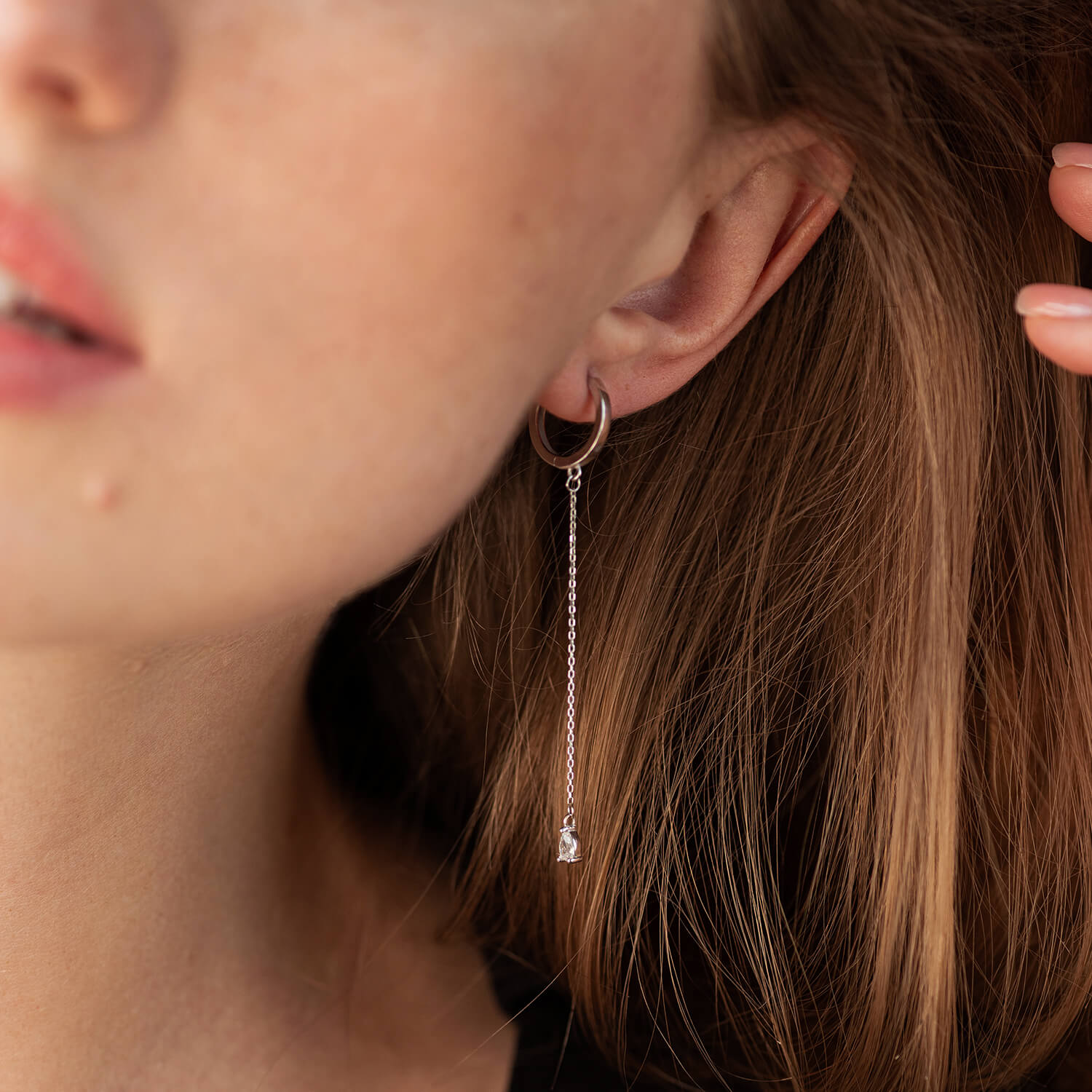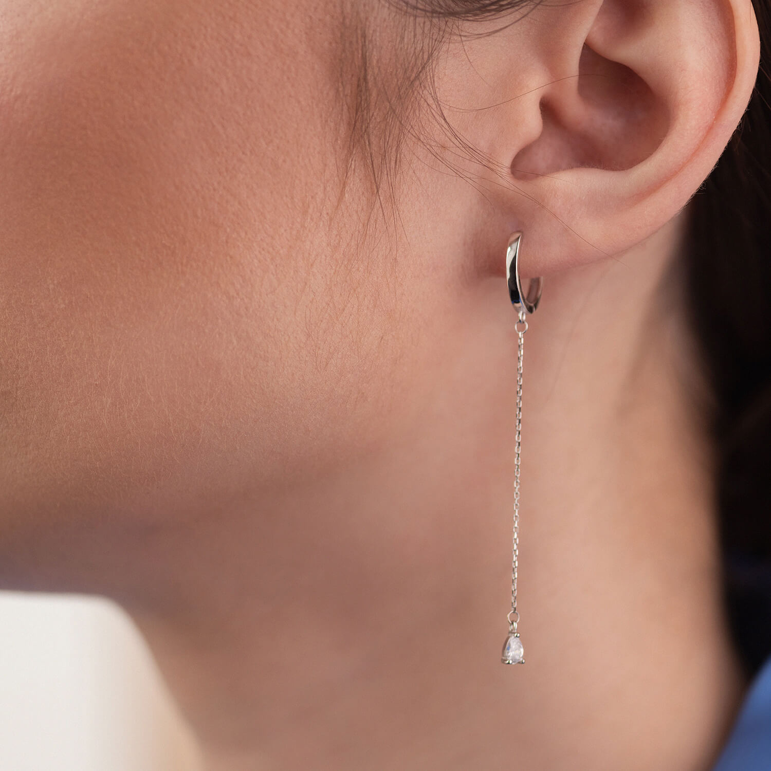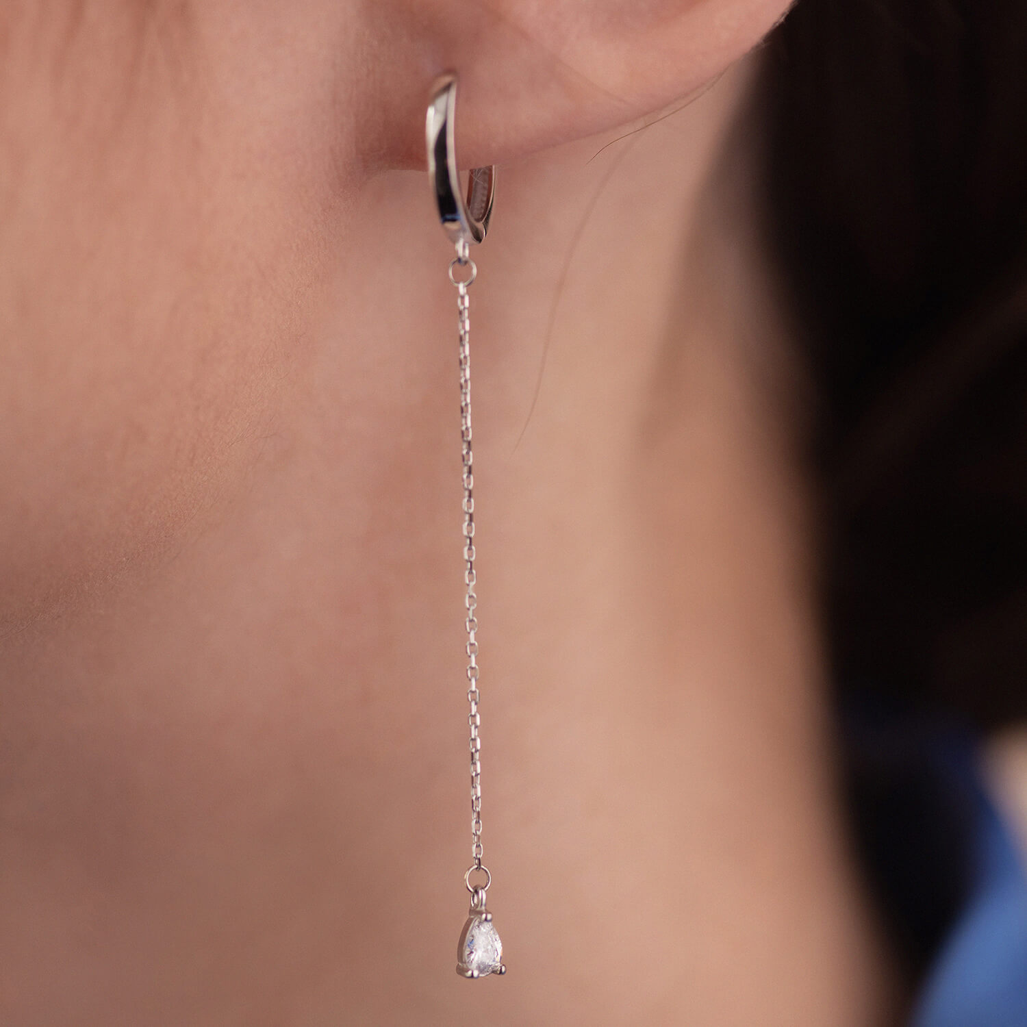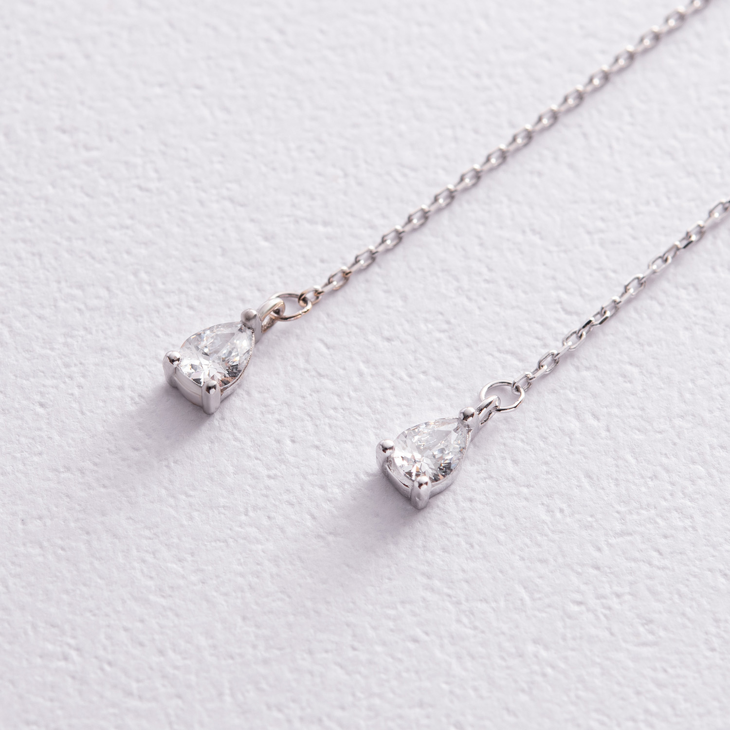 Серьги - кольца "Капельки" с фианитами (белое золото) с08350