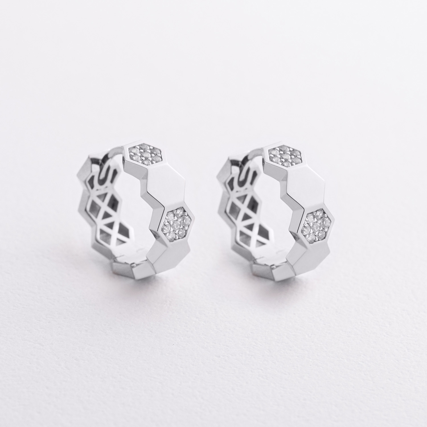 Серьги - кольца "Miranda" в белом золоте (фианиты) с09335